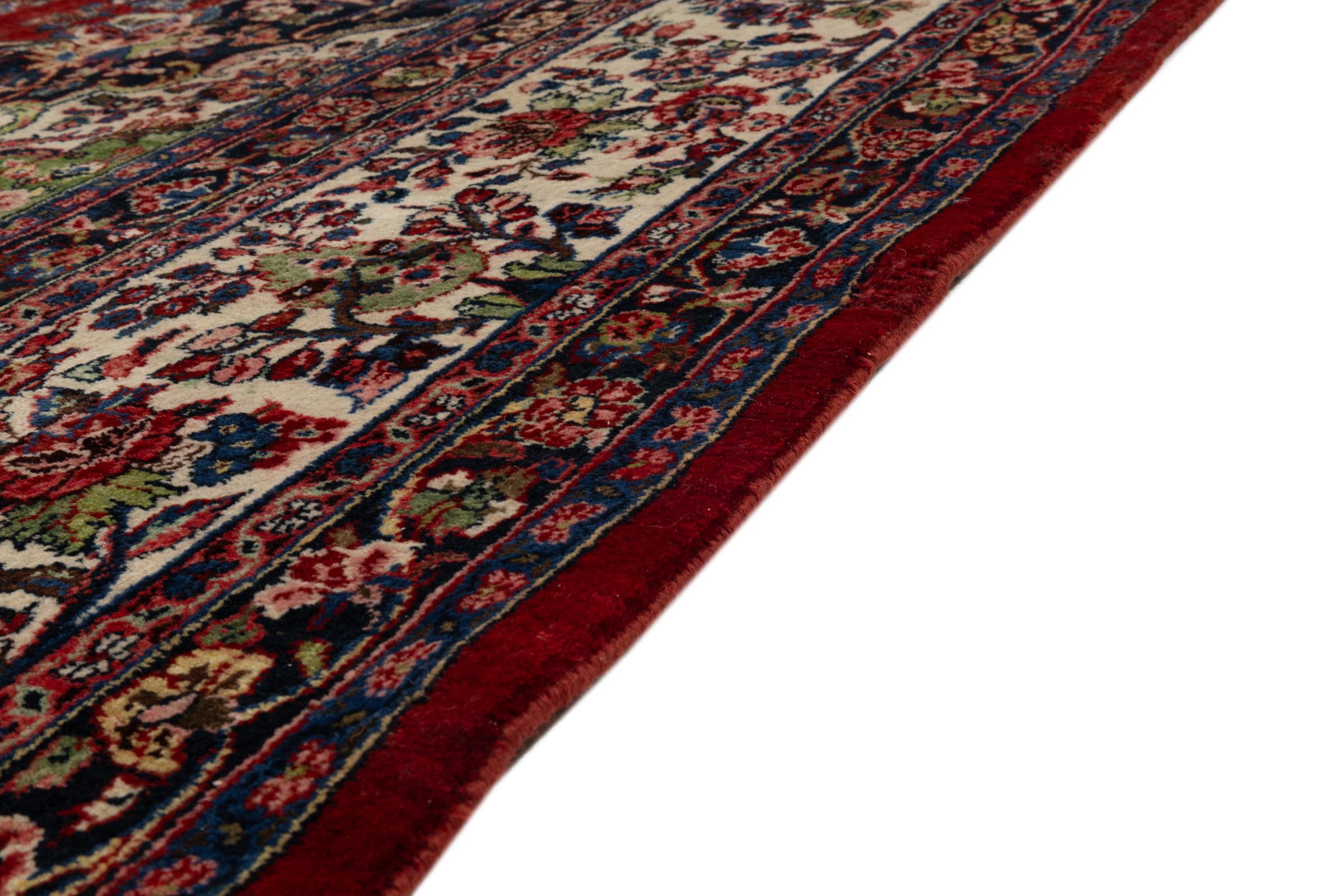 This Persian rug from Hamadan possesses typical geometric patterns with beautiful shades of red, brown and blue. It has been knotted by hand in the small town Hamadan in Persia. This rug is extremely robust and durable.