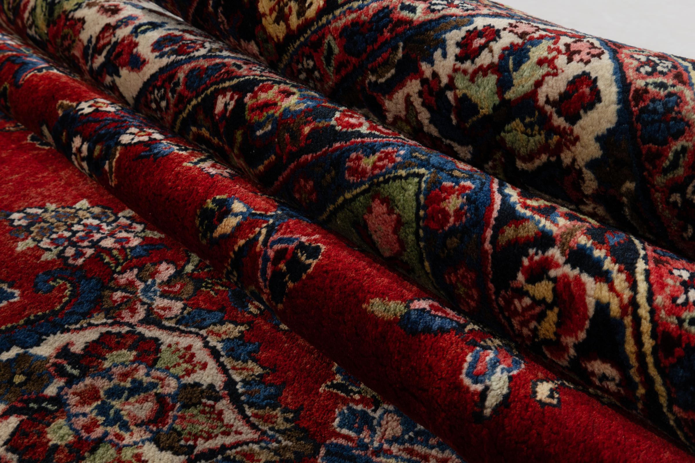 This carpet belongs to the village and nomadic carpets from Iran, the former Persia. This kind of carpets is hand knotted in smaller towns and villages in ancient tradition. Even nomads still knot Persian carpets in the open air. The carpets are knotted without a draft and entirely from memory. They are characterized by classical ornaments arranged in linear and geometric patterns. Thanks to their cultural and traditional origins, these rugs possess a unique character that embodies ancient Persia.