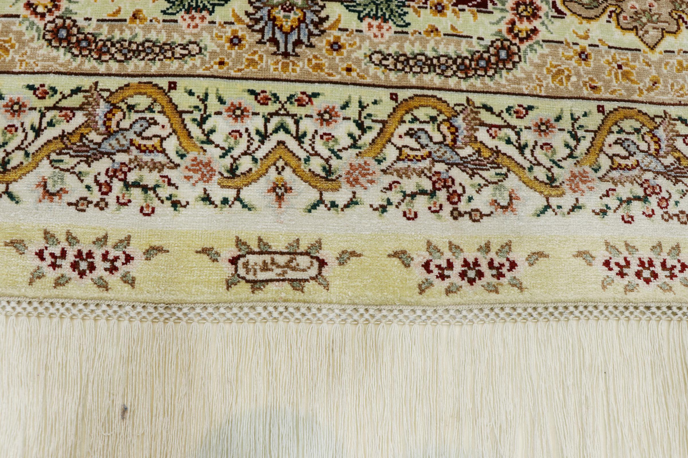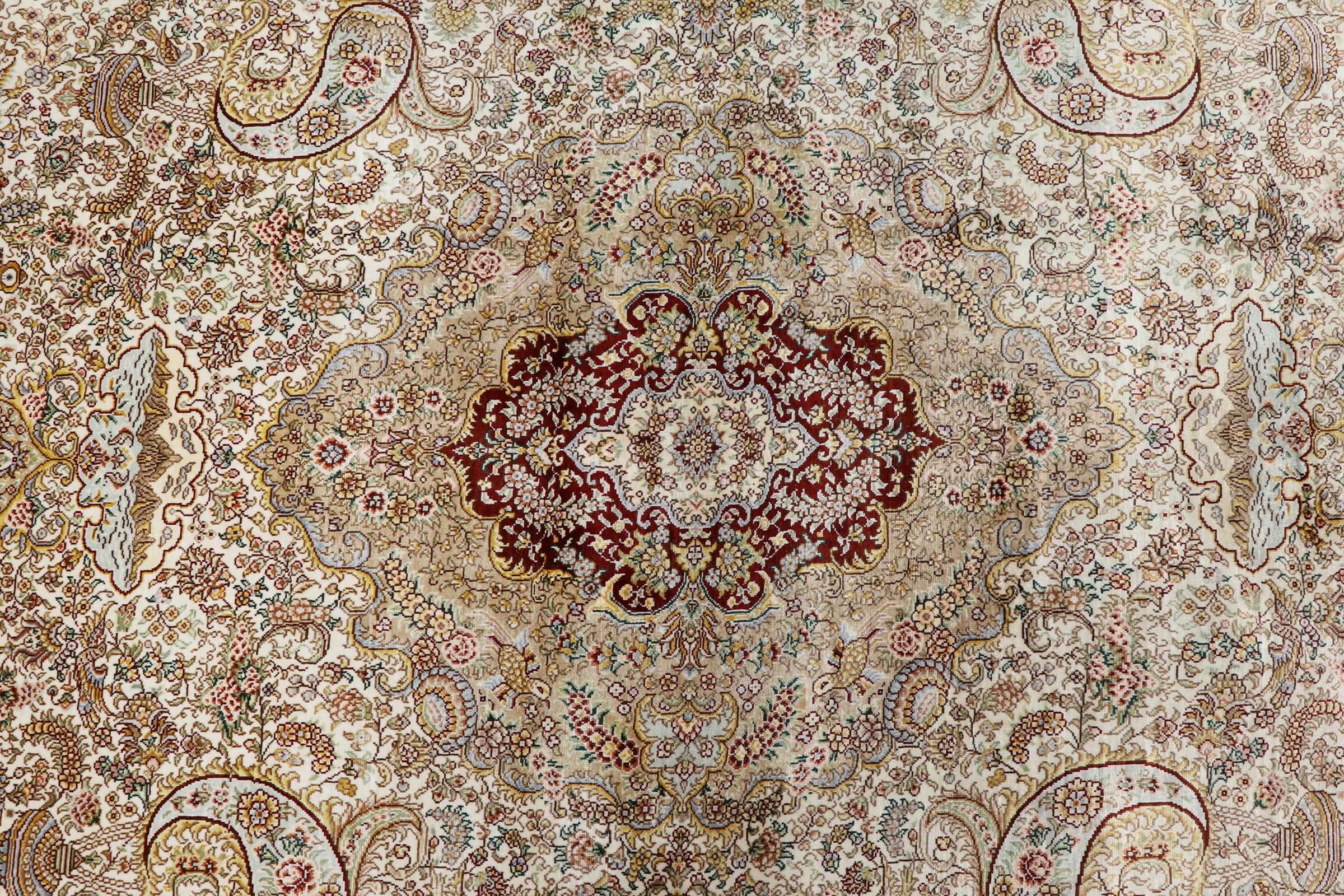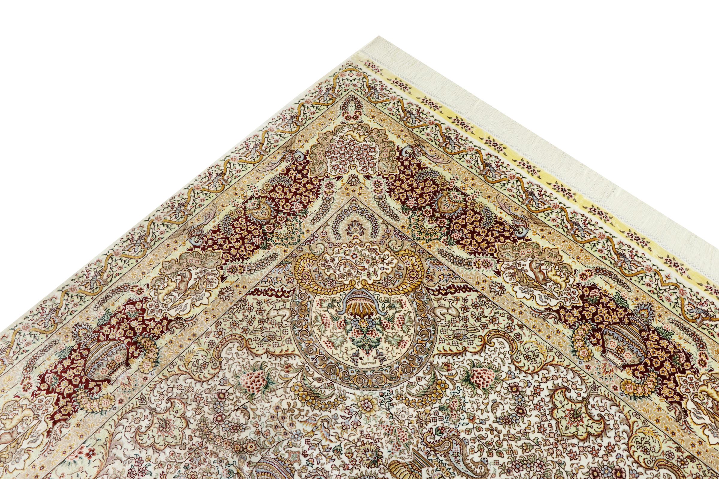 Rug ID: 303785006836269 Size: 9'0"x6'2" ft Thickness: ap. 0.2 in Knot density: 413 / square inch Manufacturing: Knotted by hand Pile: Silk Warp: Silk Origin: China Age: New Weight: ap. 33 lb In stock: Unique - Only 1 in stock