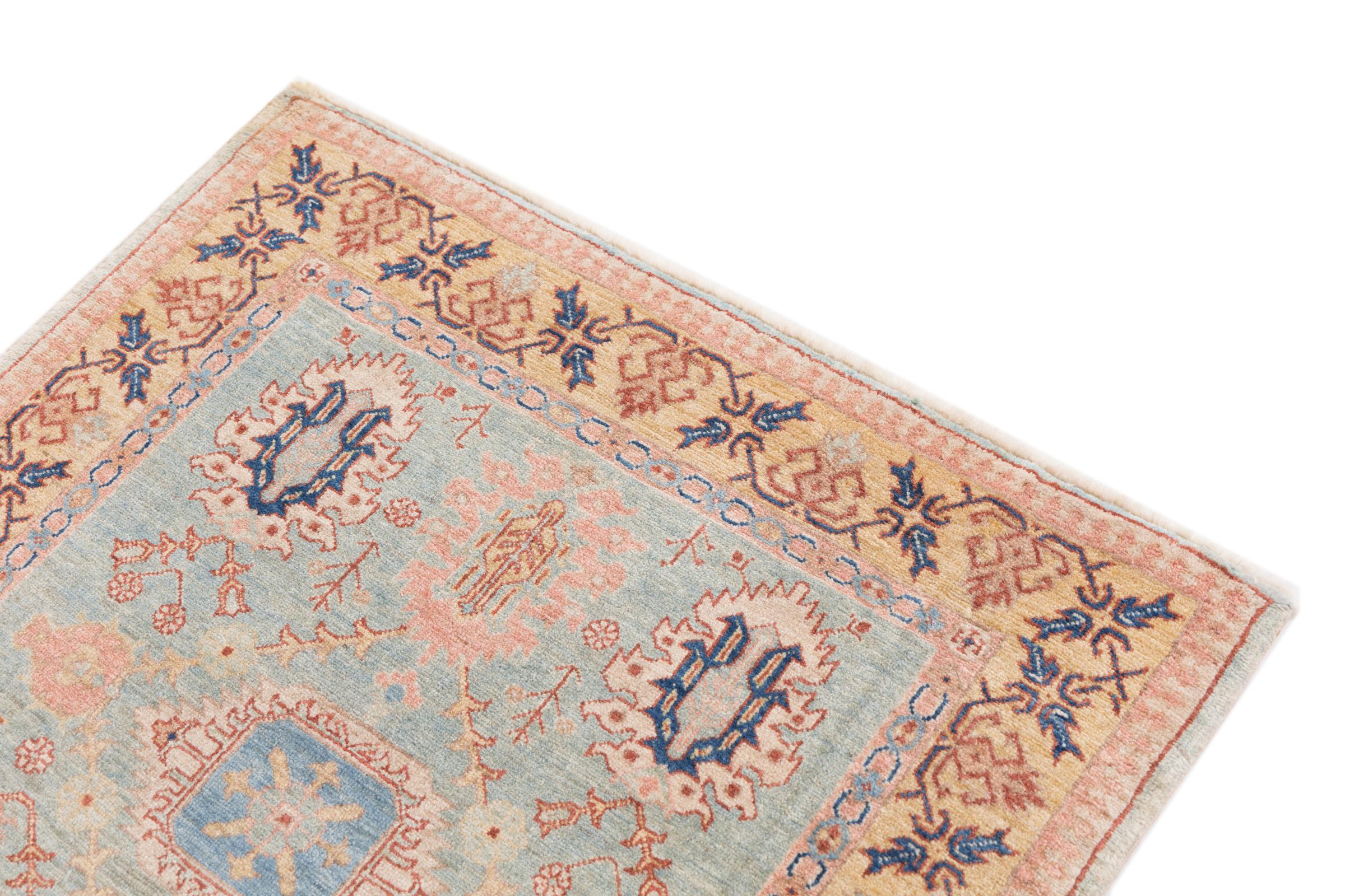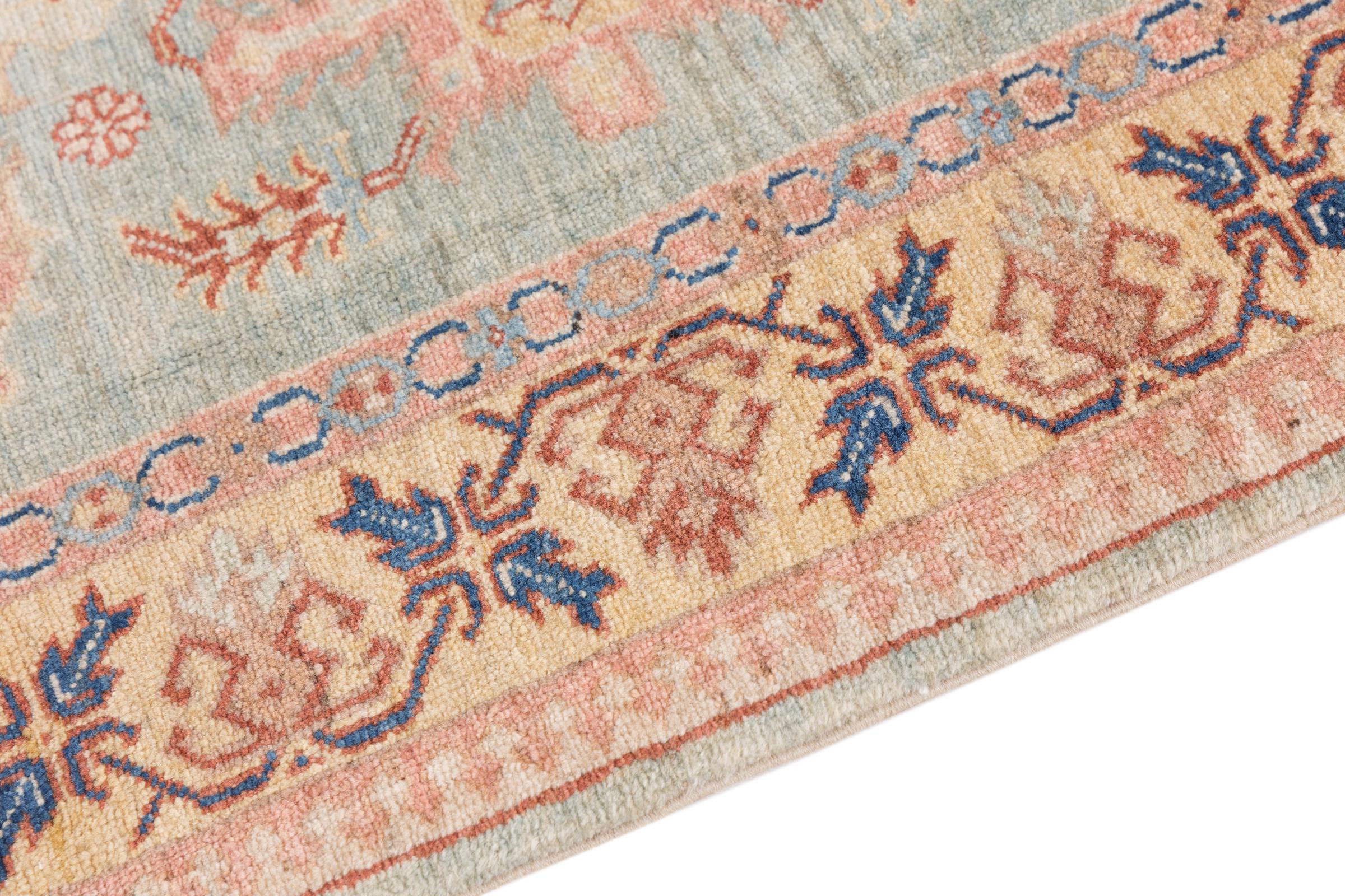 This carpet belongs to the village and nomadic carpets from Iran, the former Persia. This kind of carpets is hand knotted in smaller towns and villages in ancient tradition. Even nomads still knot Persian carpets in the open air. The carpets are knotted without a draft and entirely from memory. They are characterized by classical ornaments arranged in linear and geometric patterns. Thanks to their cultural and traditional origins, these rugs possess a unique character that embodies ancient Persia.
