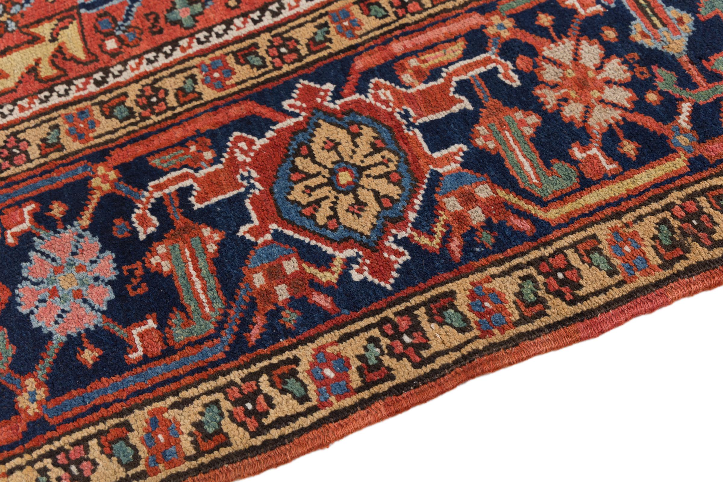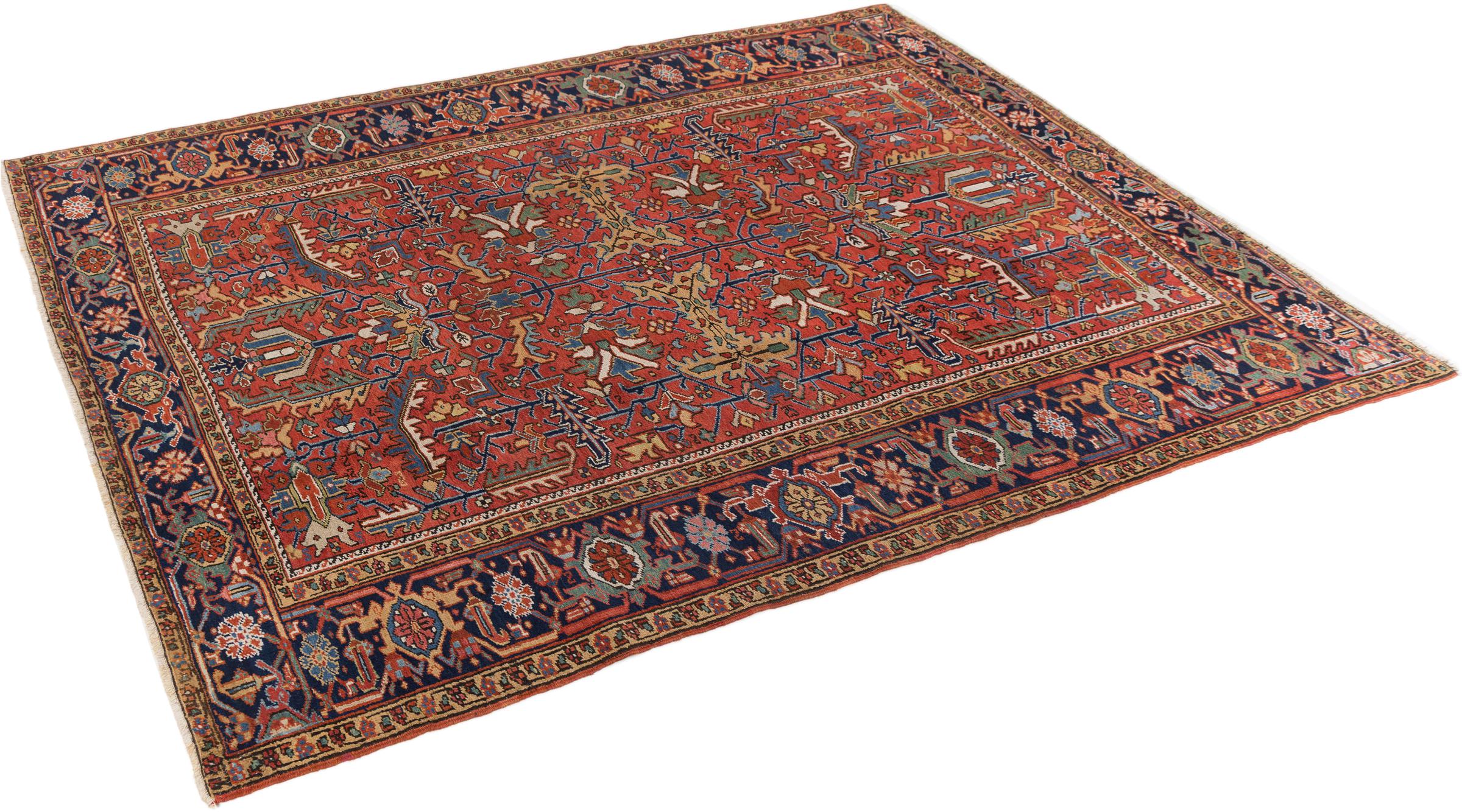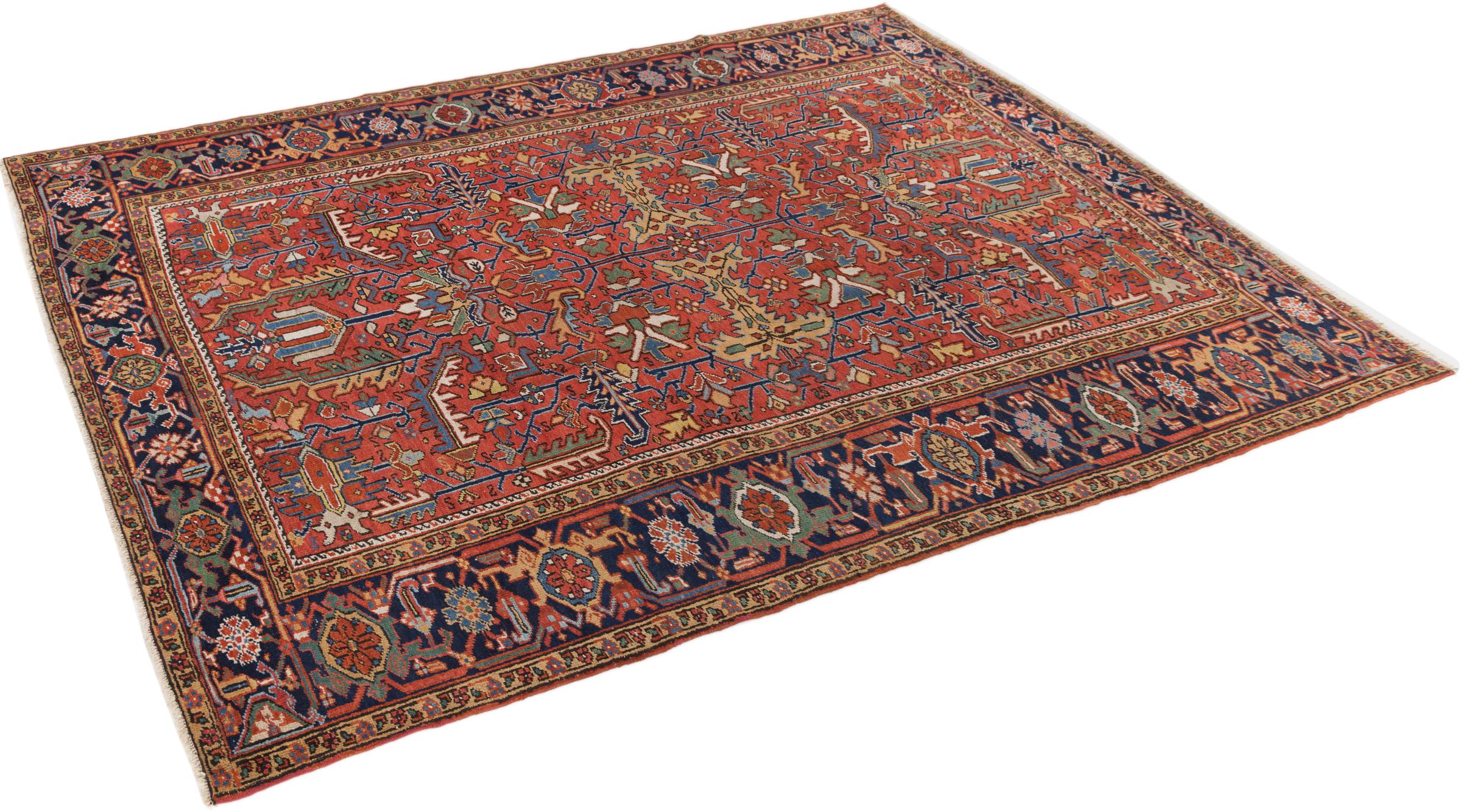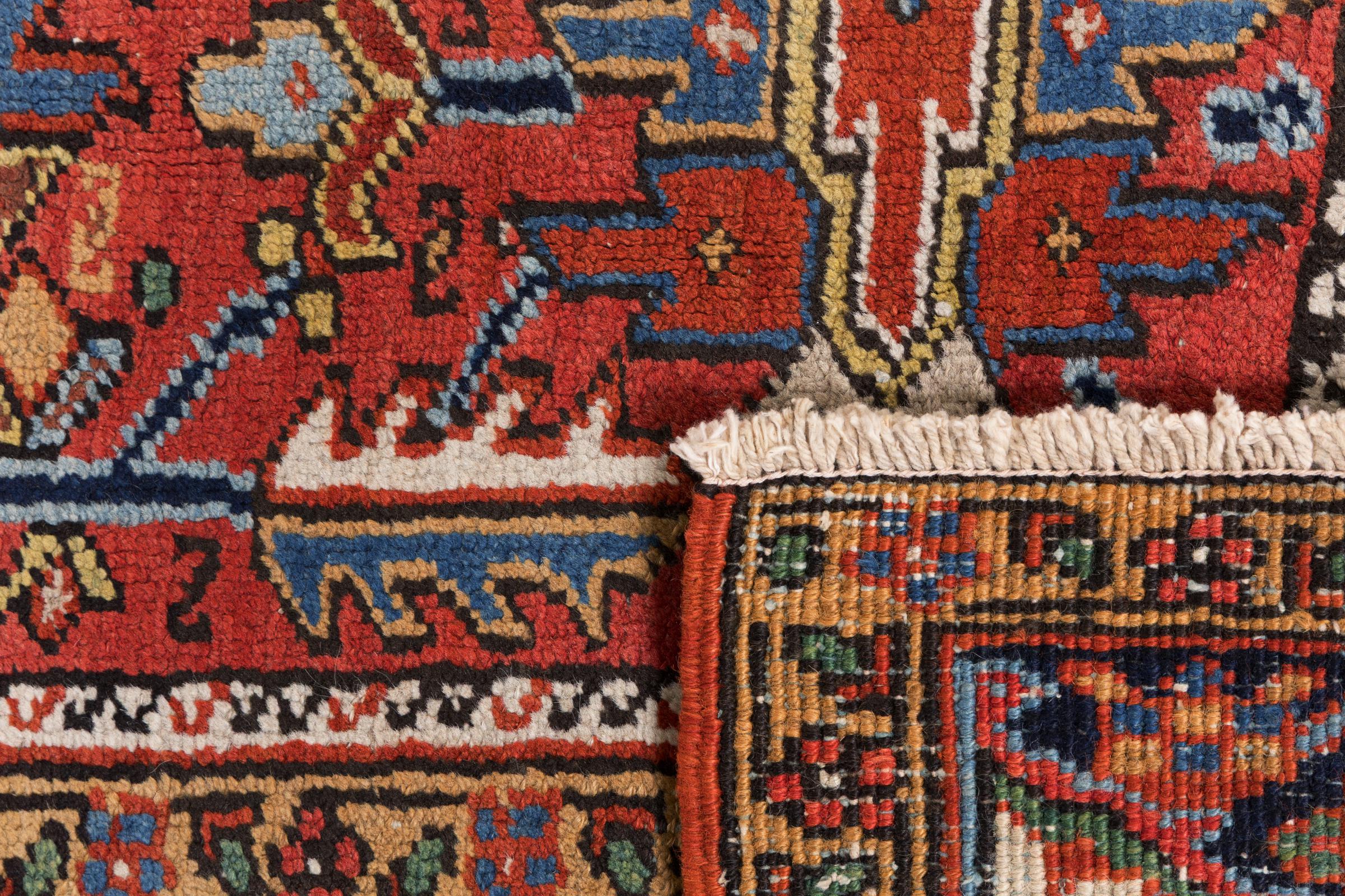 This rug from Heriz (Heris) has been made in old traditional Persian handicraft. Heriz is located in northwestern Iran. This rug has been knotted by hand from fine sheep wool. It has a beautiful medallion in its center, which is typical for this type of rug.