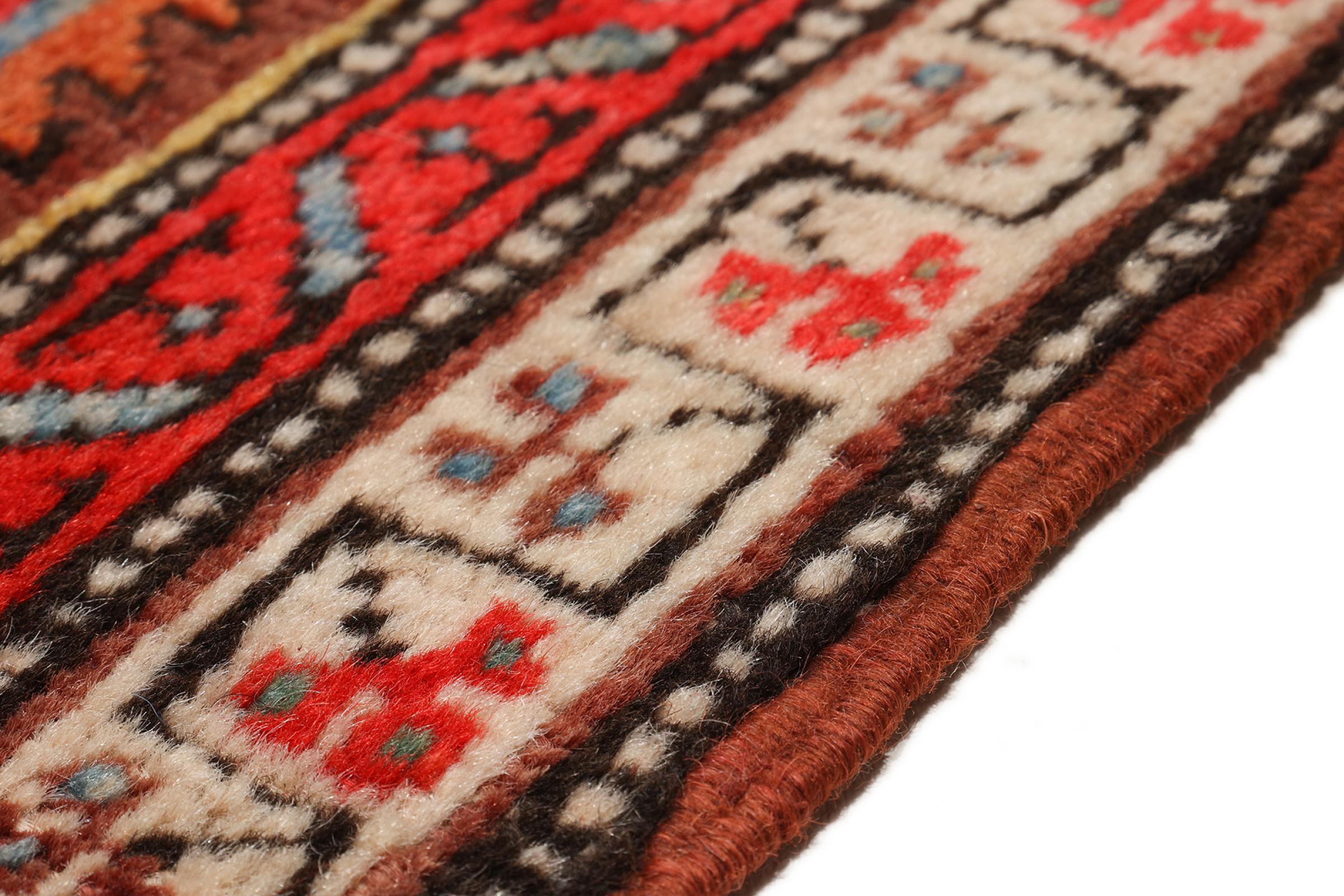 This carpet belongs to the village and nomadic carpets from Iran, the former Persia. This kind of carpets is hand knotted in smaller towns and villages in ancient tradition. Even nomads still knot Persian carpets in the open air. The carpets are knotted without a draft and entirely from memory. They are characterized by classical ornaments arranged in linear and geometric patterns. Thanks to their cultural and traditional origins, these rugs possess a unique character that embodies ancient Persia.