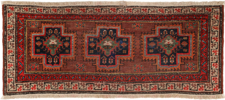 Rug ID: 316098005270248 Size: 2'11"x1'3" ft Thickness: ap. 0.47 in Knot density: 82 - 103 / square inch Manufacturing: Knotted by hand Pile: Handspun wool Warp: Cotton Condition / Conservation: Perfect Origin: Persia / Iran Age: Antique, over 80 years Weight: ap. 2 lb In stock: Unique - Only 1 in stock