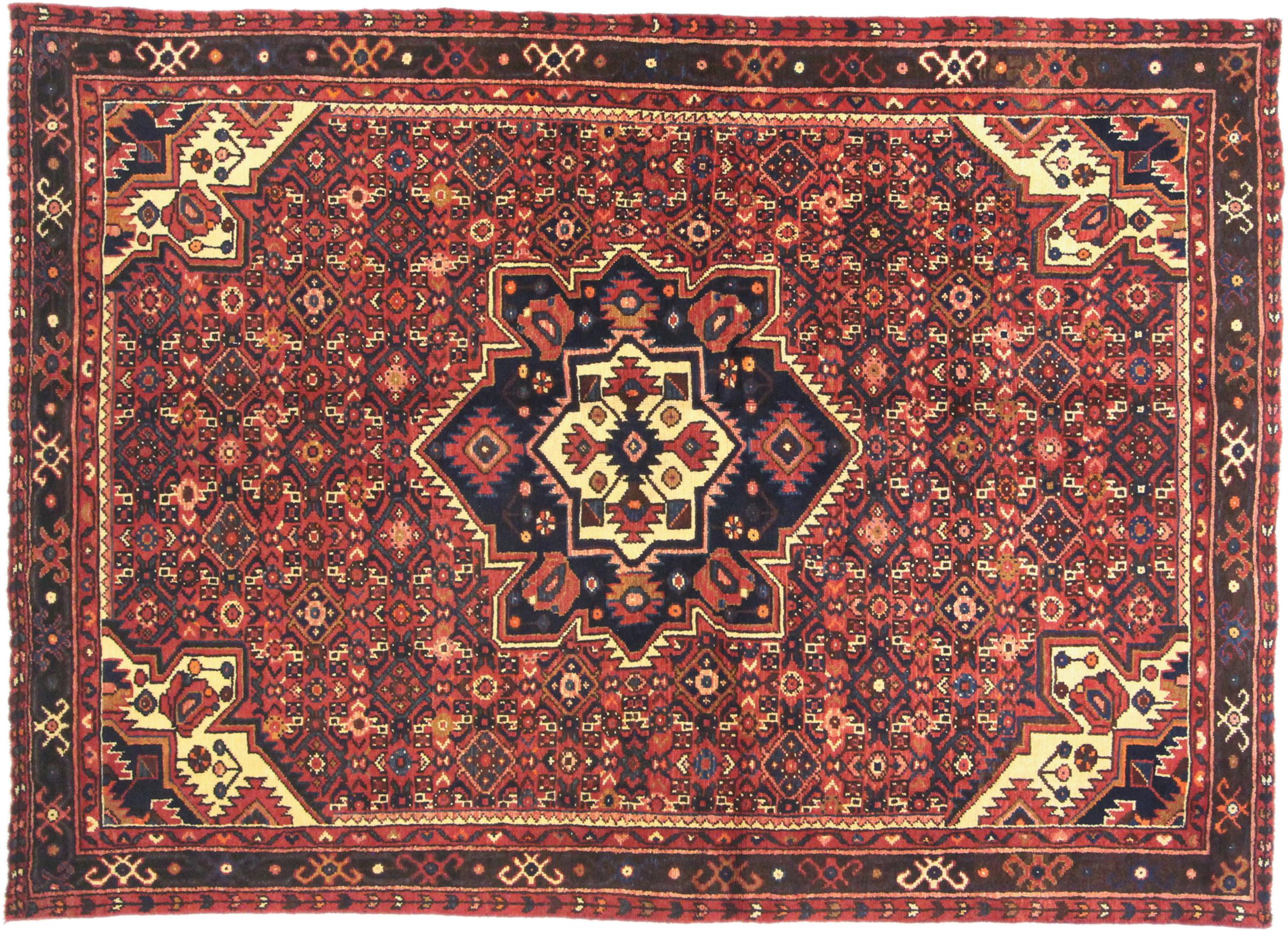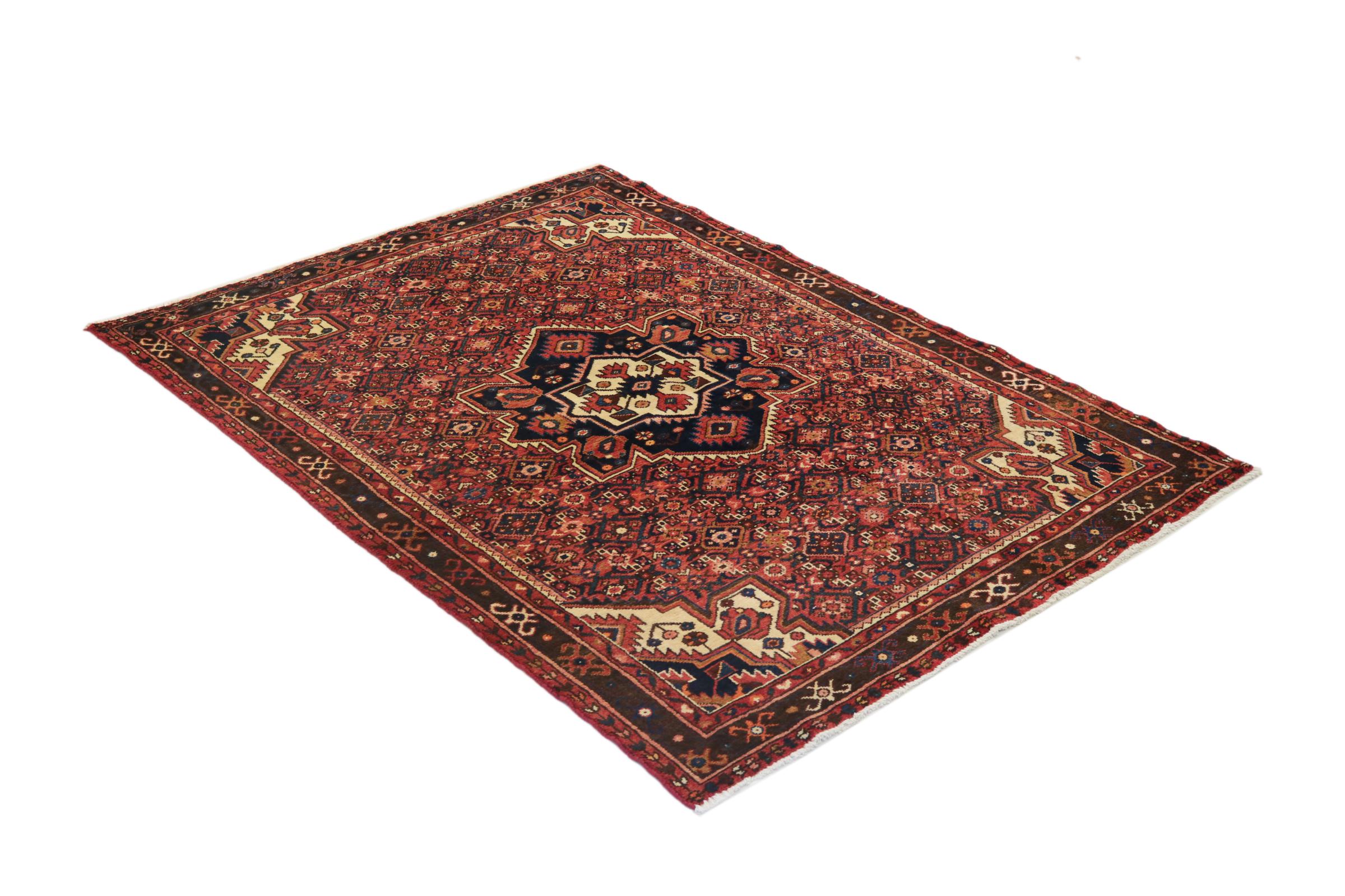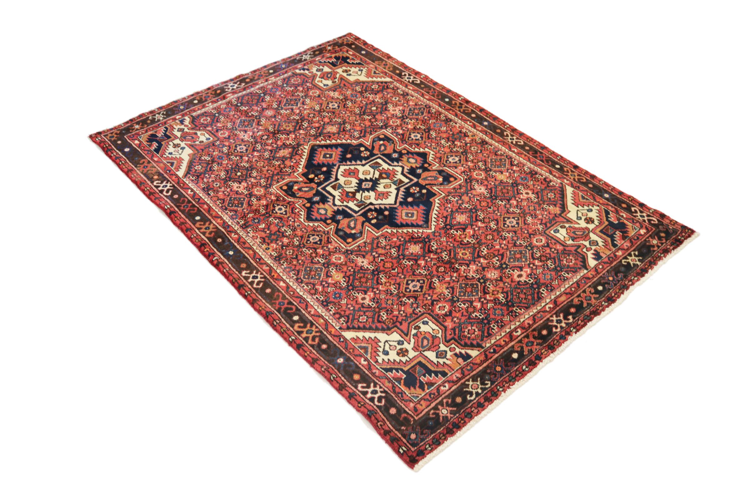 Rug ID: 209540006861129 Size: 7'0"x5'0" ft Thickness: ap. 0.47 in Knot density: 103 - 129 / square inch Manufacturing: Knotted by hand Pile: Handspun wool Warp: Cotton Origin: Persia / Iran Age: New Weight: ap. 24 lb Also know as Huseinabad In stock: Unique - Only 1 in stock