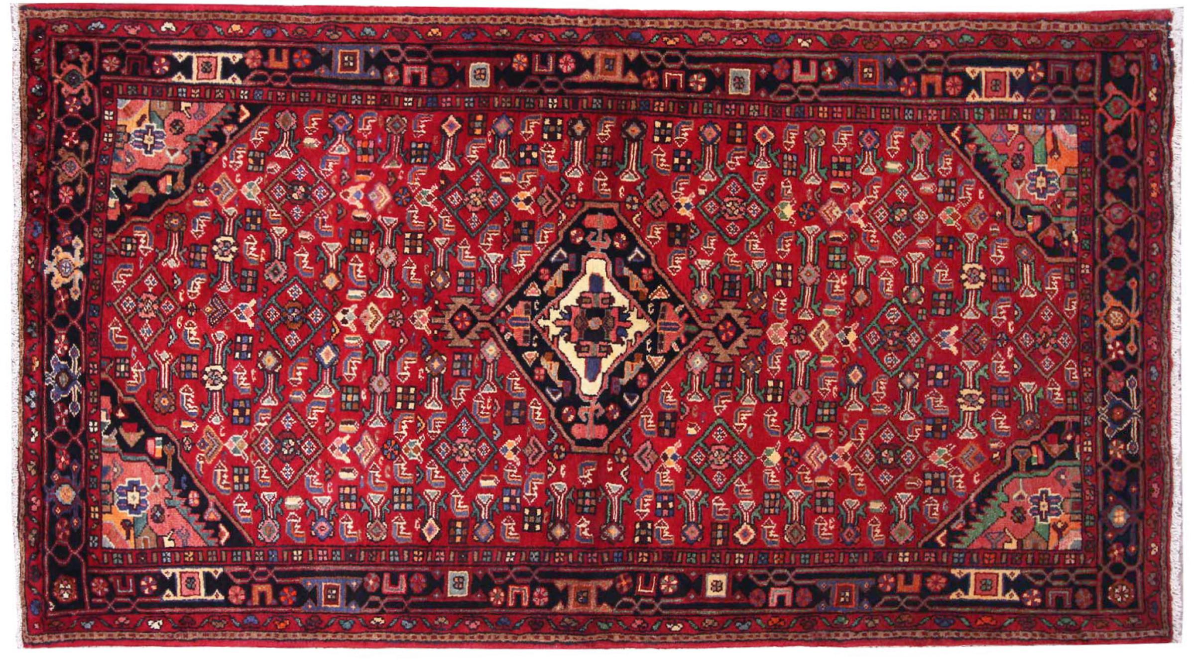 Rug ID: 303187005764583 Size: 7'9"x4'5" ft Thickness: ap. 0.47 in Knot density: 82 - 103 / square inch Manufacturing: Knotted by hand Pile: Handspun wool Warp: Cotton Origin: Persia / Iran Age: New Weight: ap. 24 lb Also know as Huseinabad In stock: Unique - Only 1 in stock