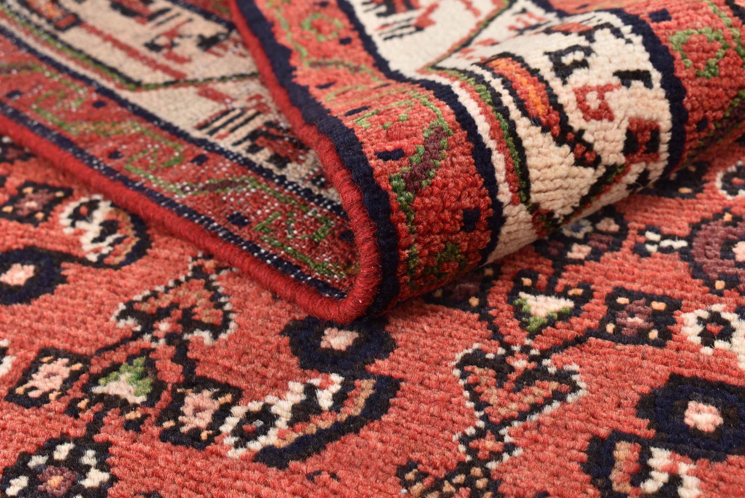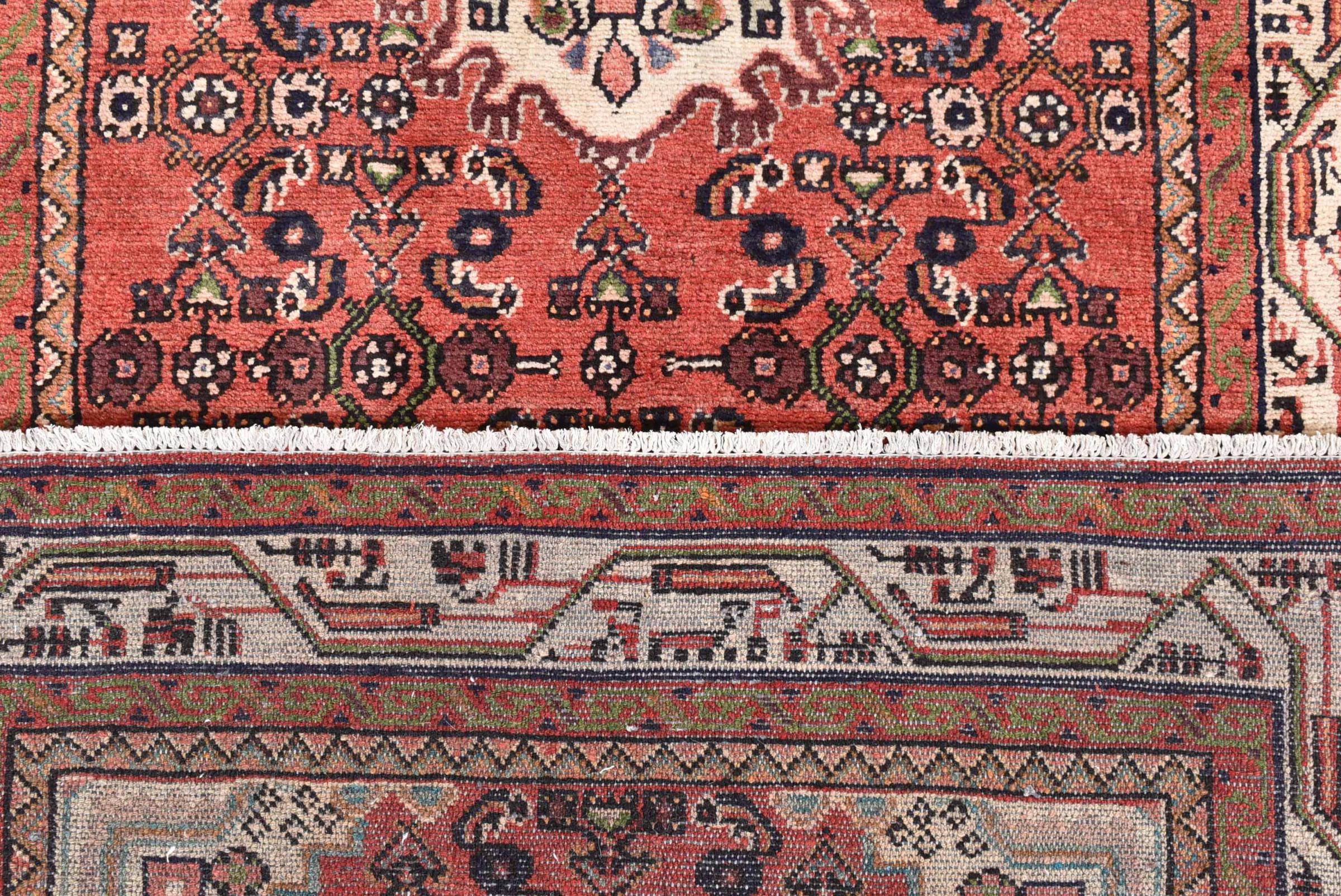 This carpet belongs to the village and nomadic carpets from Iran, the former Persia. This kind of carpets is hand knotted in smaller towns and villages in ancient tradition. Even nomads still knot Persian carpets in the open air. The carpets are knotted without a draft and entirely from memory. They are characterized by classical ornaments arranged in linear and geometric patterns. Thanks to their cultural and traditional origins, these rugs possess a unique character that embodies ancient Persia.