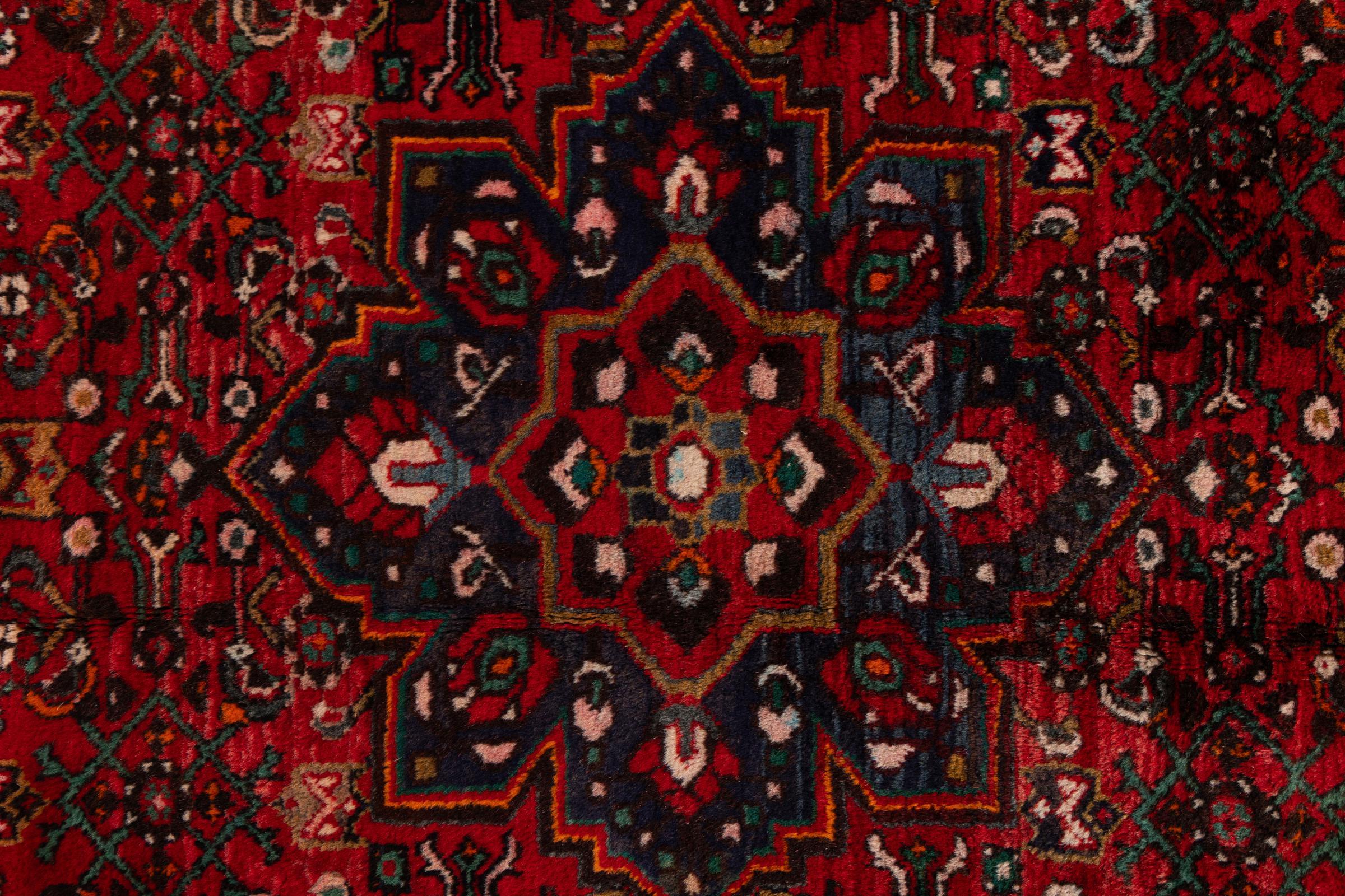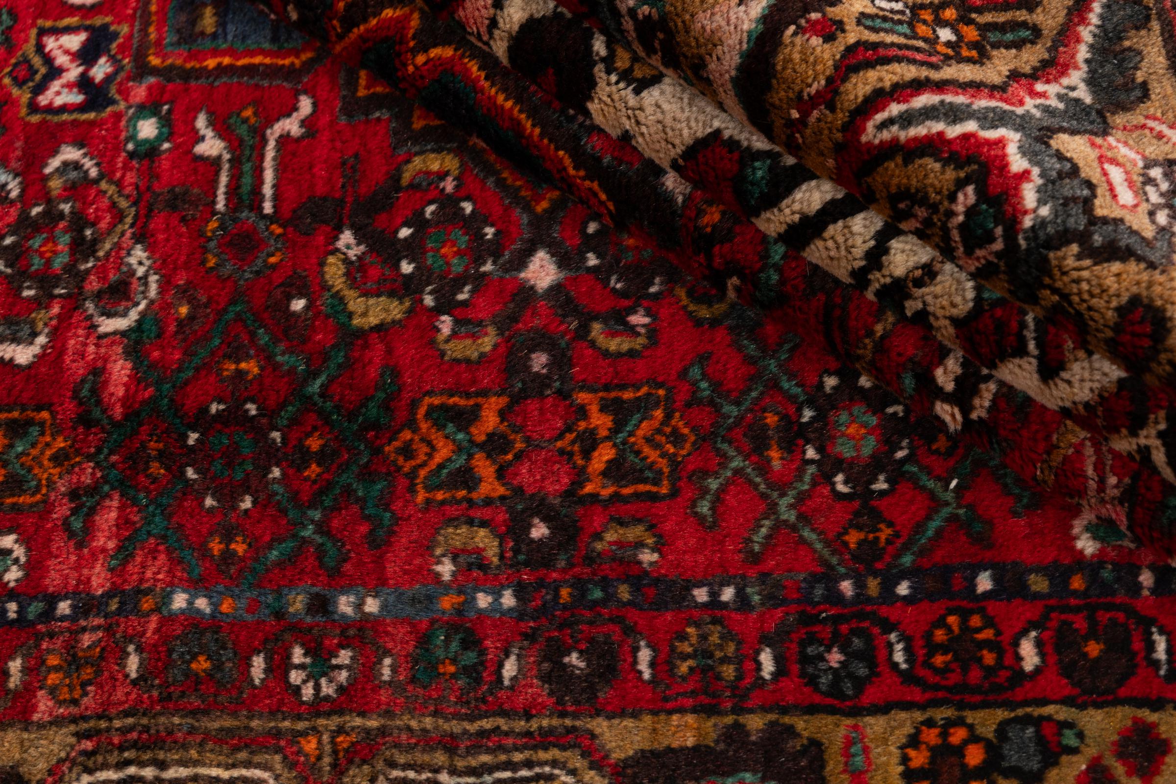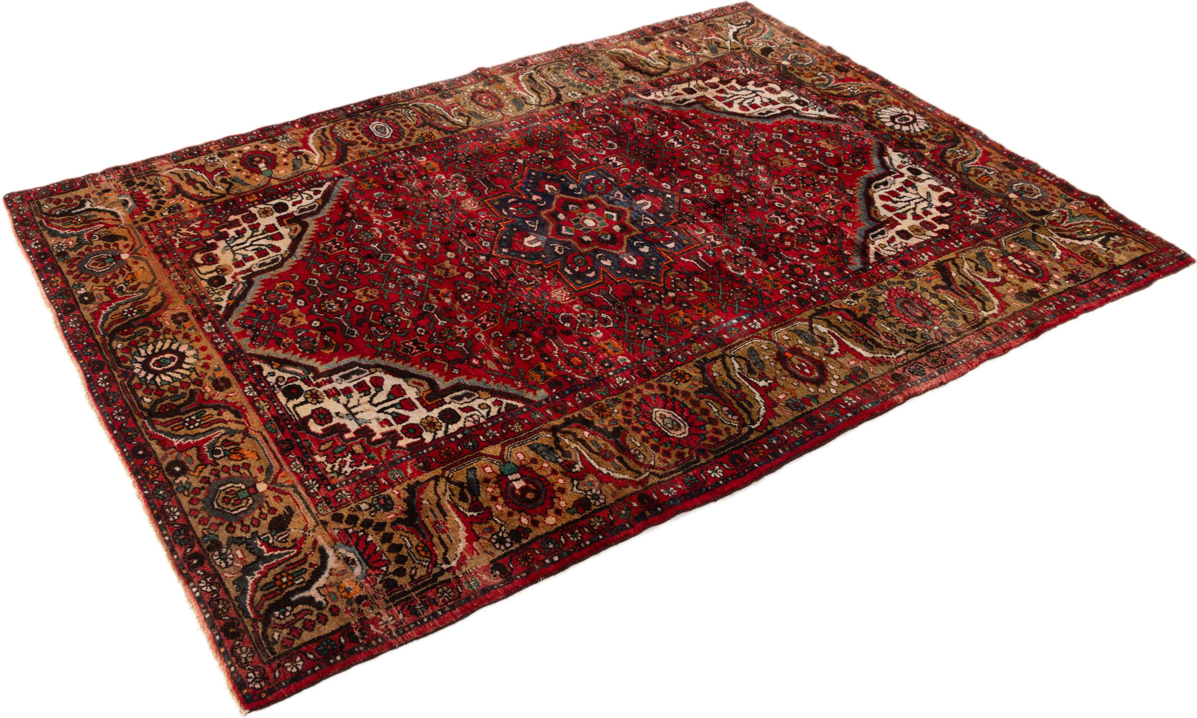 This carpet belongs to the village and nomadic carpets from Iran, the former Persia. This kind of carpets is hand knotted in smaller towns and villages in ancient tradition. Even nomads still knot Persian carpets in the open air. The carpets are knotted without a draft and entirely from memory. They are characterized by classical ornaments arranged in linear and geometric patterns. Thanks to their cultural and traditional origins, these rugs possess a unique character that embodies ancient Persia.