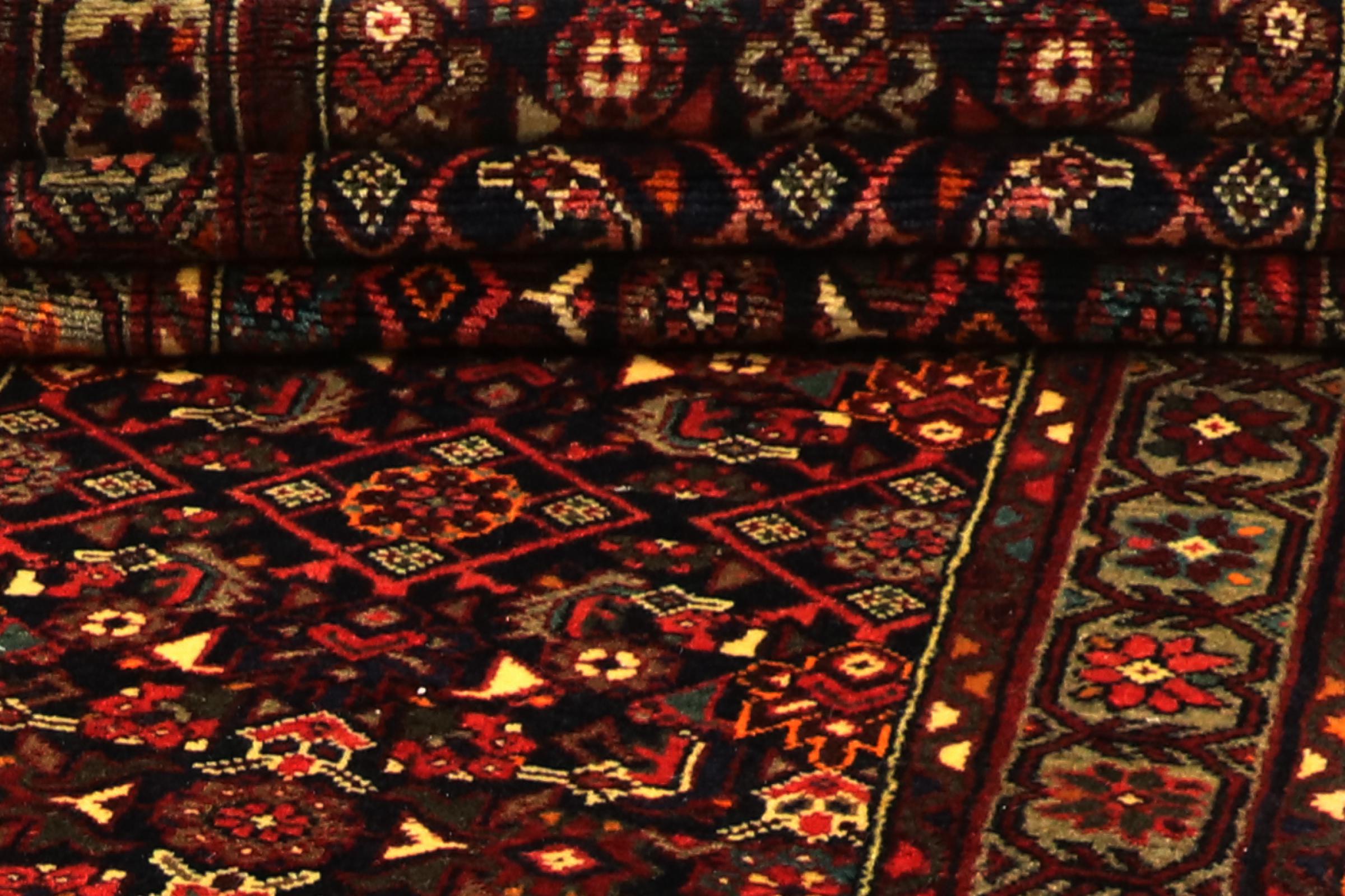 This carpet belongs to the village and nomadic carpets from Iran, the former Persia. This kind of carpets is hand knotted in smaller towns and villages in ancient tradition. Even nomads still knot Persian carpets in the open air. The carpets are knotted without a draft and entirely from memory. They are characterized by classical ornaments arranged in linear and geometric patterns. Thanks to their cultural and traditional origins, these rugs possess a unique character that embodies ancient Persia.
