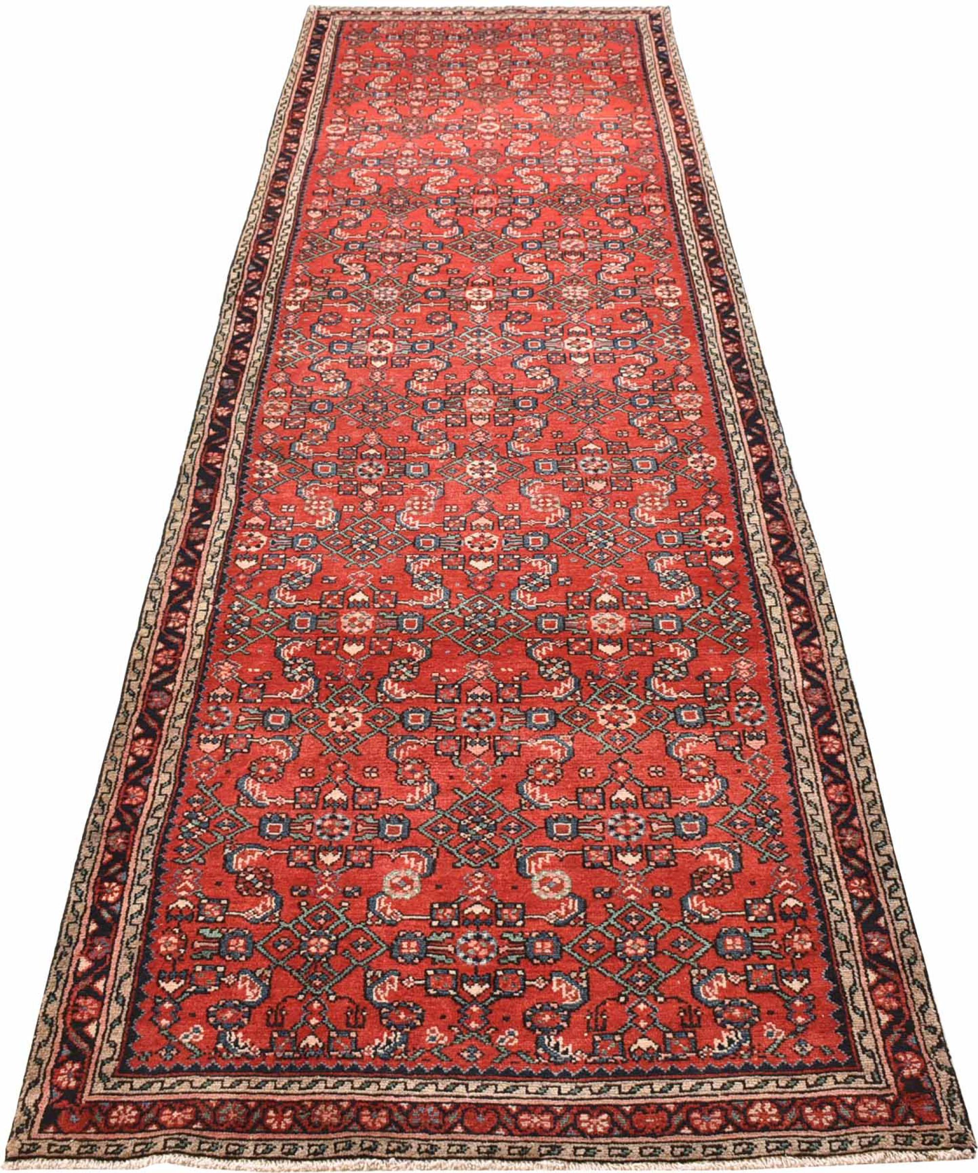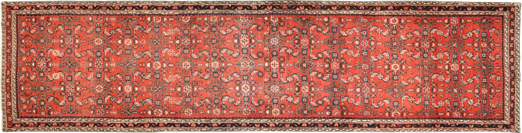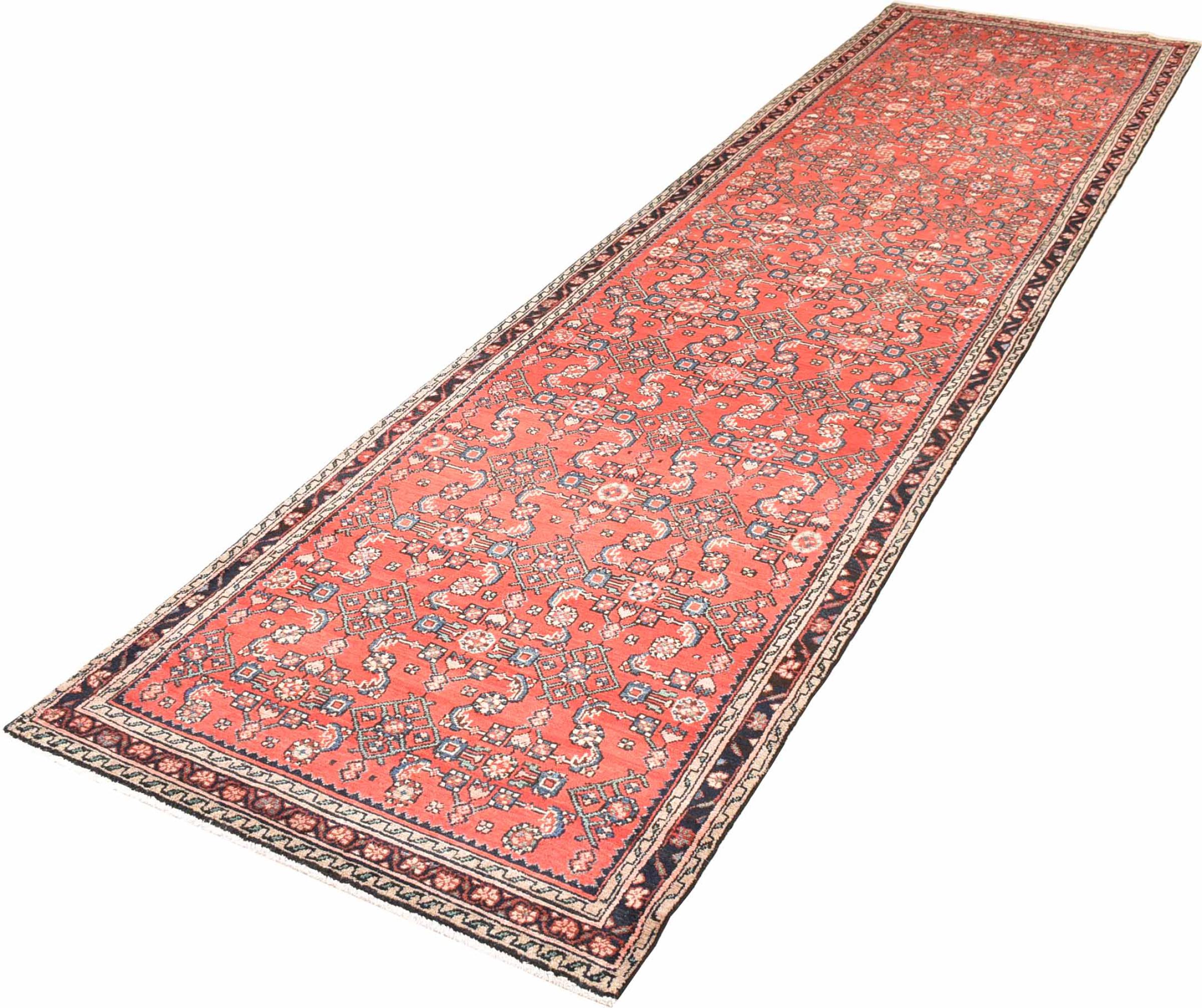Rug ID: 300890007122332 Size: 13'5"x3'4" ft Thickness: ap. 0.47 in Knot density: 82 - 103 / square inch Manufacturing: Knotted by hand Pile: Handspun wool Warp: Cotton Origin: Persia / Iran Age: New Weight: ap. 33 lb Also know as Huseinabad In stock: Unique - Only 1 in stock