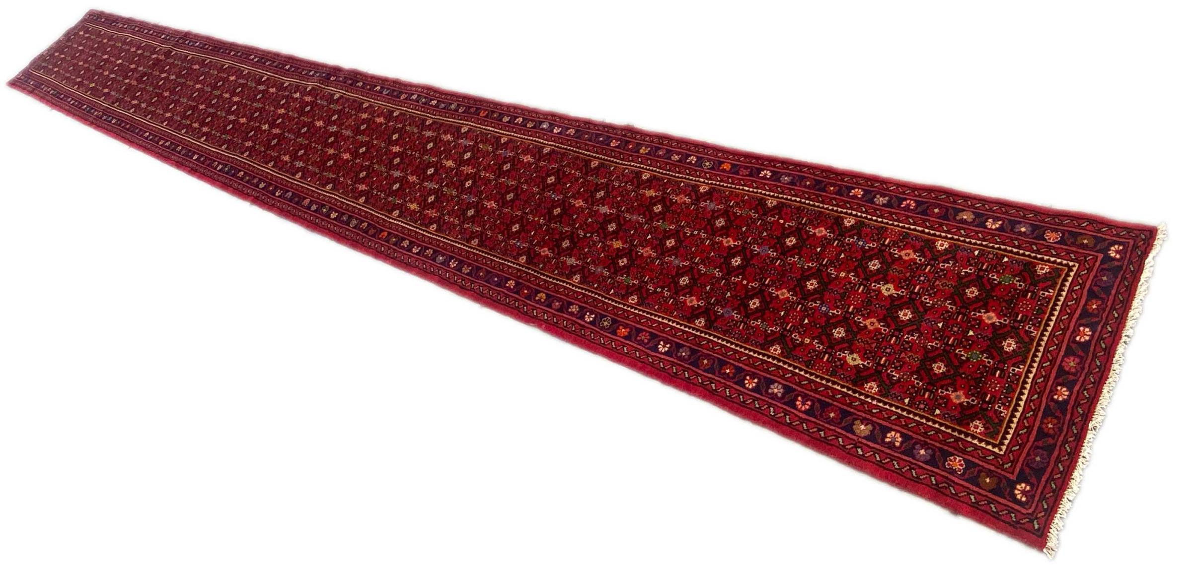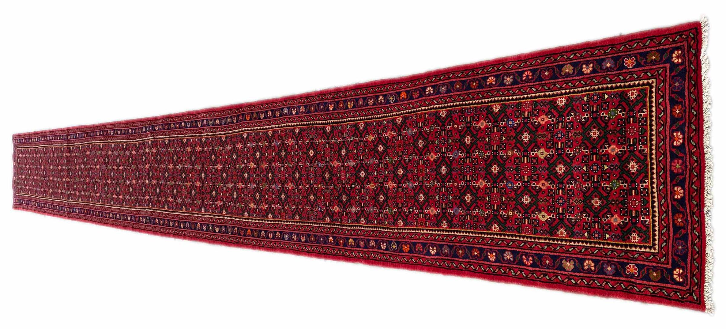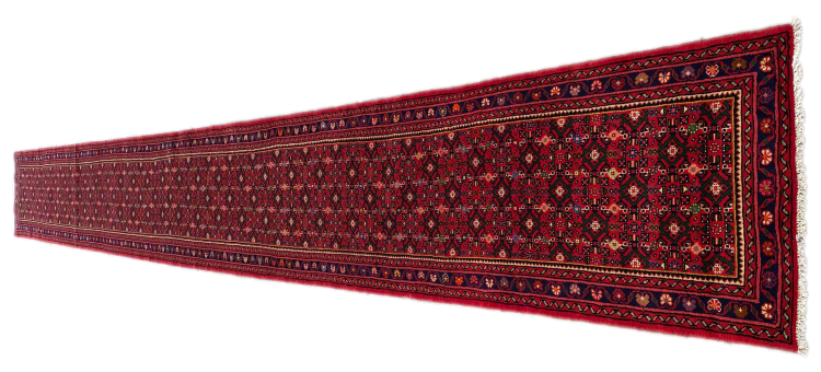 Rug ID: 302975005015118 Size: 22'4"x2'8" ft Thickness: ap. 0.47 in Knot density: 82 - 103 / square inch Manufacturing: Knotted by hand Pile: Handspun wool Warp: Cotton Origin: Persia / Iran Age: New Weight: ap. 42 lb Also know as Huseinabad In stock: Unique - Only 1 in stock