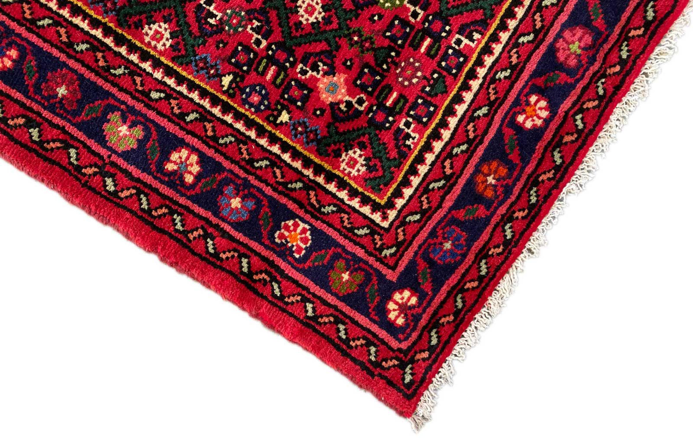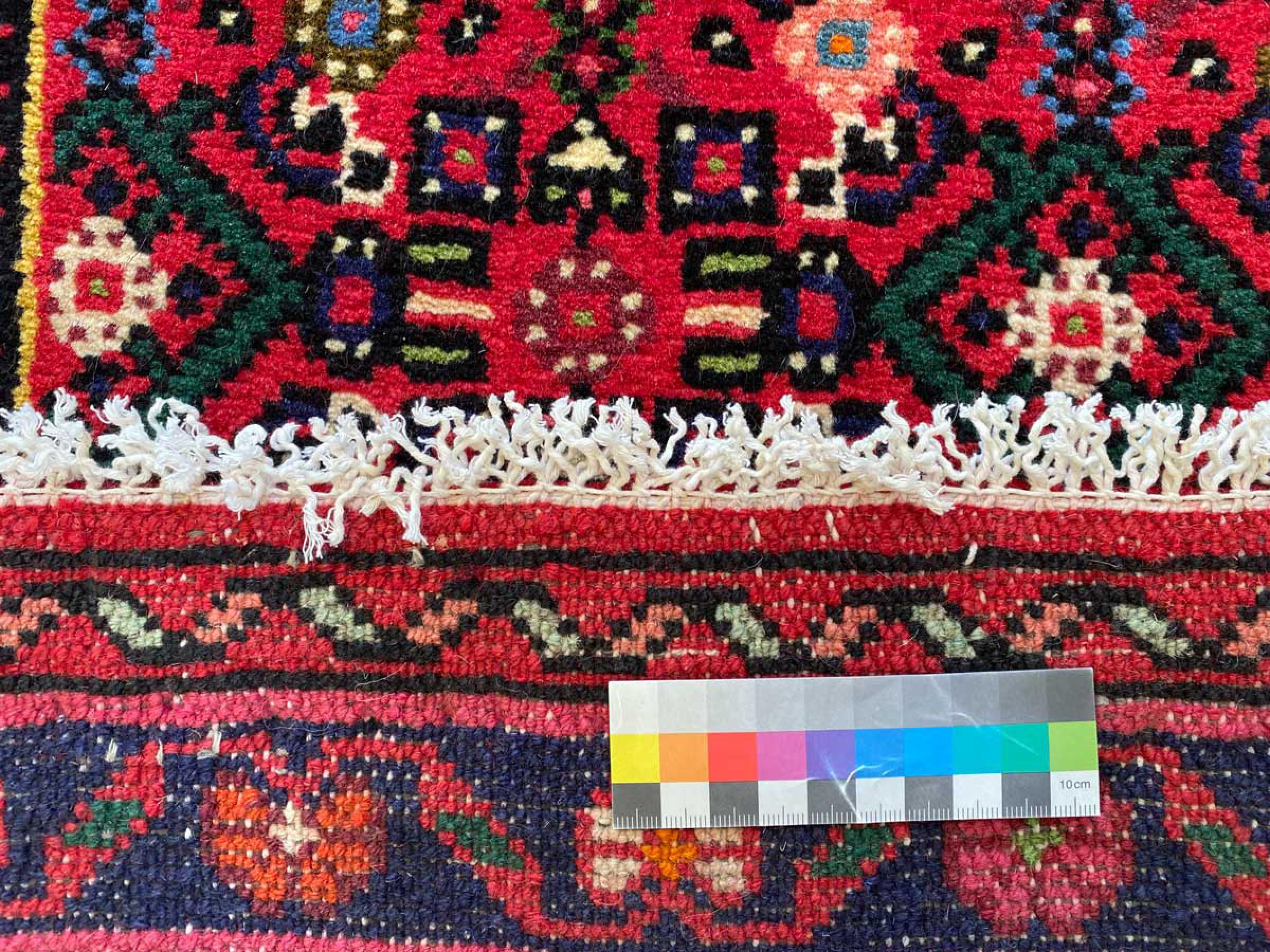 This carpet belongs to the village and nomadic carpets from Iran, the former Persia. This kind of carpets is hand knotted in smaller towns and villages in ancient tradition. Even nomads still knot Persian carpets in the open air. The carpets are knotted without a draft and entirely from memory. They are characterized by classical ornaments arranged in linear and geometric patterns. Thanks to their cultural and traditional origins, these rugs possess a unique character that embodies ancient Persia.