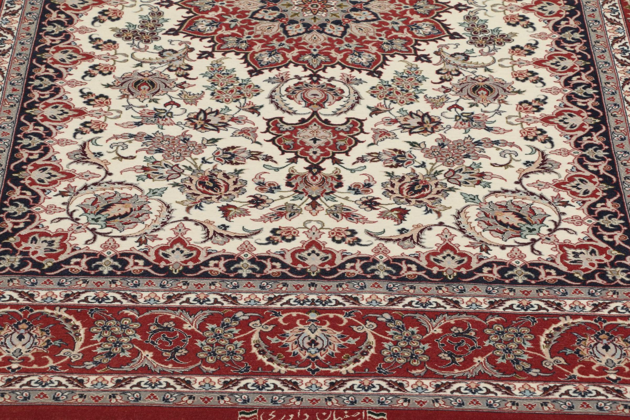 It can't get any better in quality and reputation than that of this Isfahan. This type of rugs counts among the finest and most beautiful types of oriental rugs. It comes with an exceptional fine density of knots and highest grade natural materials. Only the most skilled knotters craft pieces of art like this rug. You will want to keep an Isfahan rug for the rest of your life.