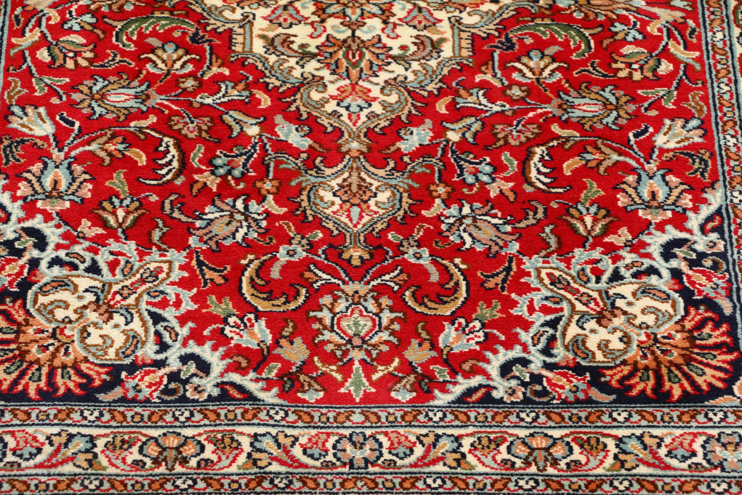 This cashmere silk rug has been knotted by hand in old tradition and is crafted to a piece of highest luxury. The rug consists of pure natural silk with an amazing brilliance. It is handmade in Cashmere and held in a beautiful Persian design. The rug is highly robust and can be used even in frequented rooms. Such a silk rug gives your home an exclusive touch.