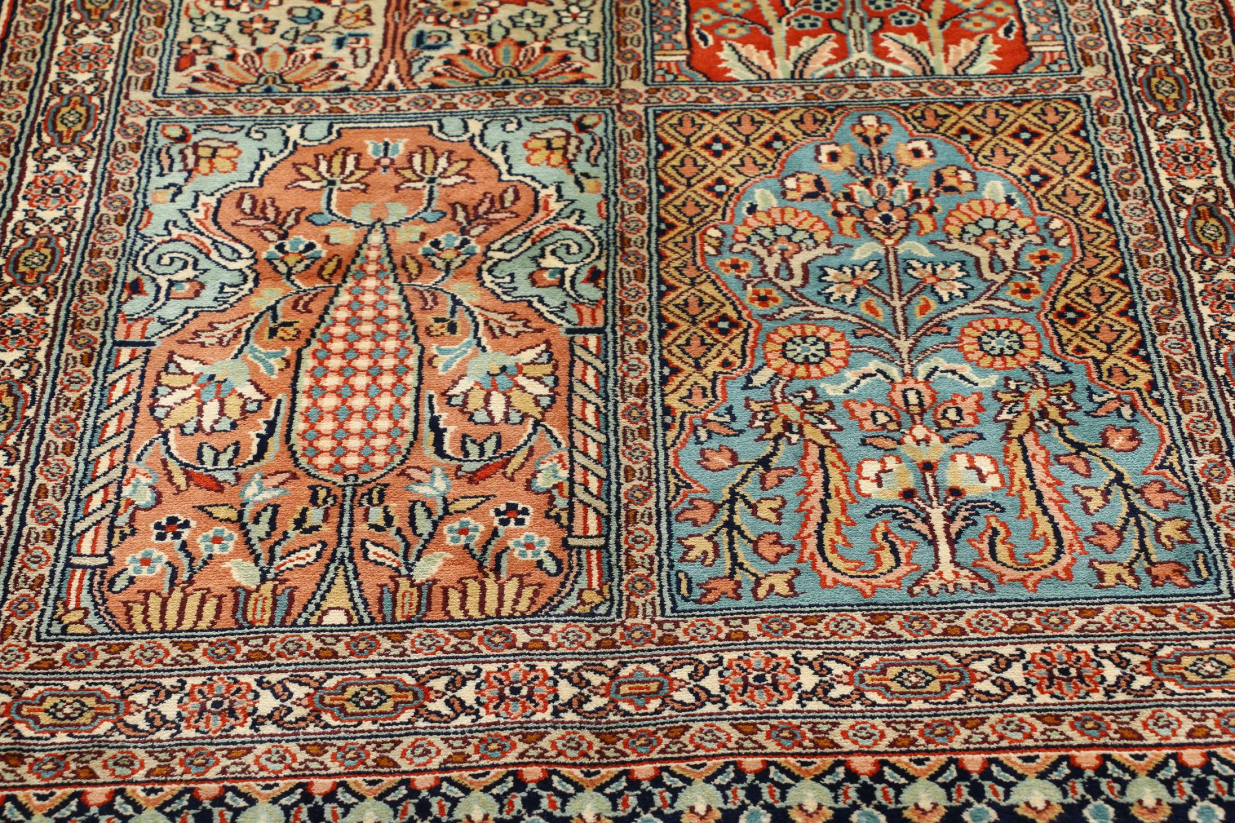 This cashmere silk rug has been knotted by hand in old tradition and is crafted to a piece of highest luxury. The rug consists of pure natural silk with an amazing brilliance. It is handmade in Cashmere and held in a beautiful Persian design. The rug is highly robust and can be used even in frequented rooms. Such a silk rug gives your home an exclusive touch.
