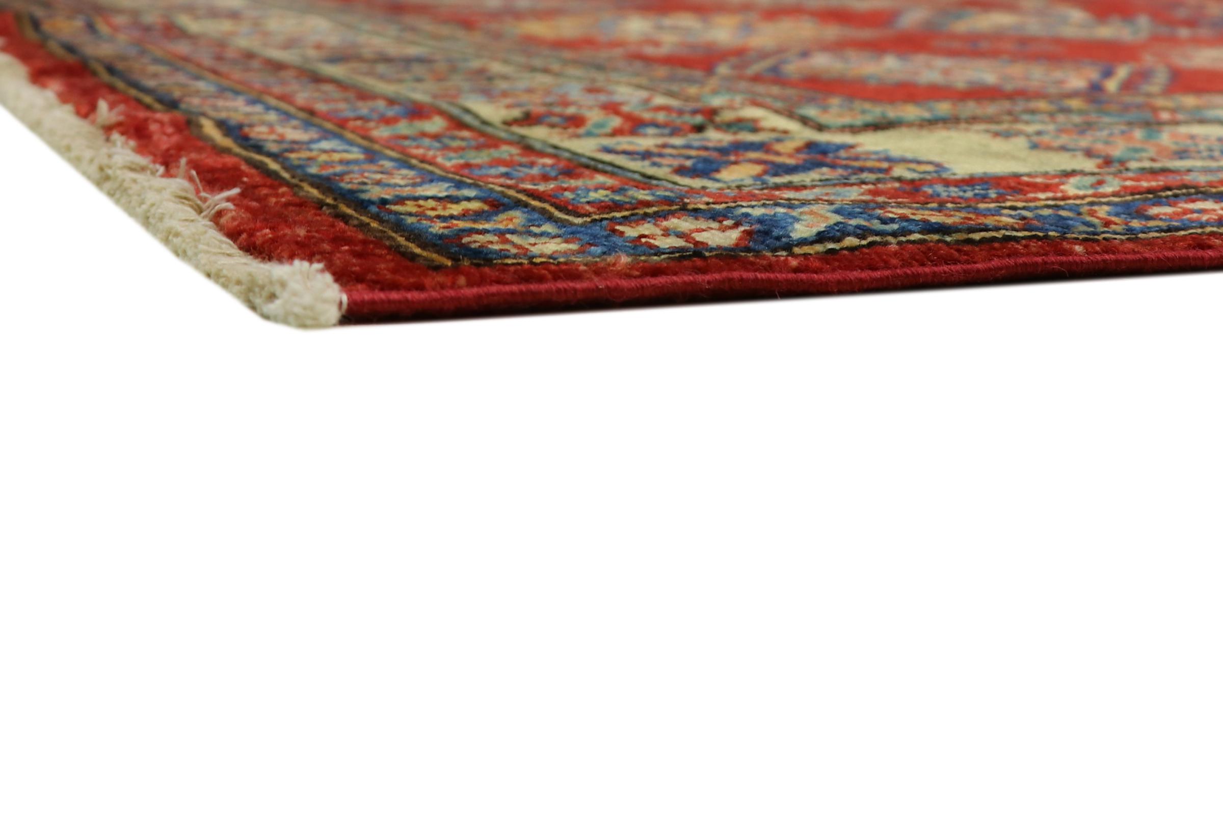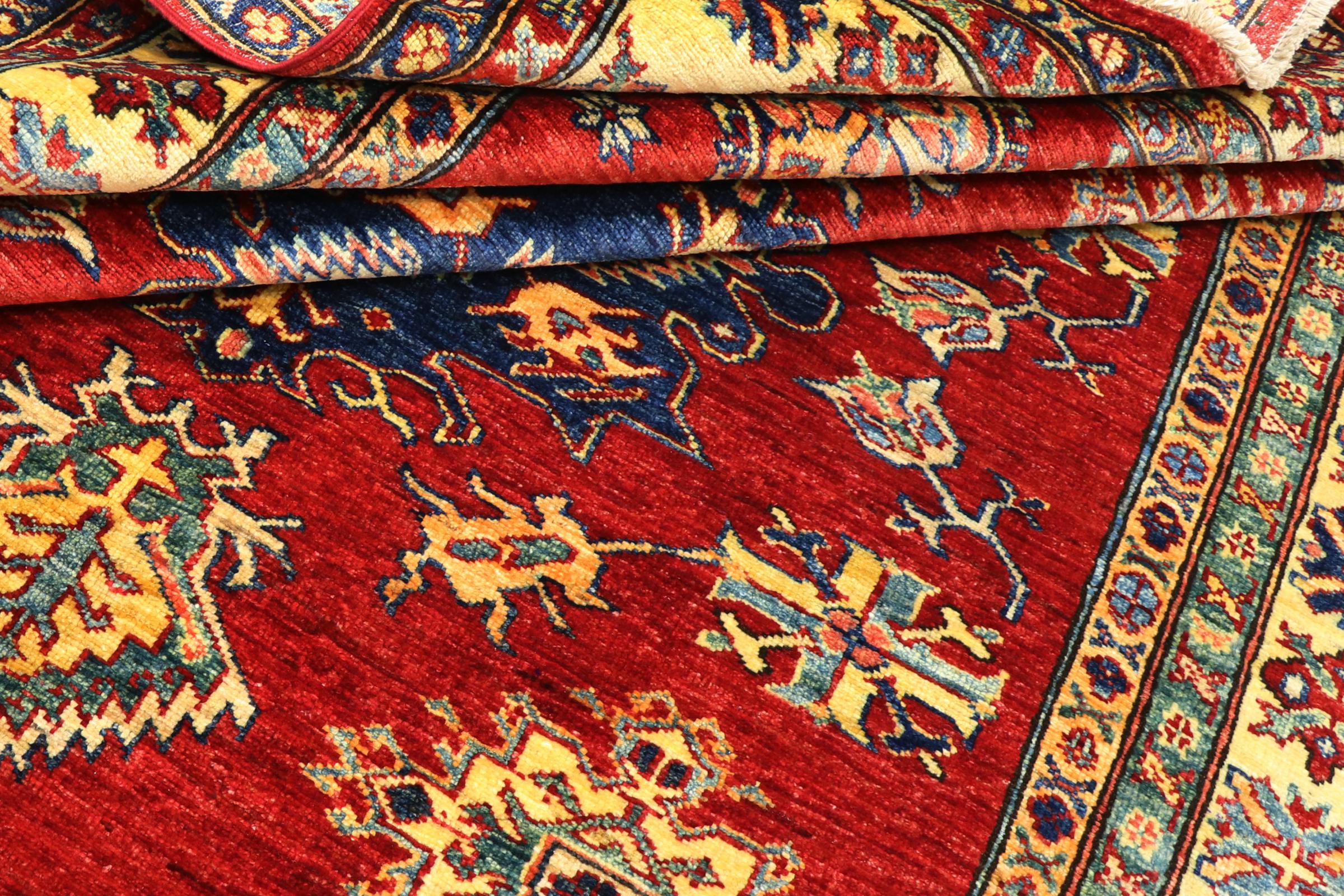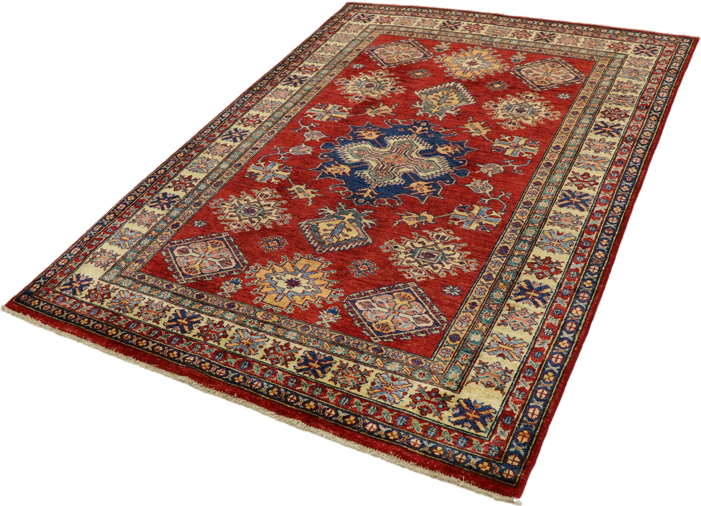 This Kazak rug is traditionally handcrafted and represents the distinctive character, authentic appearance and enduring appeal. of this well-known rug type. The region of origin is famous for its handmade rugs with beautiful geometric patterns and well balanced natural colors. As all Kazak rugs in our collection, this piece is one of a kind and a testament to genuine craftsmanship.