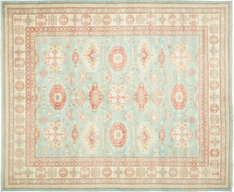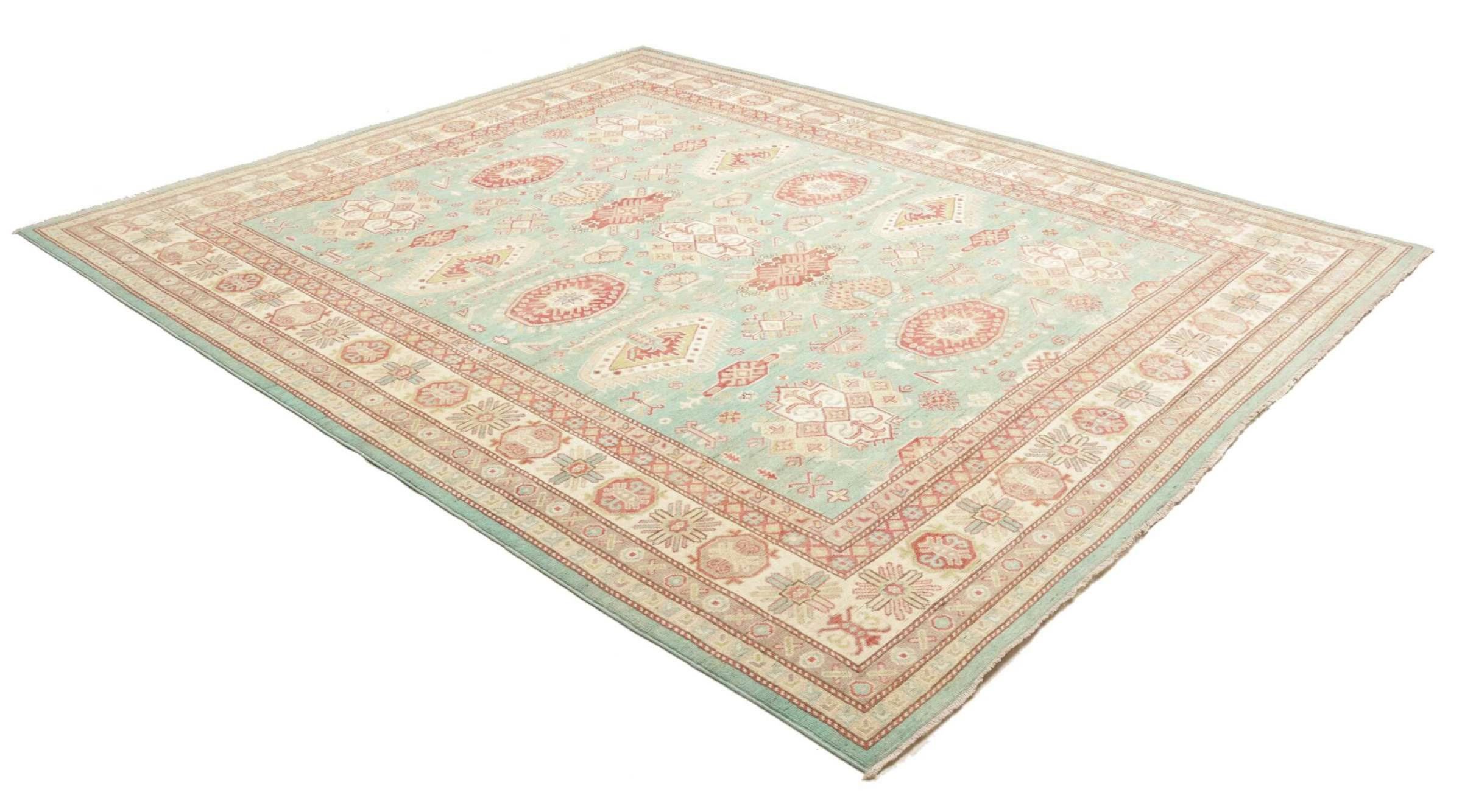 Rug ID: 231159004485386 Size: 9'9"x8'1" ft Thickness: ap. 0.2 in Knot density: 78 - 97 / square inch Manufacturing: Knotted by hand Pile: Handspun wool Warp: Cotton Origin: Pakistan Age: New Weight: ap. 40 lb In stock: Unique - Only 1 in stock