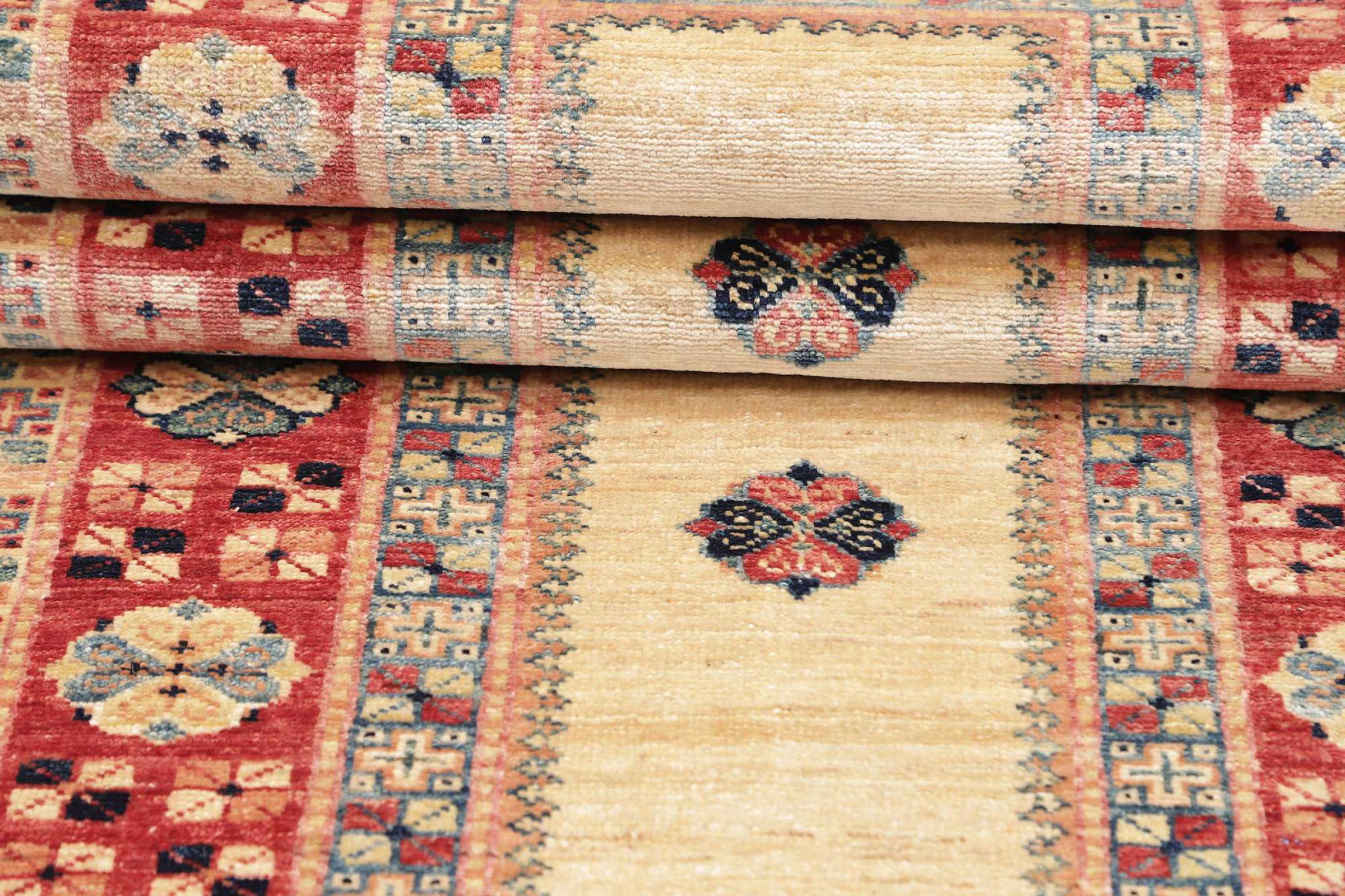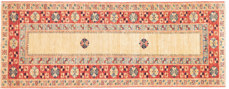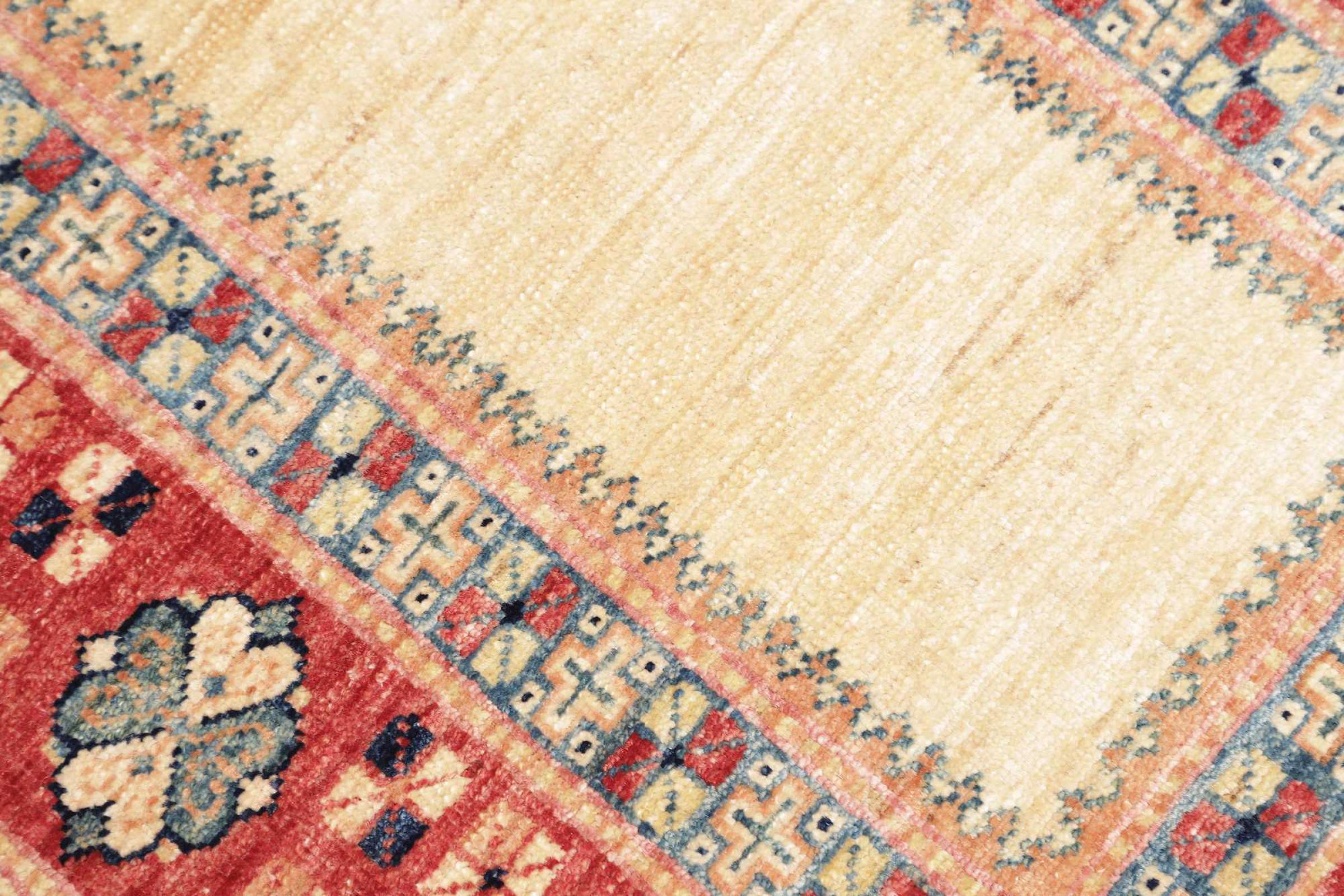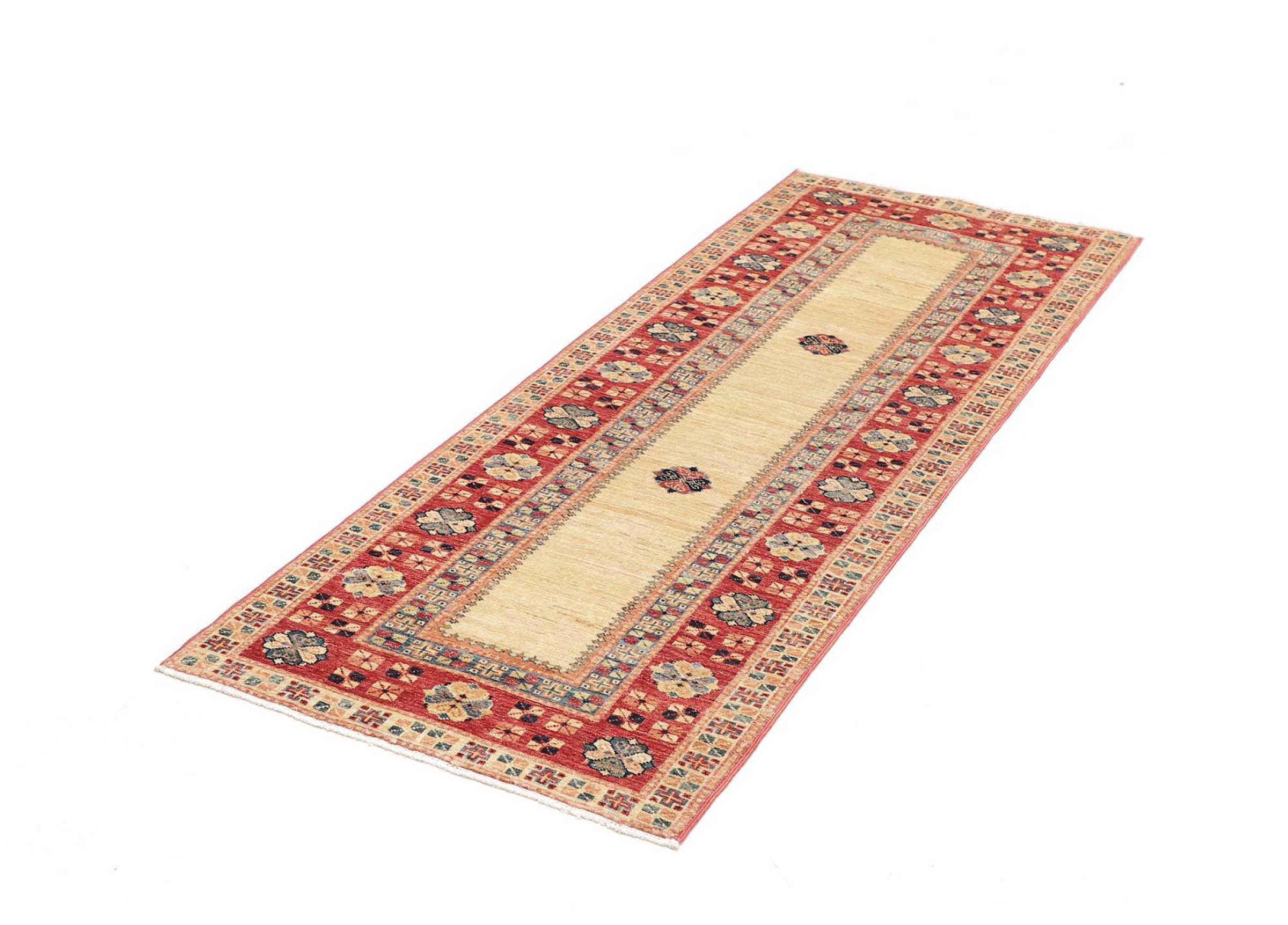 A large part of Pakistani rug production takes place in and around the cities of Lahore and Karachi. Many of the rug knotters of that time fled to Pakistan during the war with India and settled there. Today, especially hand-knotted Pakistan Bukhara rugs are well-known. Similar to the Afghan oriental rugs, Pakistani rugs are also made in dark colours and mostly have shades of red. Even the well-known elephant foot pattern (repeating octagonal pattern) can be found on a Pakistani.