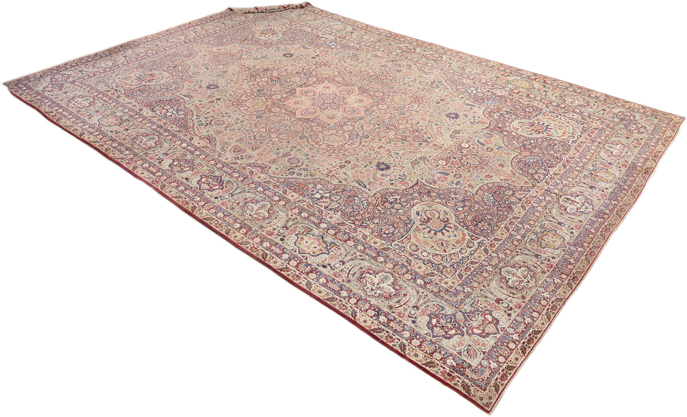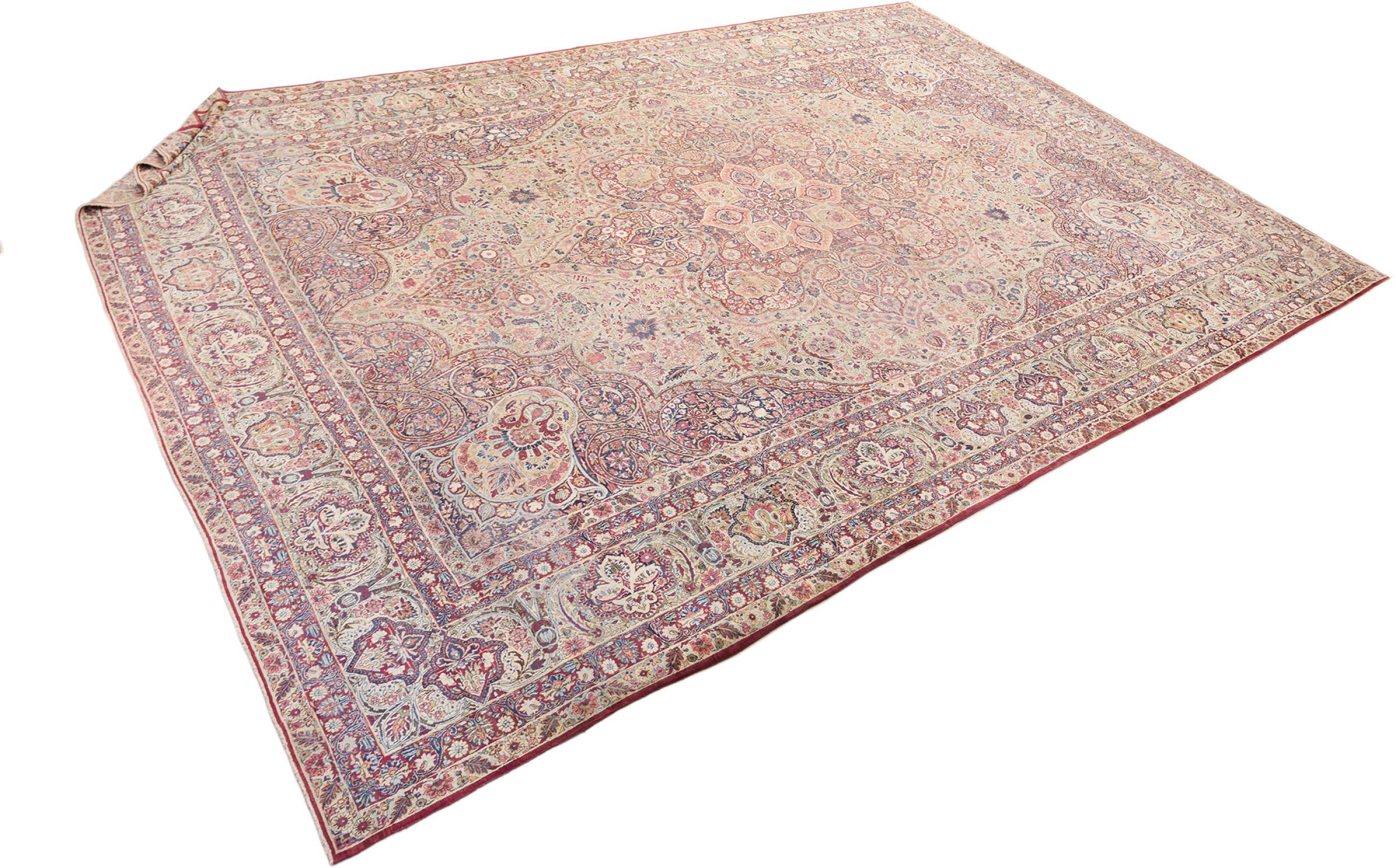 Rug ID: 316696003725289 Size: 26'7"x18'4" ft Thickness: ap. 0.39 in Knot density: 103 - 129 / square inch Manufacturing: Knotted by hand Pile: Handspun wool Warp: Cotton Condition / Conservation: Perfect Origin: Persia / Iran Age: Antique, over 80 years Weight: ap. 348 lb In stock: Unique - Only 1 in stock