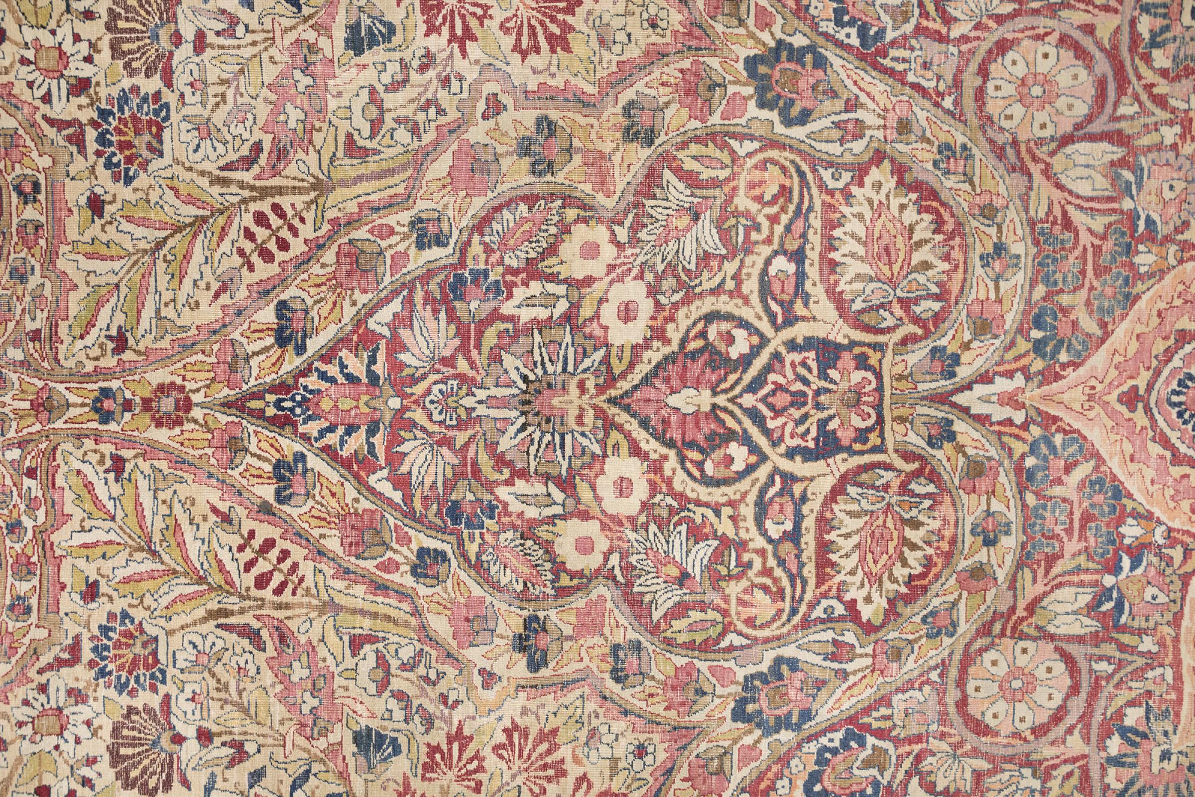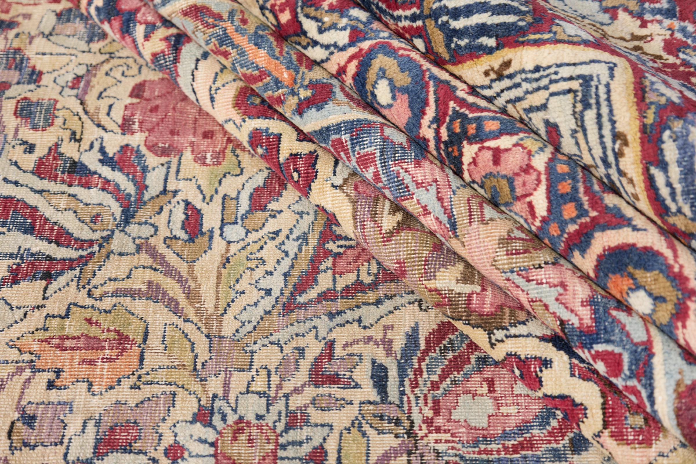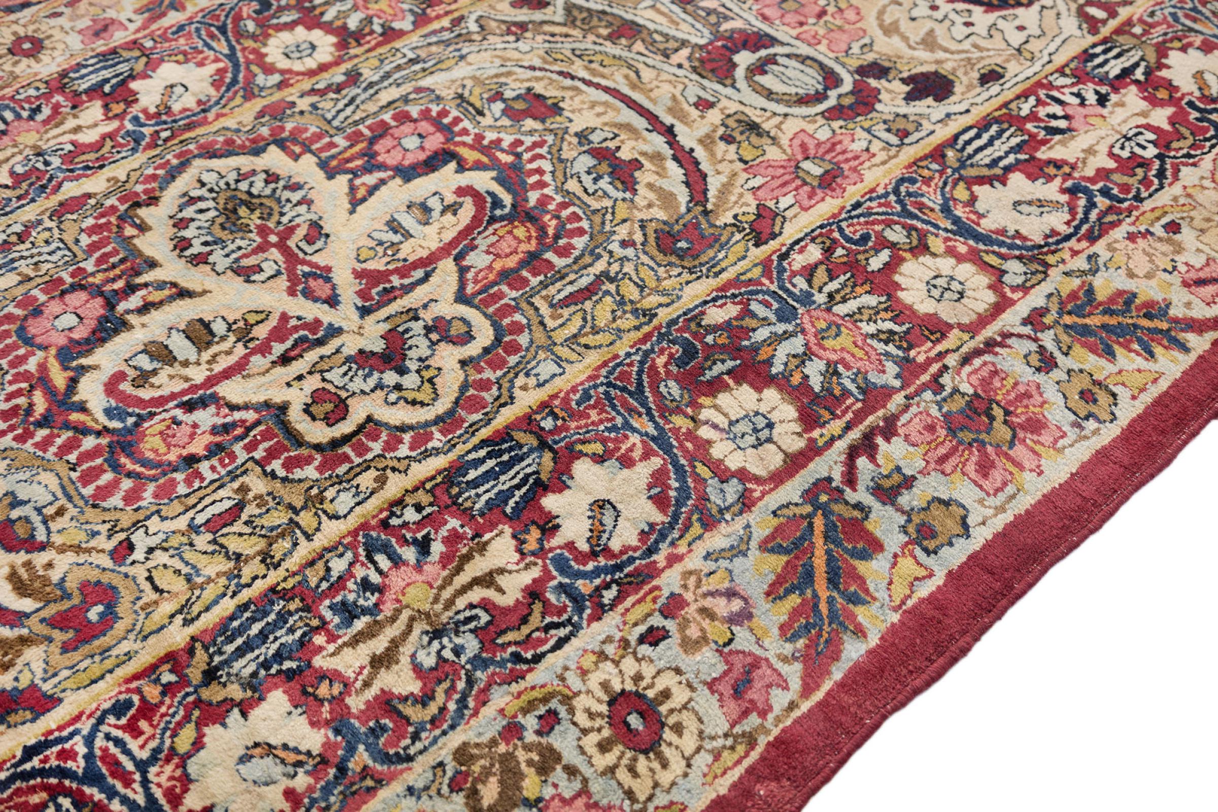 This antique Kerman rug is a masterpiece among Persian rugs. Especially older Kerman rugs have been crafted to a higher quality than those knotted today. This fact on its own makes antique Kerman rugs highly valuable. Thanks to the extraordinary quality this rug endures many more years to come.