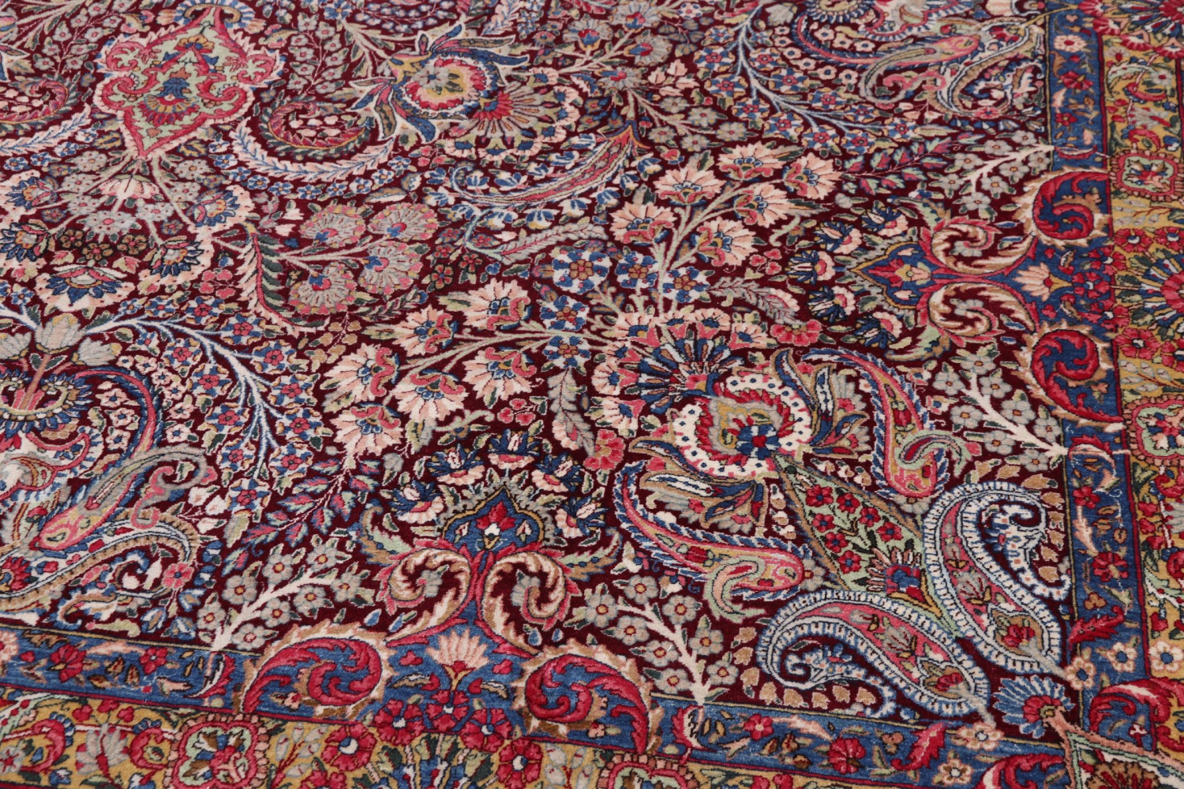 This antique Kerman rug is a masterpiece among Persian rugs. Especially older Kerman rugs have been crafted to a higher quality than those knotted today. This fact on its own makes antique Kerman rugs highly valuable. Thanks to the extraordinary quality this rug endures many more years to come.