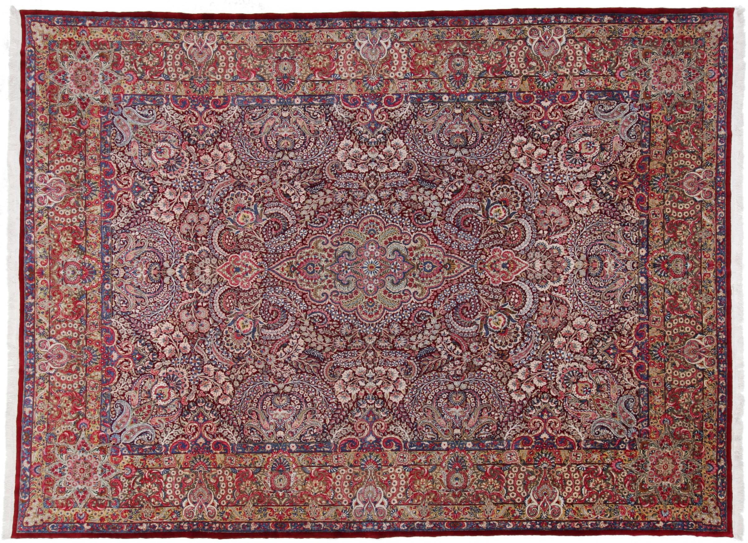 Rug ID: 35251004699275 Size: 13'8"x10'0" ft Thickness: ap. 0.31 in Knot density: 291 - 323 / square inch Manufacturing: Knotted by hand Pile: Handspun wool Warp: Cotton Condition / Conservation: Perfect Origin: Persia / Iran Age: Antique, over 80 years Weight: ap. 84 lb In stock: Unique - Only 1 in stock