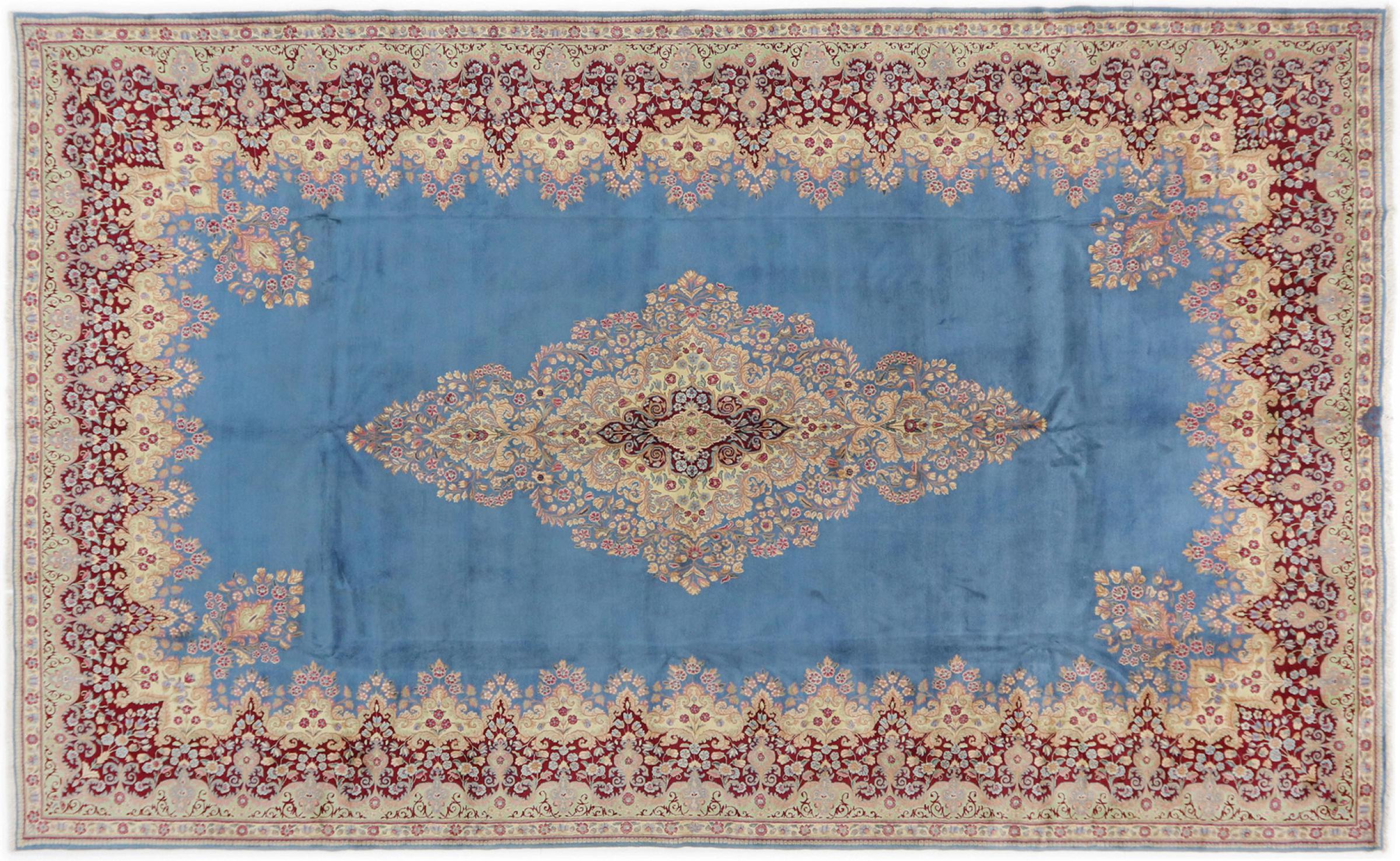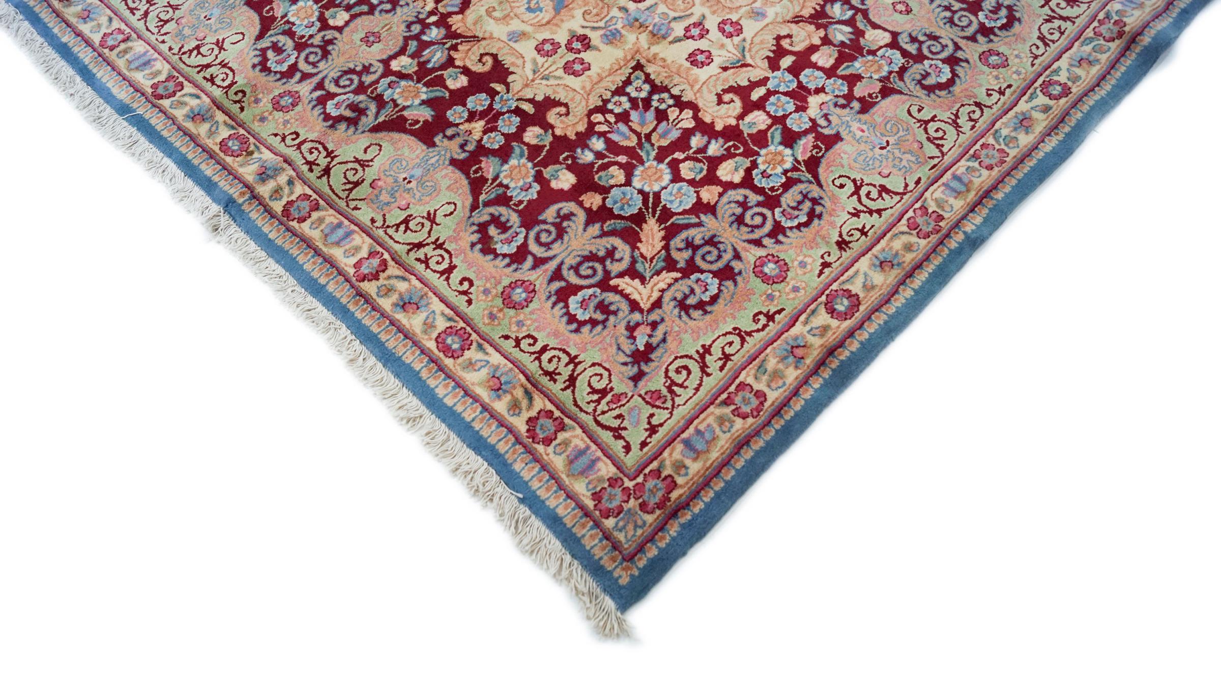 Once the hand-knotted carpets from the desert city of Kerman were considered the highest quality Persian carpets of all. Today, this reputation holds no longer true, but Kerman rugs are still undisputedly among the highest quality Oriental rugs. They are known for their rich floral ornaments, bold vegetable colors, and pompous medallions in the center. Kerman carpets have a very long tradition.