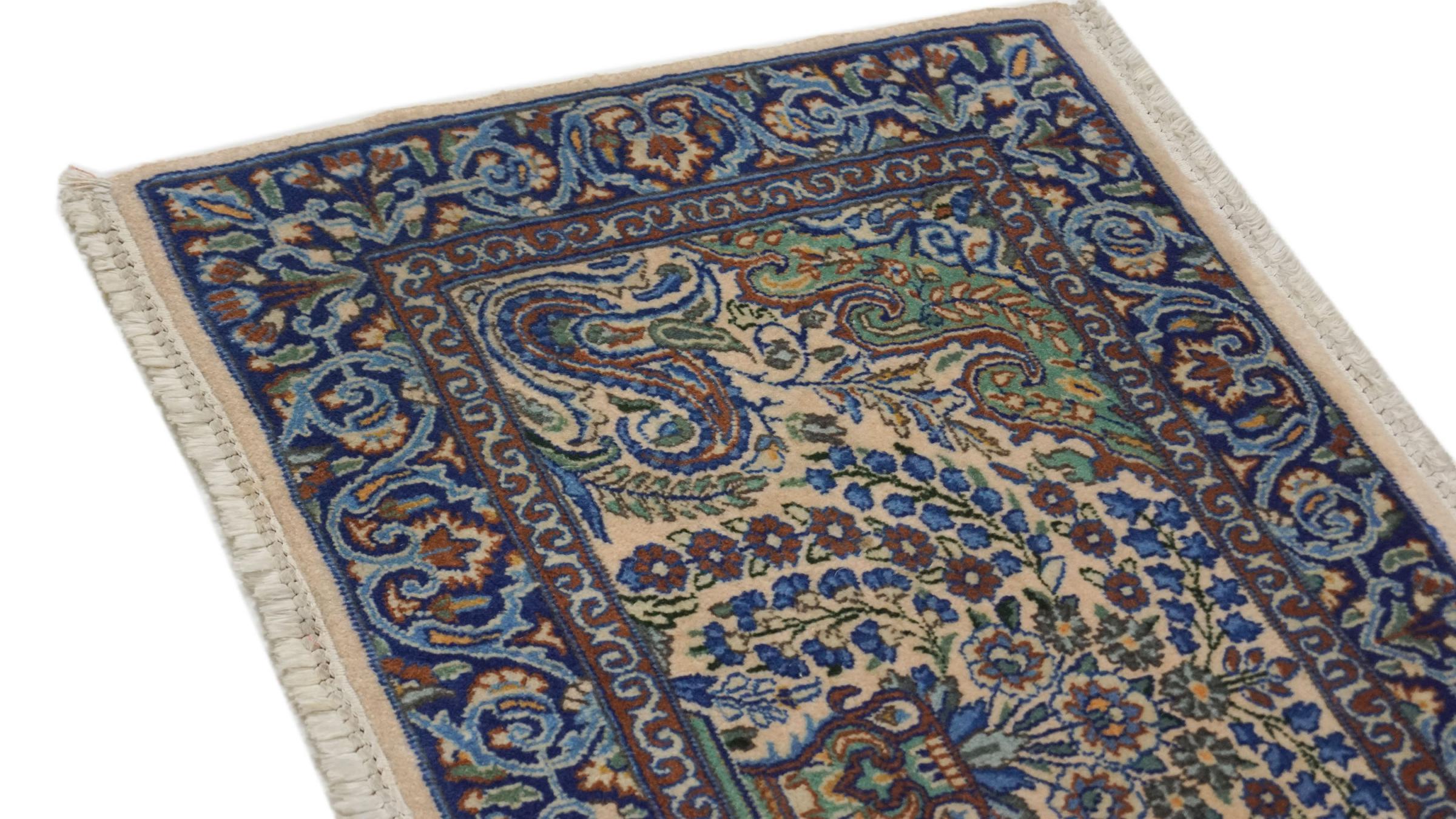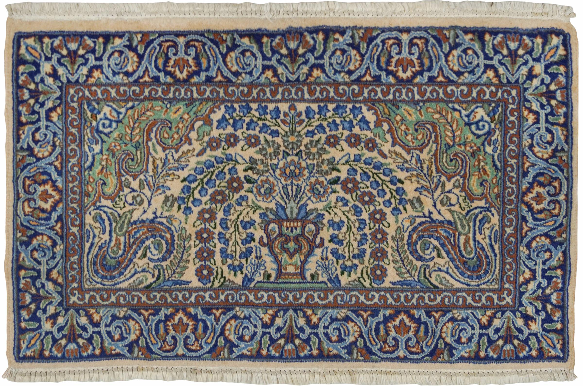 Rug ID: 316101006462782 Size: 2'11"x1'9" ft Thickness: ap. 0.39 in Knot density: 261 - 290 / square inch Manufacturing: Knotted by hand Pile: Handspun wool Warp: Cotton Condition / Conservation: Perfect Origin: Persia / Iran Age: Antique, over 80 years Weight: ap. 4 lb In stock: Unique - Only 1 in stock