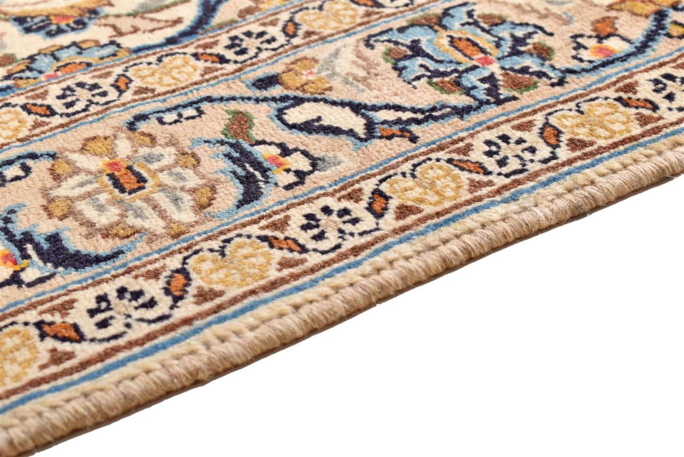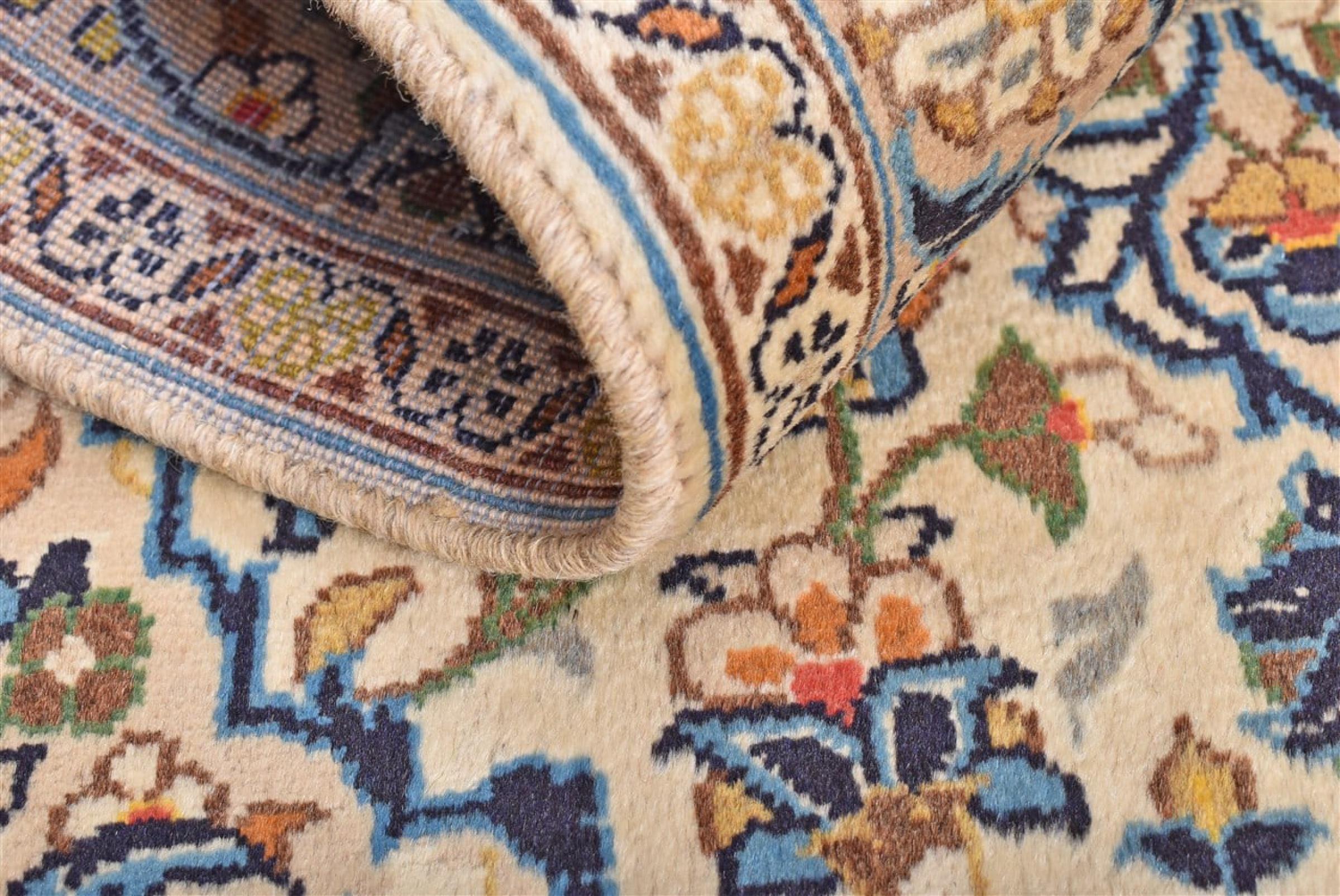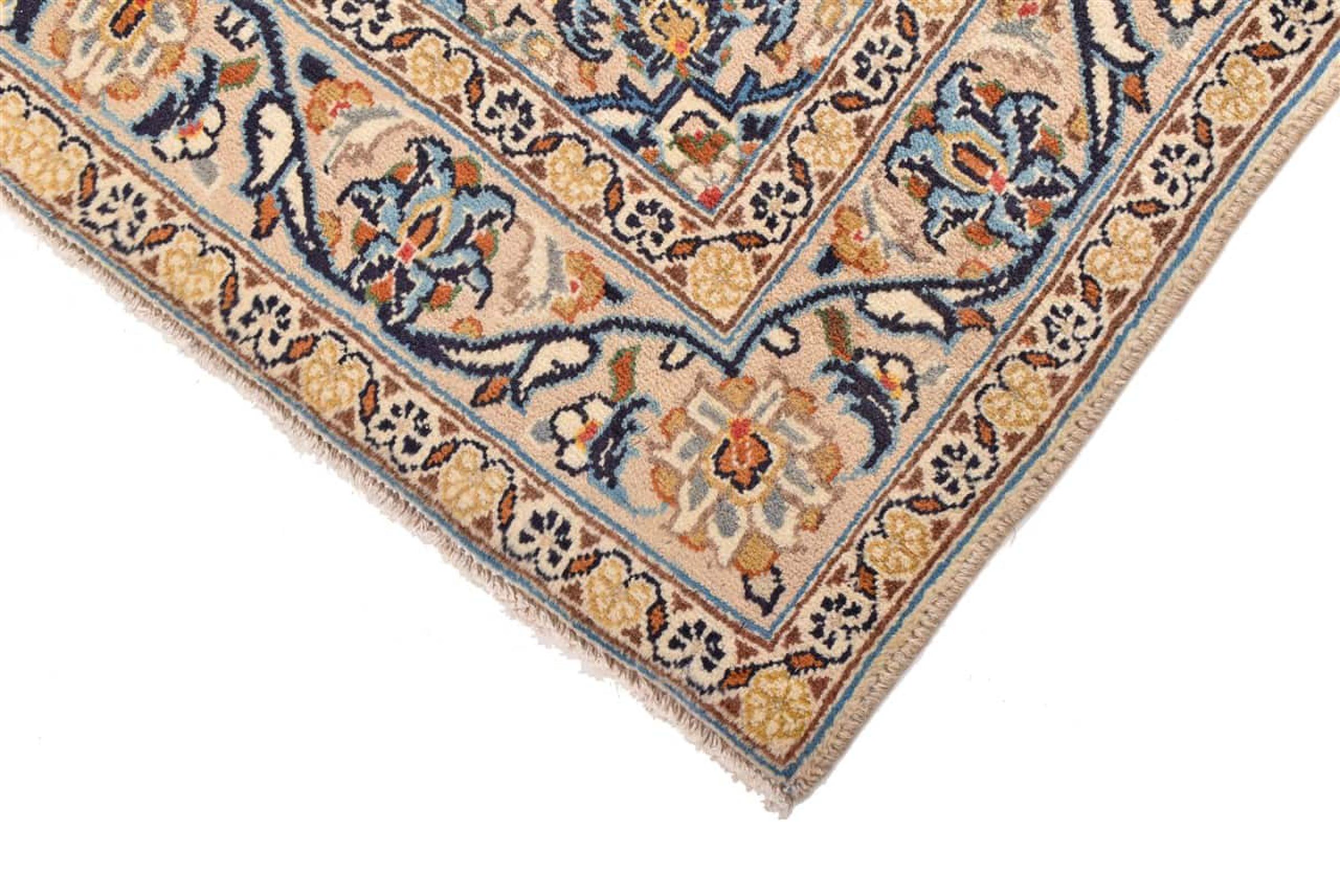 This rug originates from Keshan also called Kashan in Persia. It counts to the most popular Persian rugs. This Keshan comes in a typical design for its type. It has been crafted by hand from fine sheep wool and natural dyes. The ornaments embody a centuries old design pattern, which is still highly popular today.