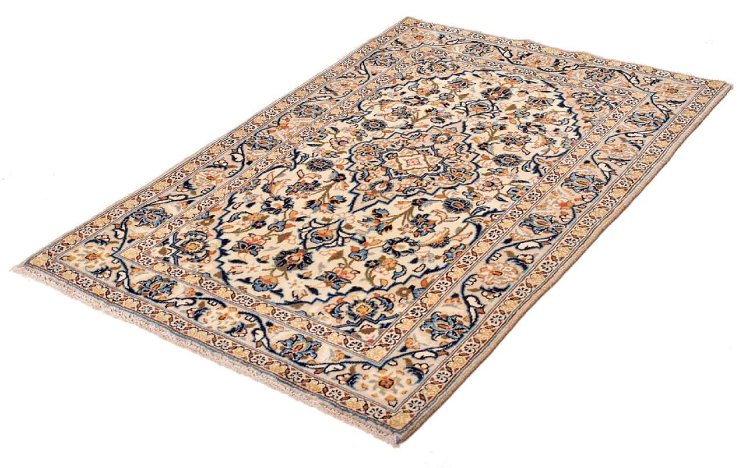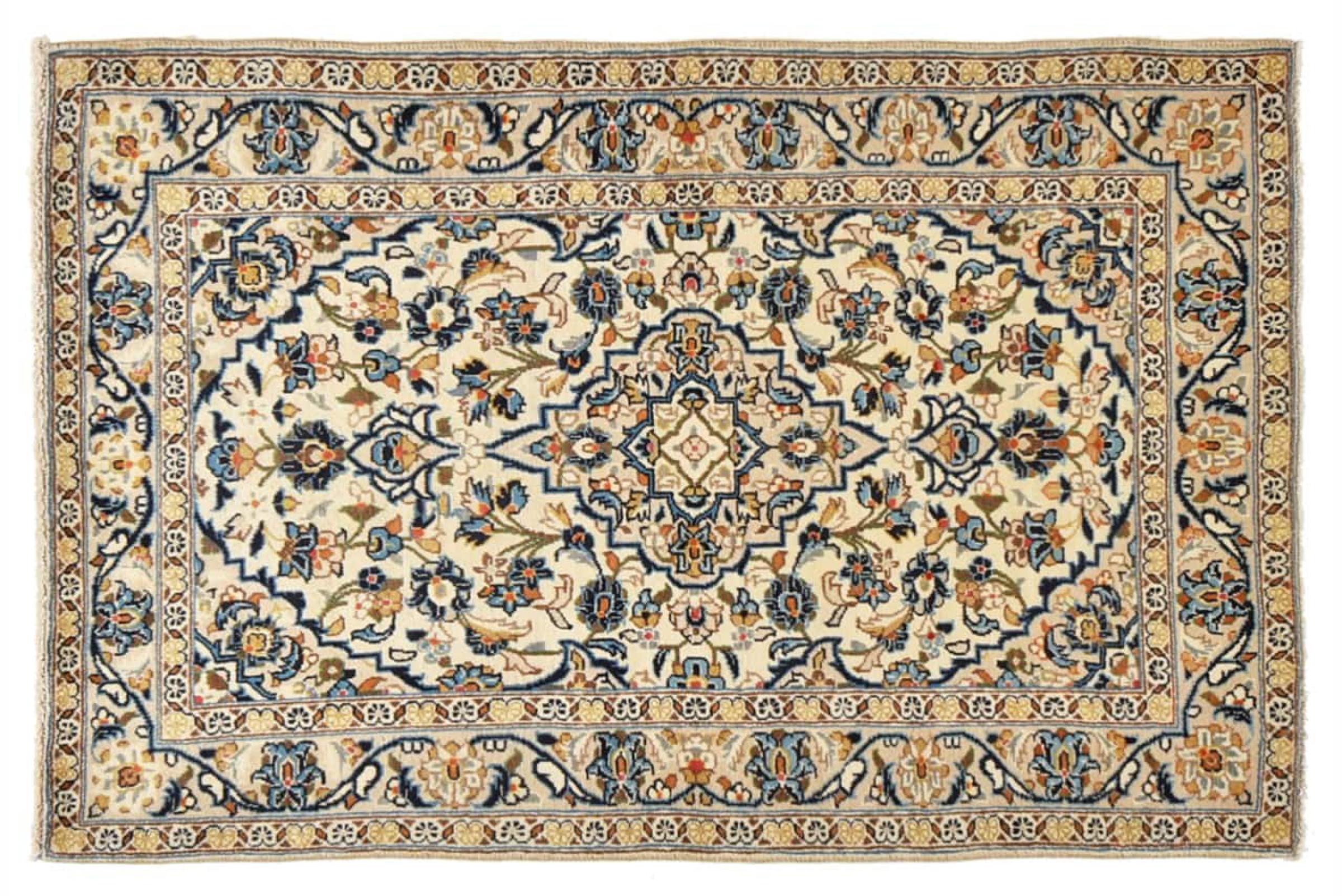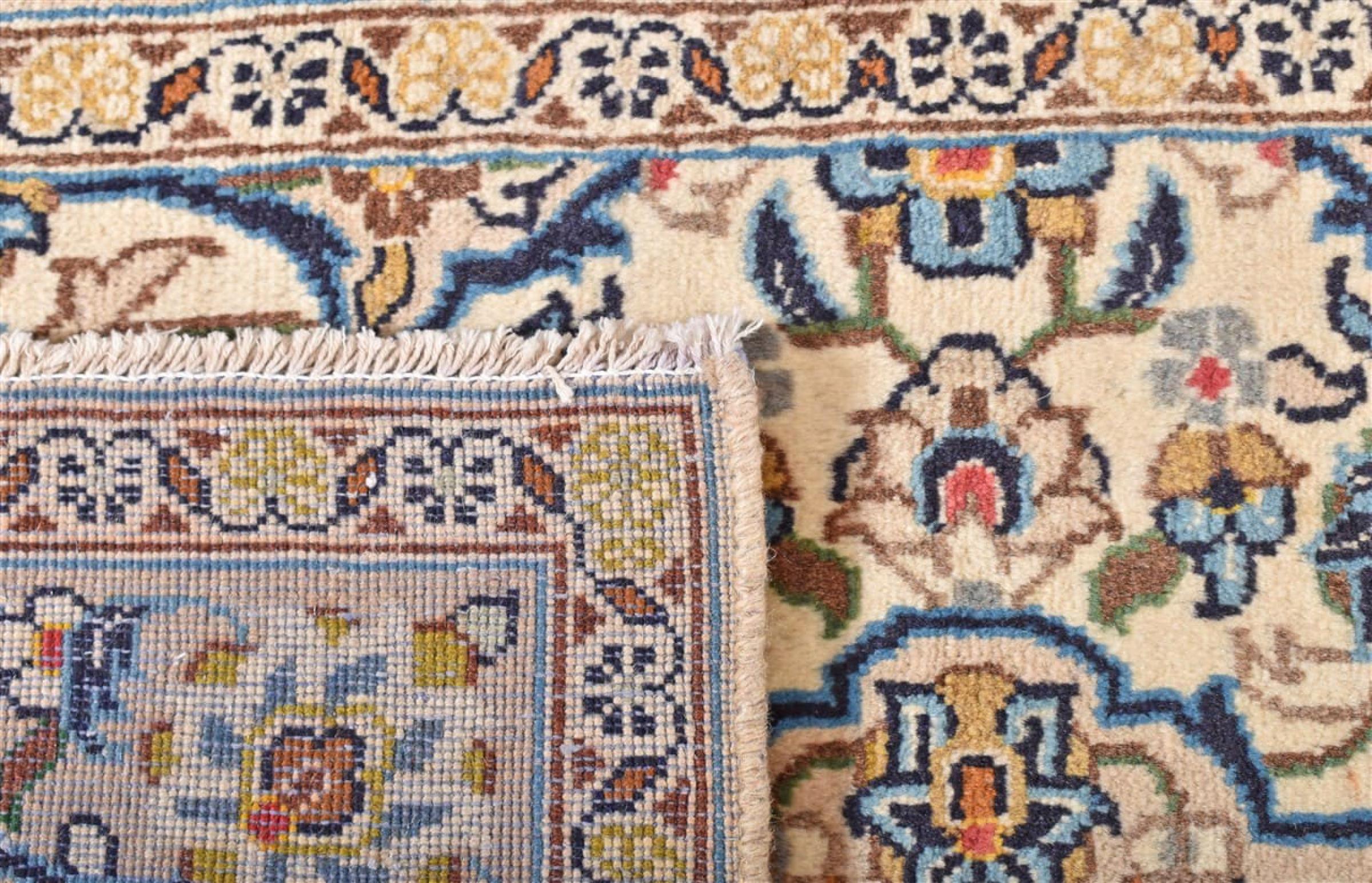 This rug originates from Keshan also called Kashan in Persia. It counts to the most popular Persian rugs. This Keshan comes in a typical design for its type. It has been crafted by hand from fine sheep wool and natural dyes. The ornaments embody a centuries old design pattern, which is still highly popular today.