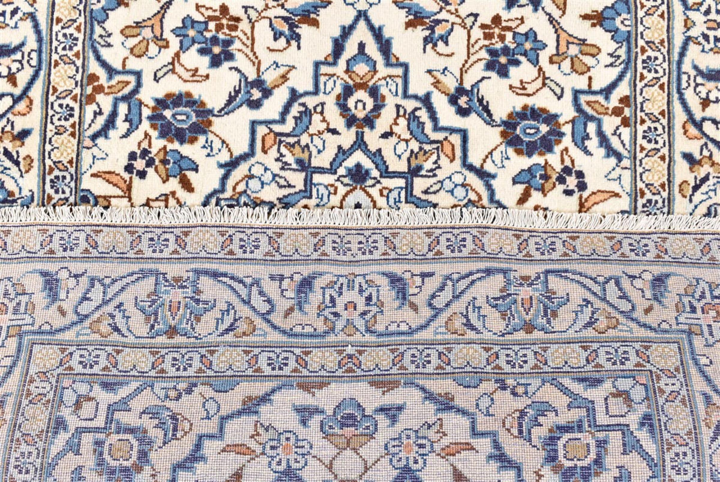 This rug originates from Keshan also called Kashan in Persia. It counts to the most popular Persian rugs. This Keshan comes in a typical design for its type. It has been crafted by hand from fine sheep wool and natural dyes. The ornaments embody a centuries old design pattern, which is still highly popular today.