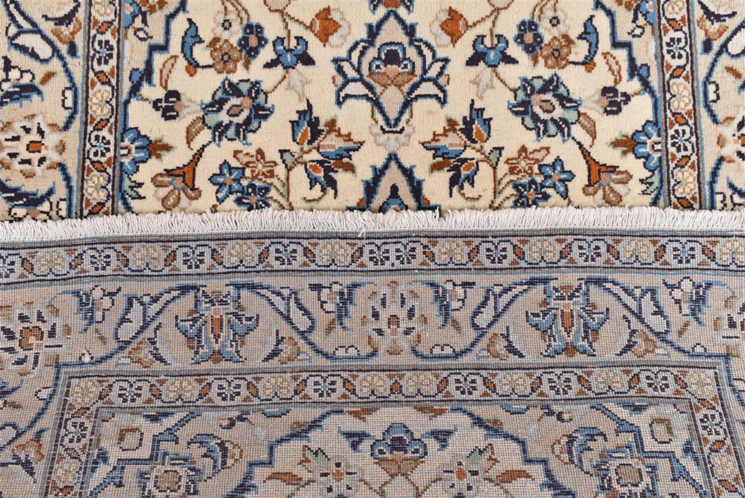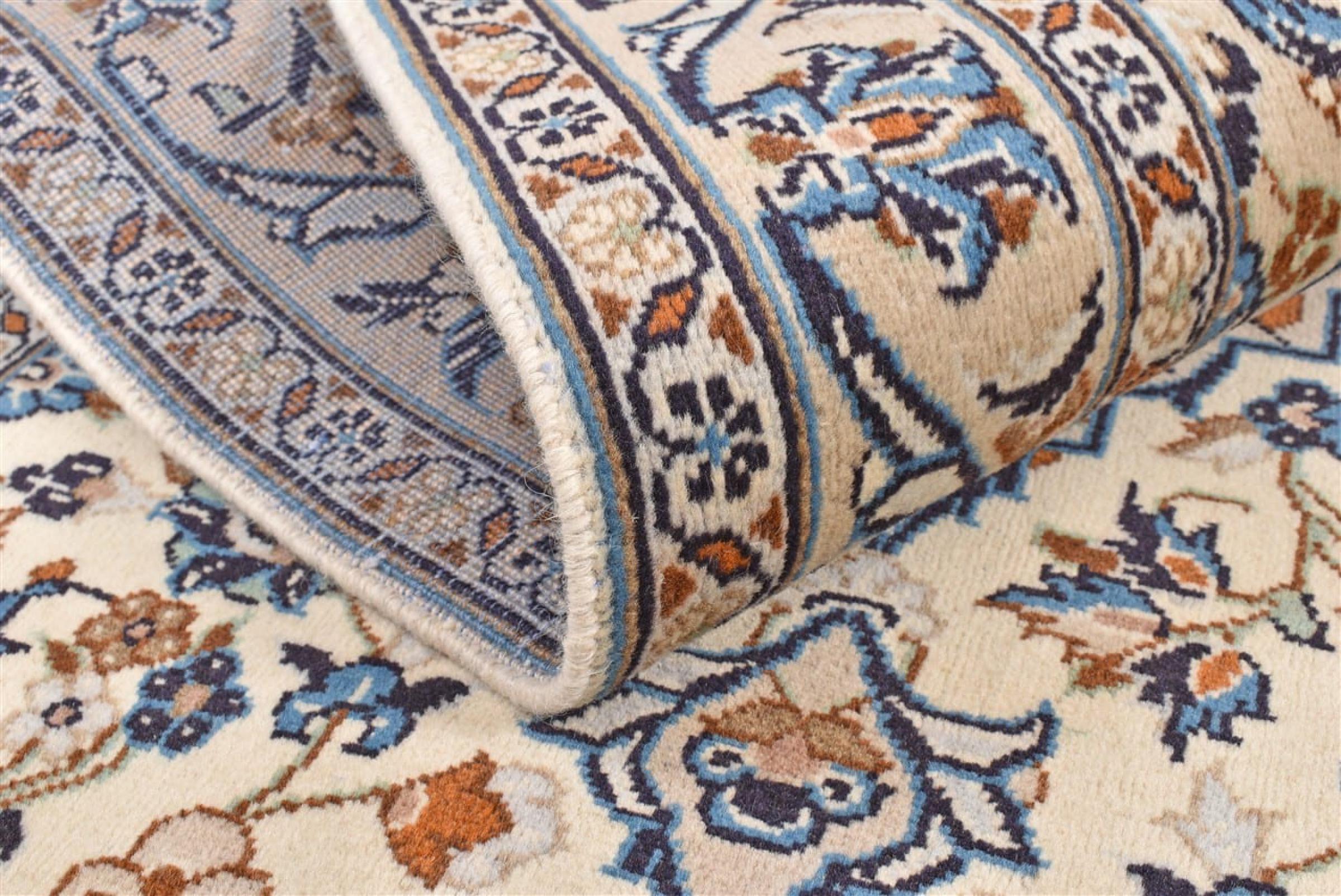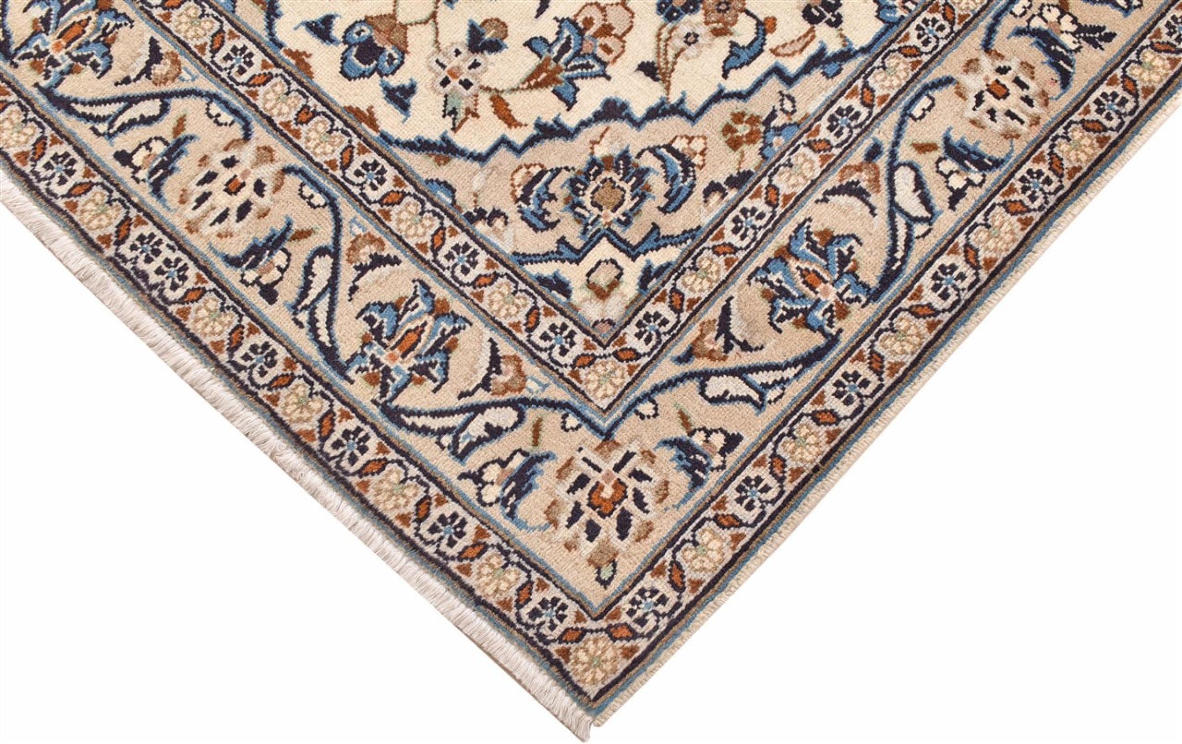 This rug originates from Keshan also called Kashan in Persia. It counts to the most popular Persian rugs. This Keshan comes in a typical design for its type. It has been crafted by hand from fine sheep wool and natural dyes. The ornaments embody a centuries old design pattern, which is still highly popular today.