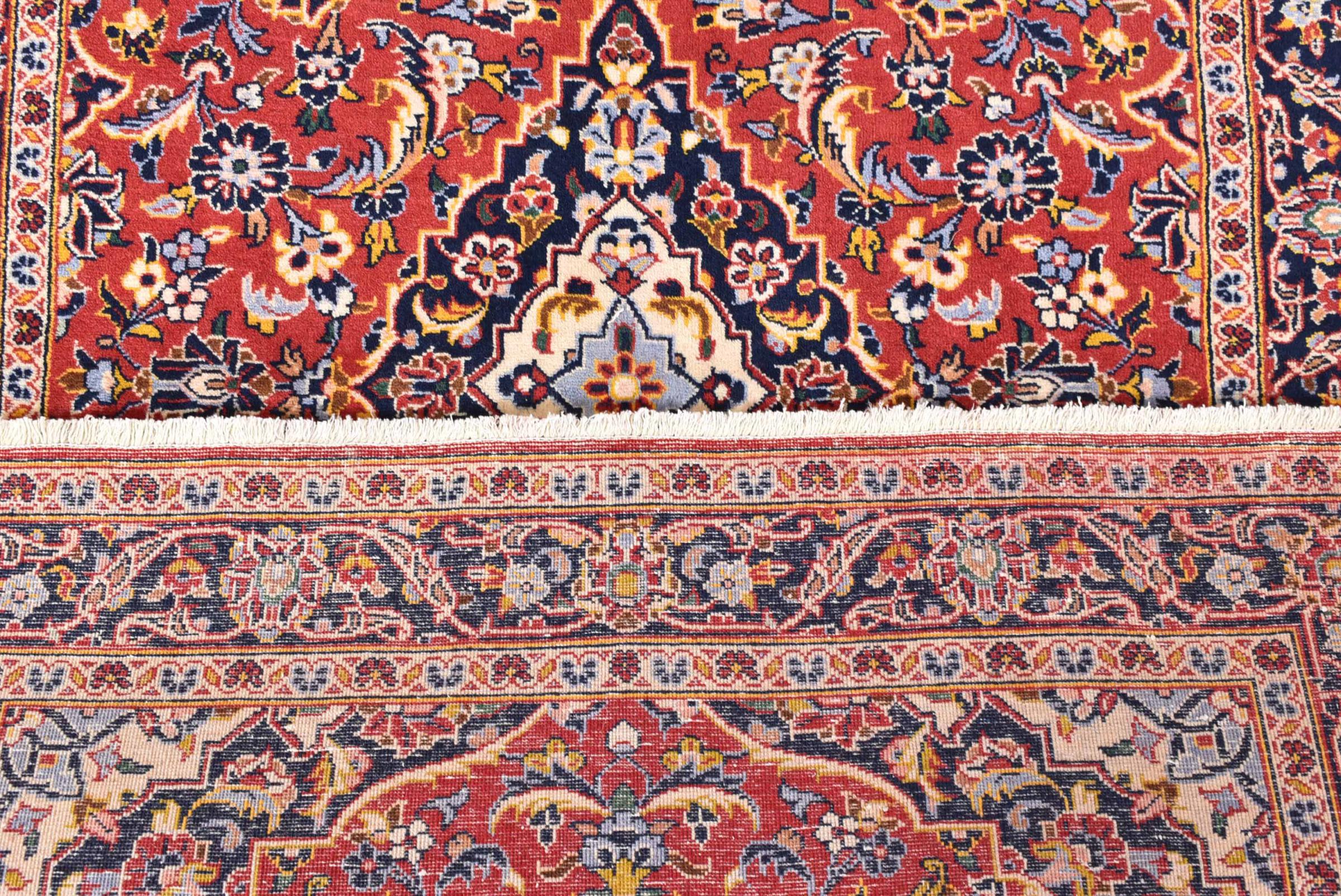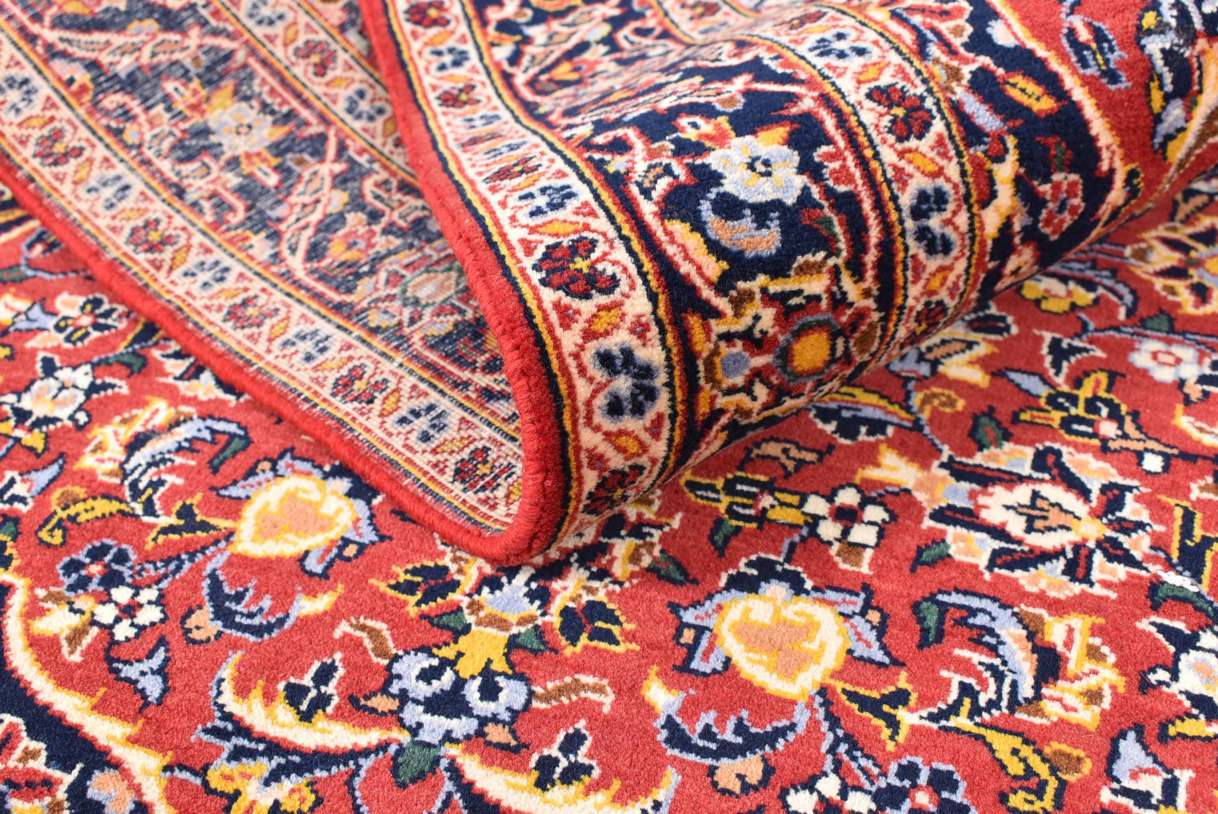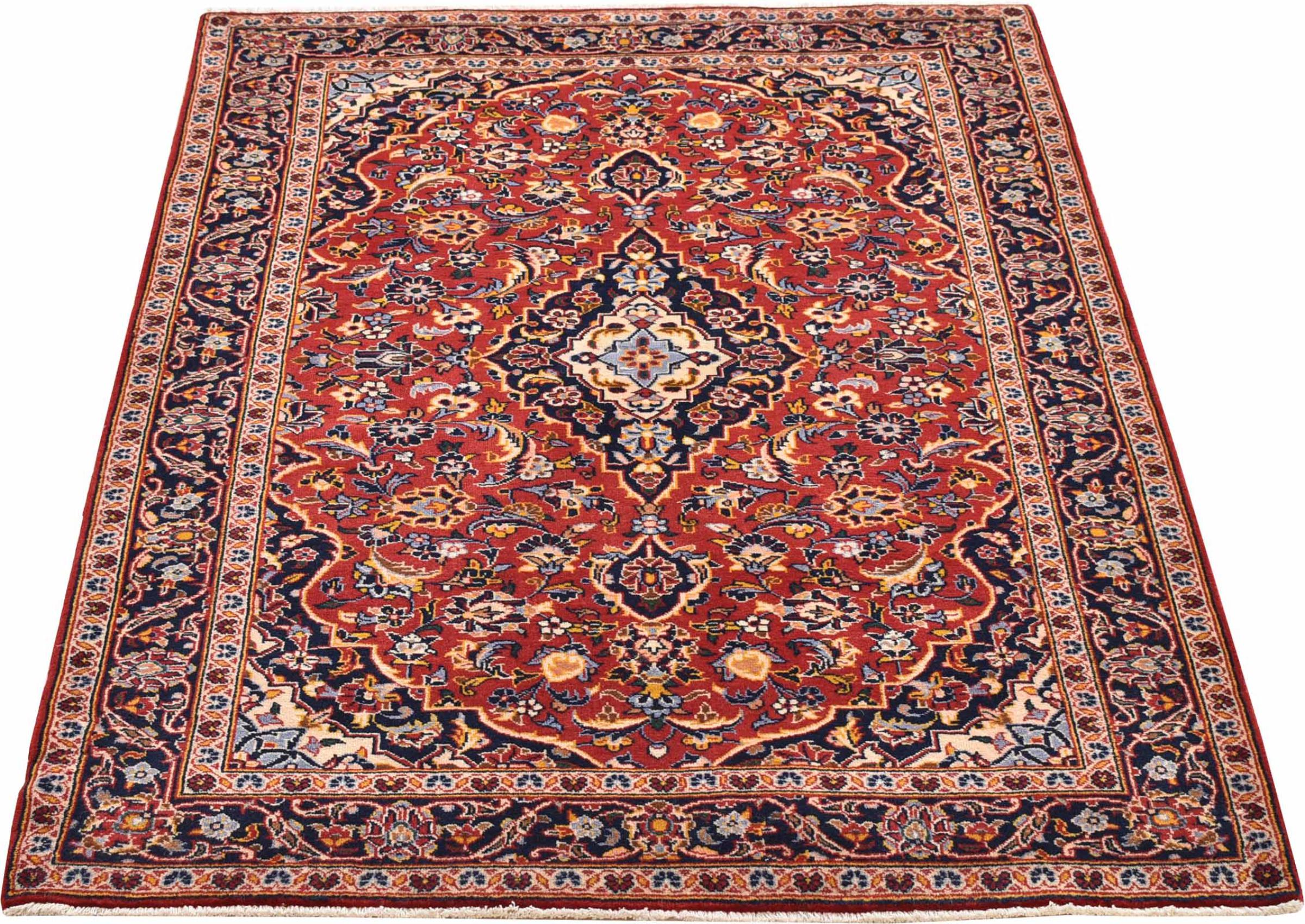 This rug originates from Keshan also called Kashan in Persia. It counts to the most popular Persian rugs. This Keshan comes in a typical design for its type. It has been crafted by hand from fine sheep wool and natural dyes. The ornaments embody a centuries old design pattern, which is still highly popular today.