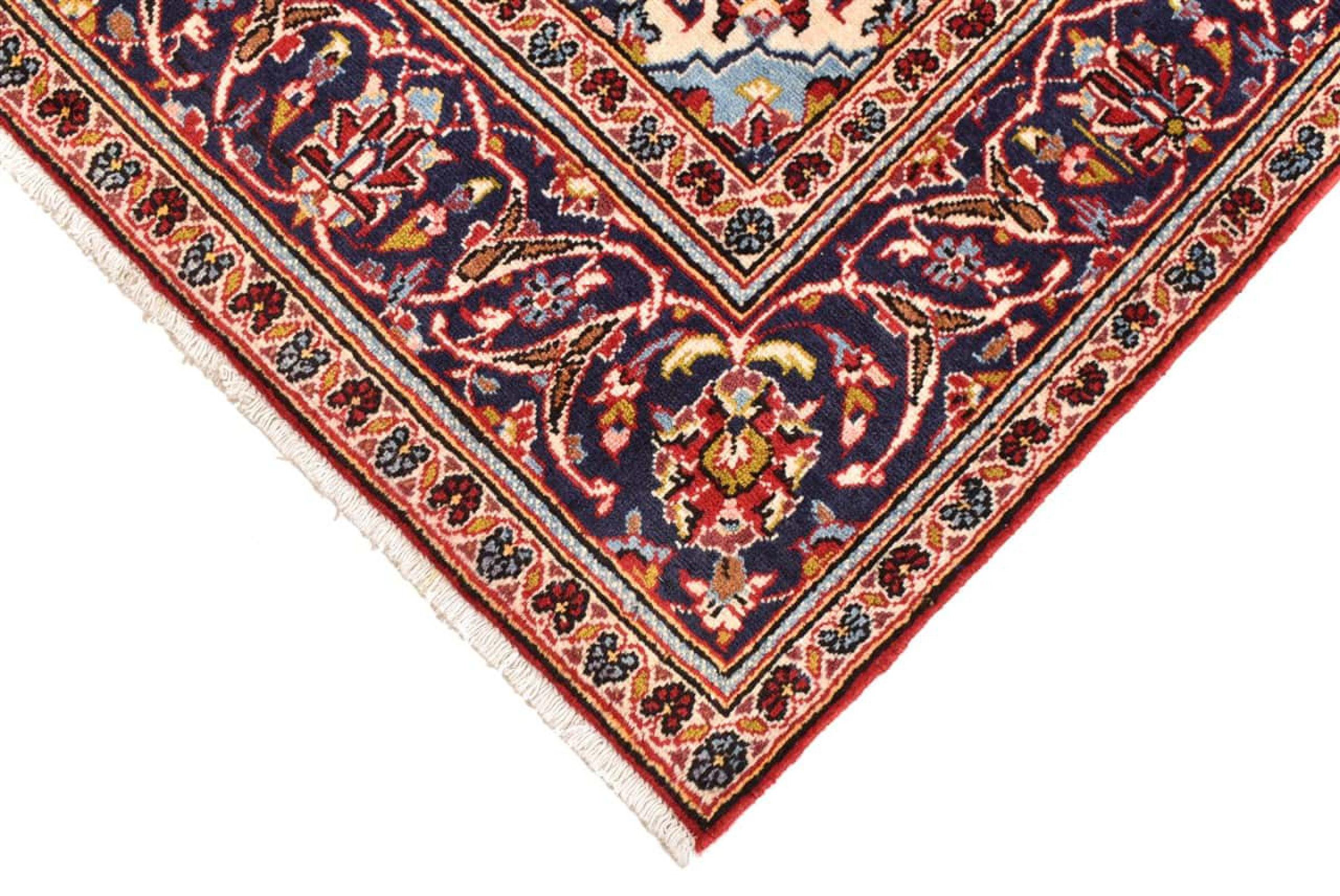This rug originates from Keshan also called Kashan in Persia. It counts to the most popular Persian rugs. This Keshan comes in a typical design for its type. It has been crafted by hand from fine sheep wool and natural dyes. The ornaments embody a centuries old design pattern, which is still highly popular today.