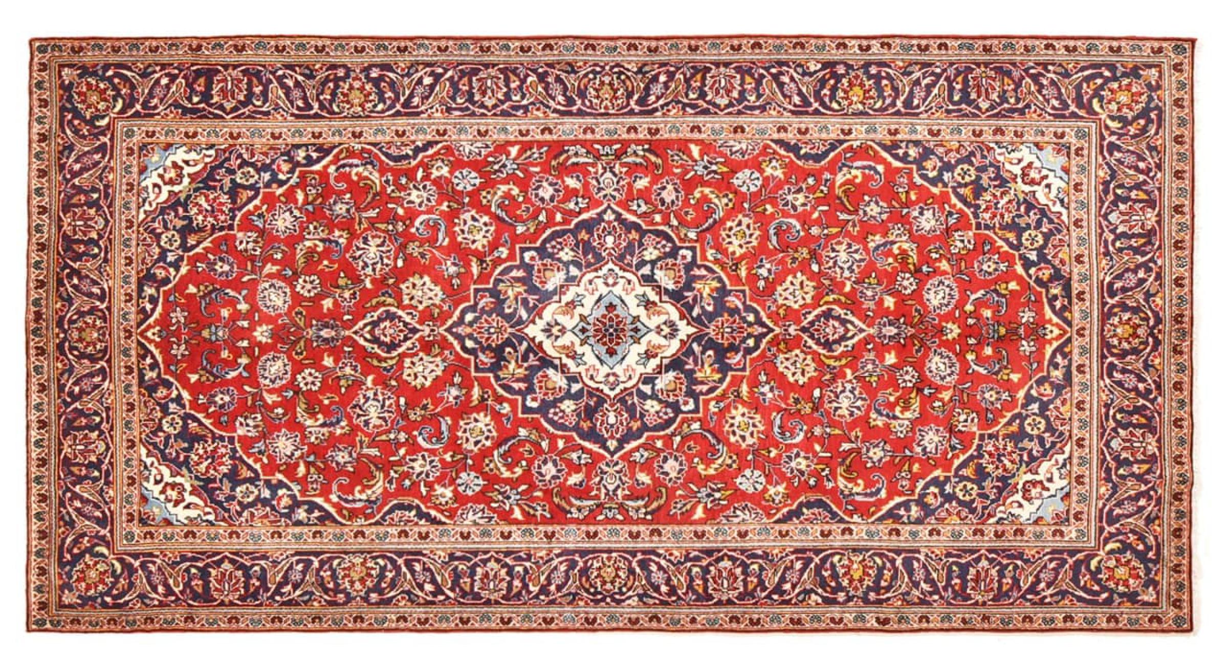 Hand-knotted rugs from the city of Kashan (Keshan) are among the most popular worldwide. These Persian carpets not only have a famous design, but their quality is indisputably one of the best. In the Persian Empire, the city was considered one of the most important trading centers along the famous Silk Road. Kashan rugs usually have a central medallion, floral ornaments and a red background. They are made of high quality sheep wool and natural dyes.