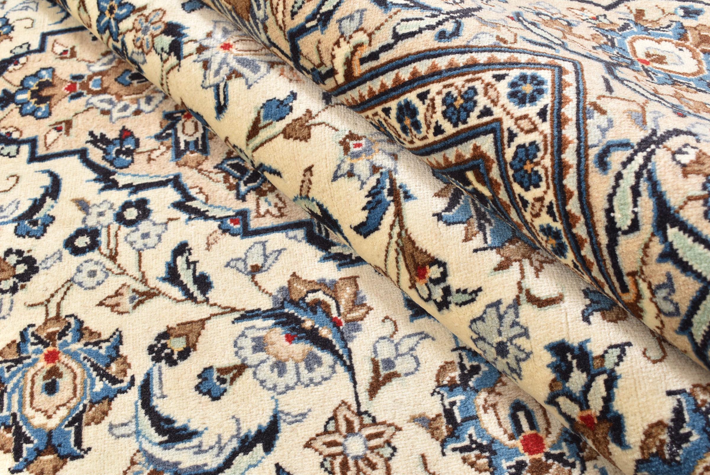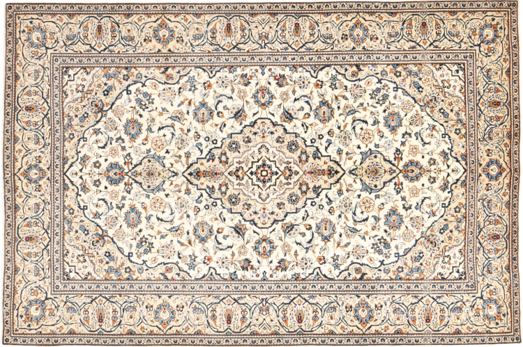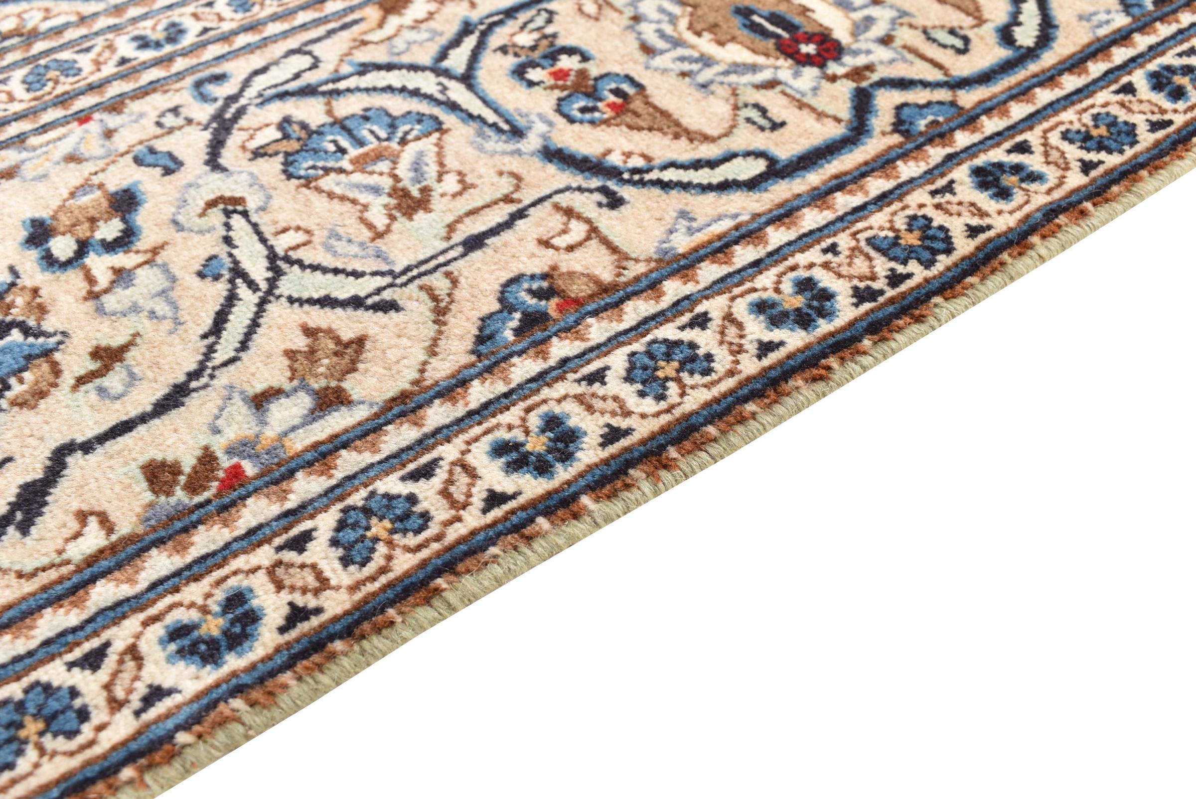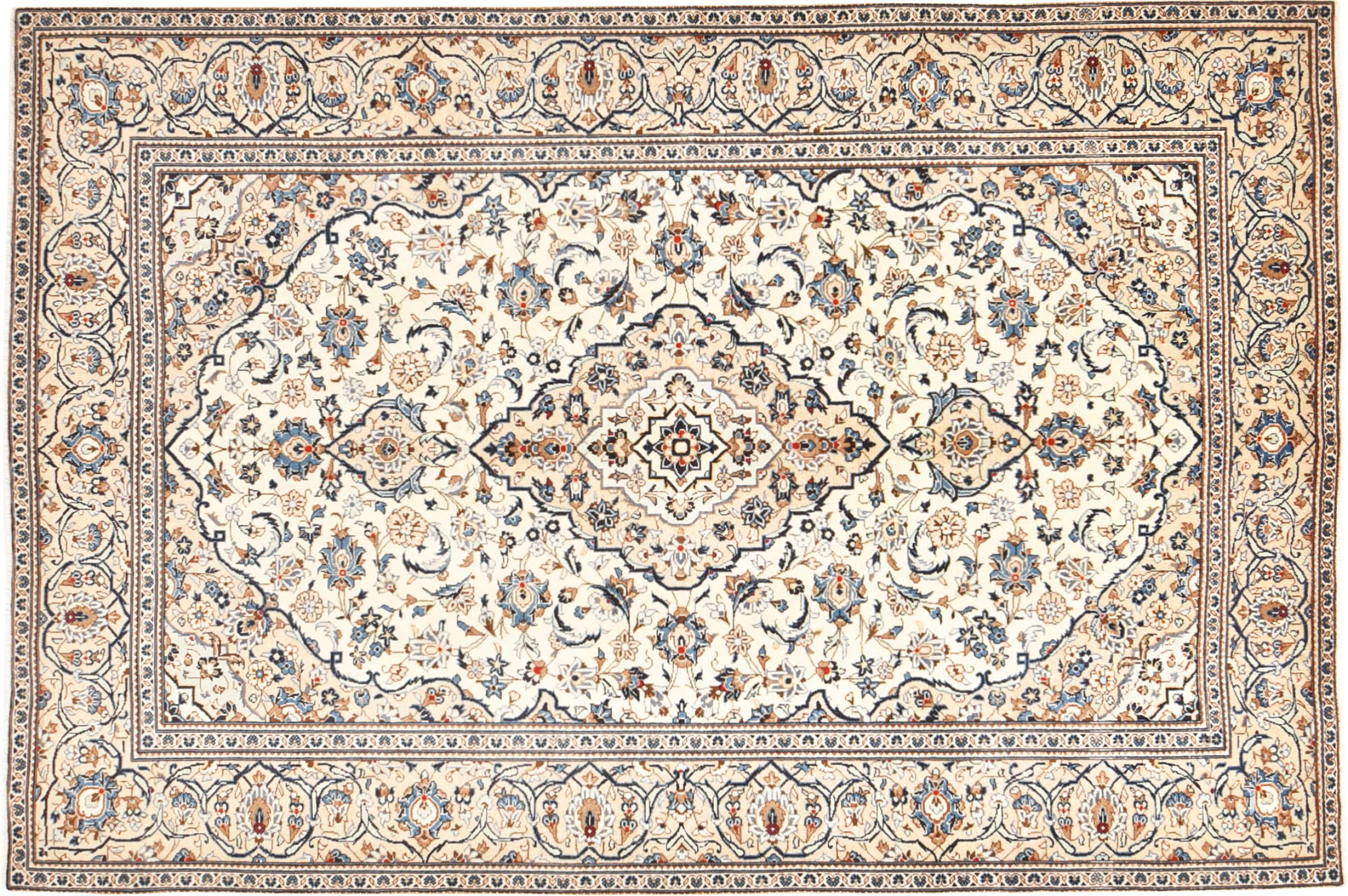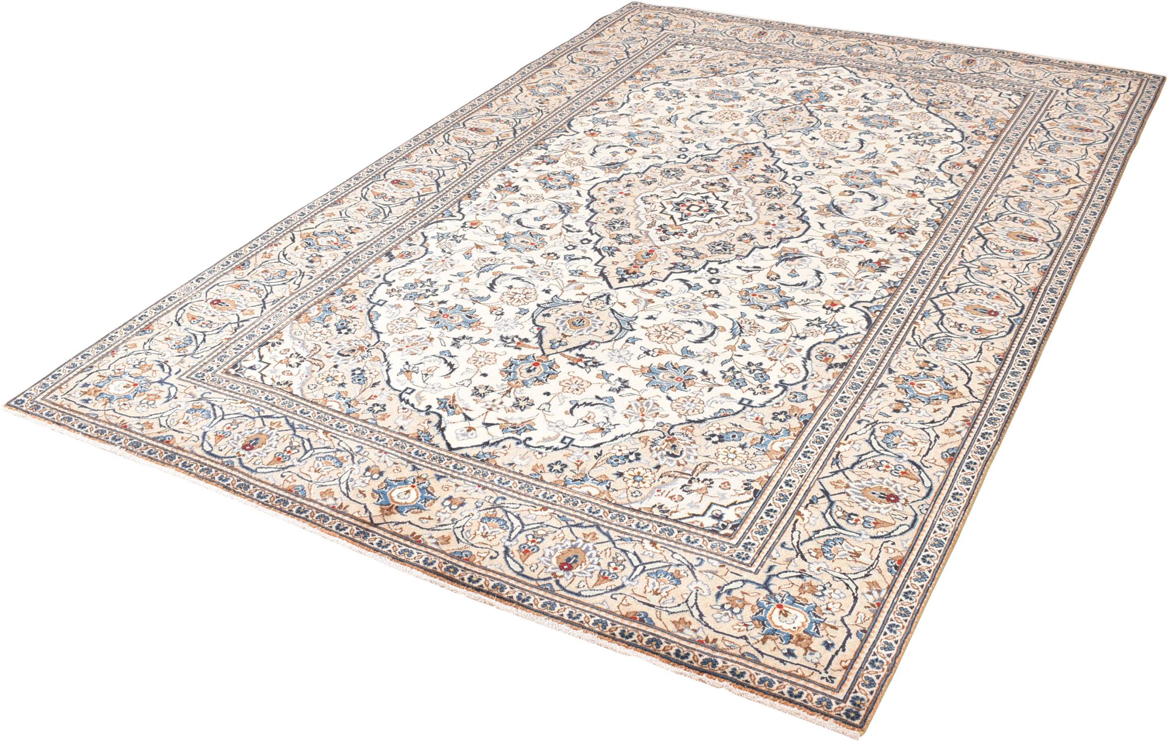 This rug originates from Keshan also called Kashan in Persia. It counts to the most popular Persian rugs. This Keshan comes in a typical design for its type. It has been crafted by hand from fine sheep wool and natural dyes. The ornaments embody a centuries old design pattern, which is still highly popular today.
