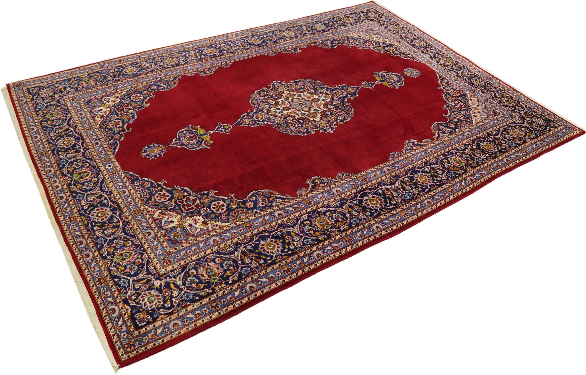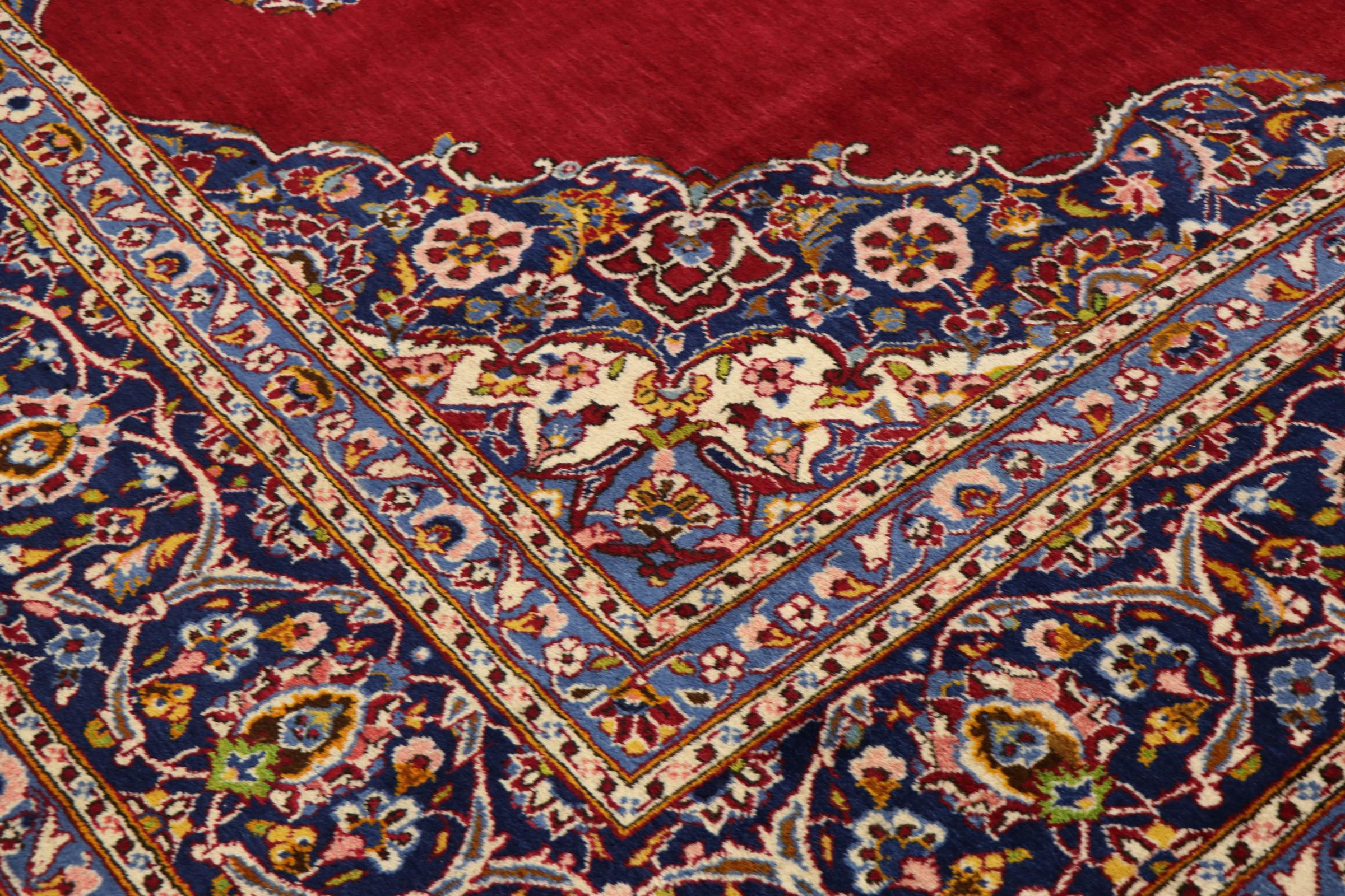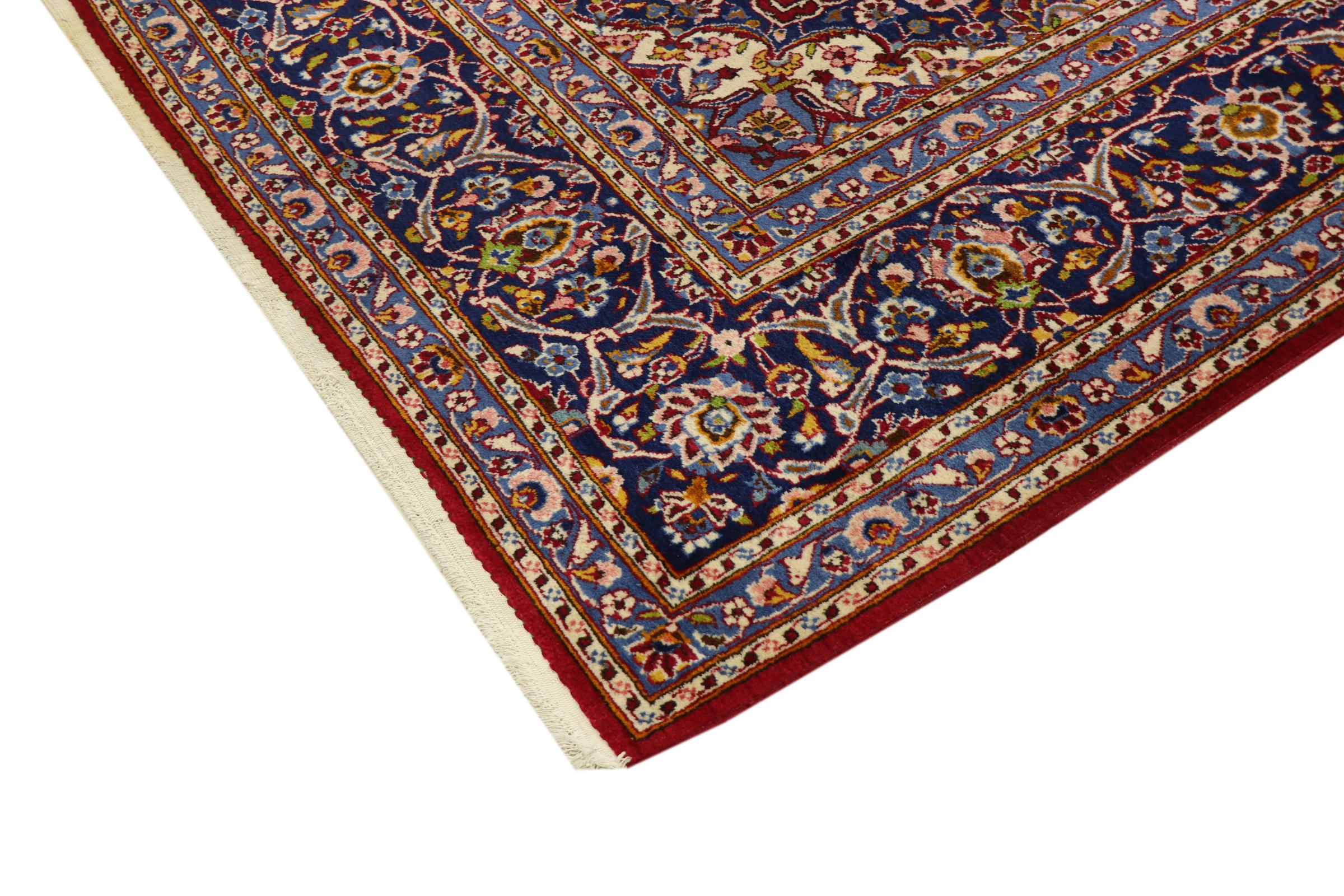 This rug originates from Keshan also called Kashan in Persia. It counts to the most popular Persian rugs. This Keshan comes in a typical design for its type. It has been crafted by hand from fine sheep wool and natural dyes. The ornaments embody a centuries old design pattern, which is still highly popular today.