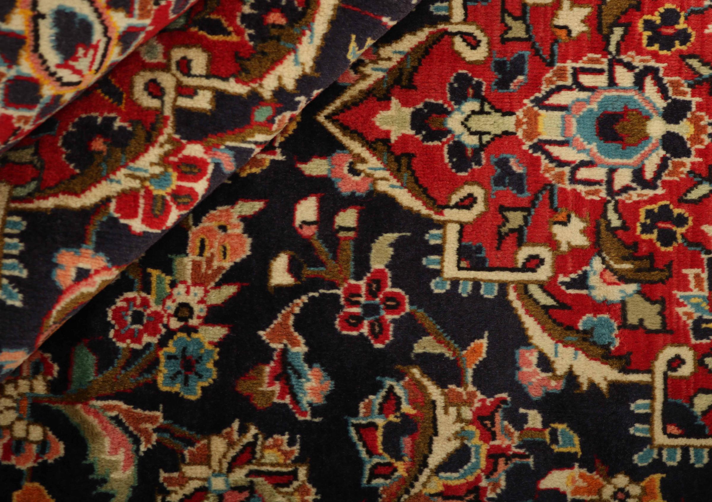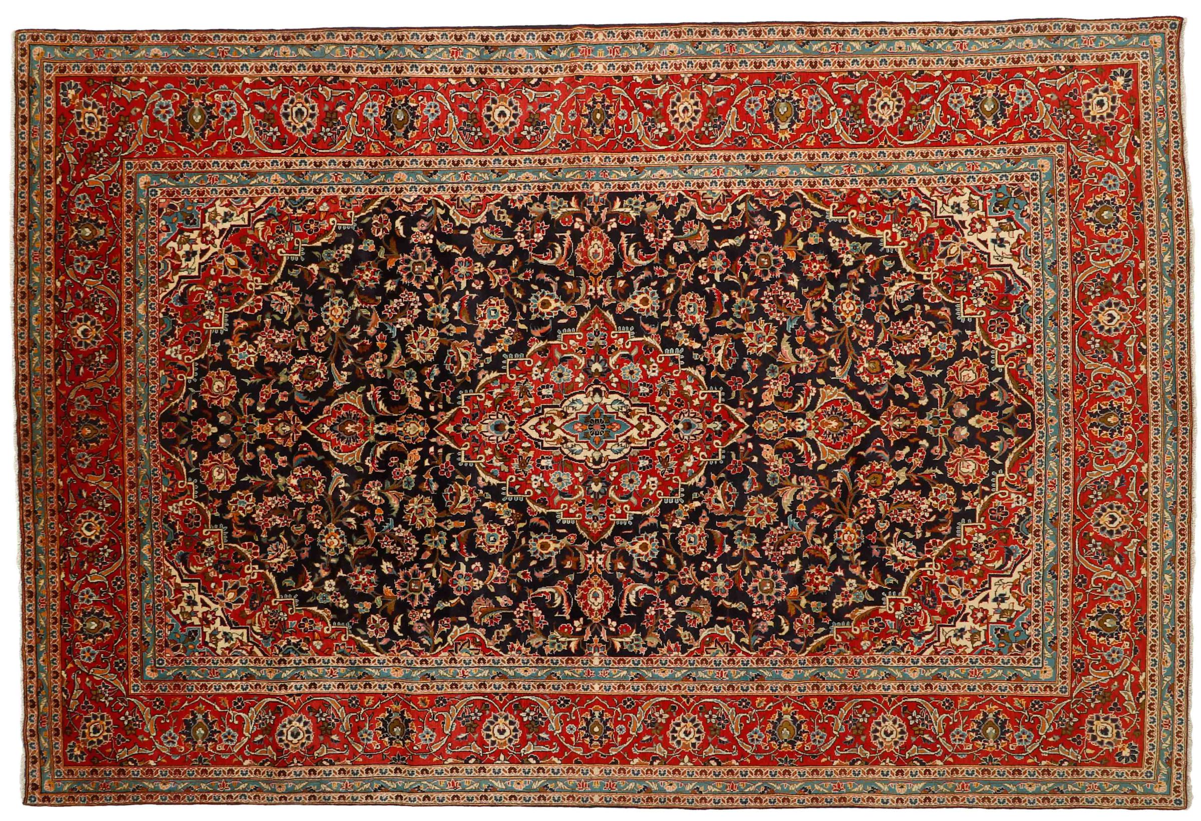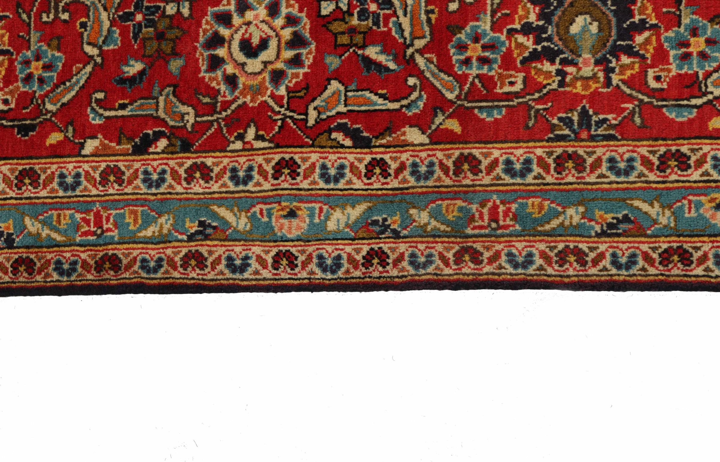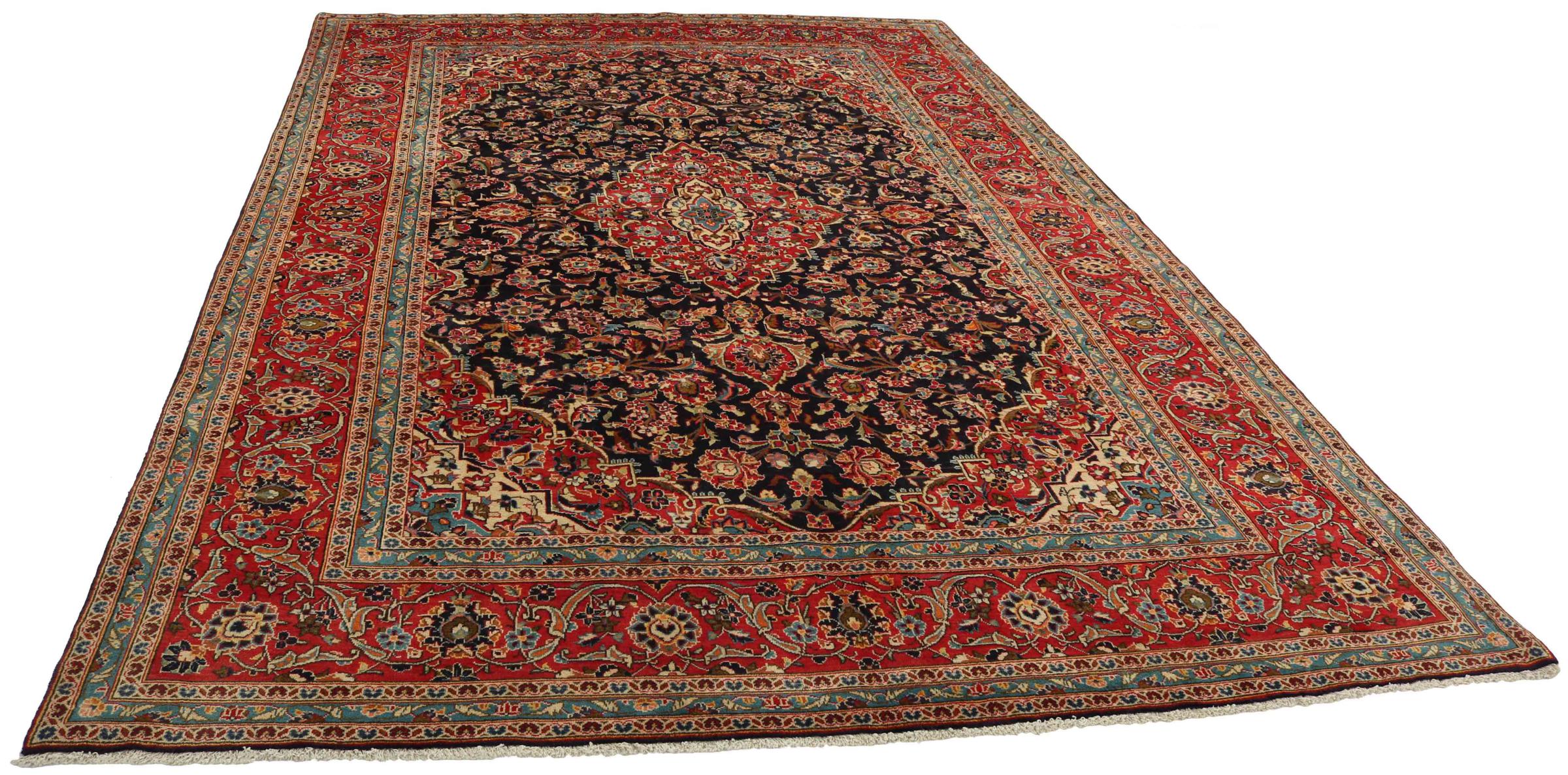 This rug originates from Keshan also called Kashan in Persia. It counts to the most popular Persian rugs. This Keshan comes in a typical design for its type. It has been crafted by hand from fine sheep wool and natural dyes. The ornaments embody a centuries old design pattern, which is still highly popular today.