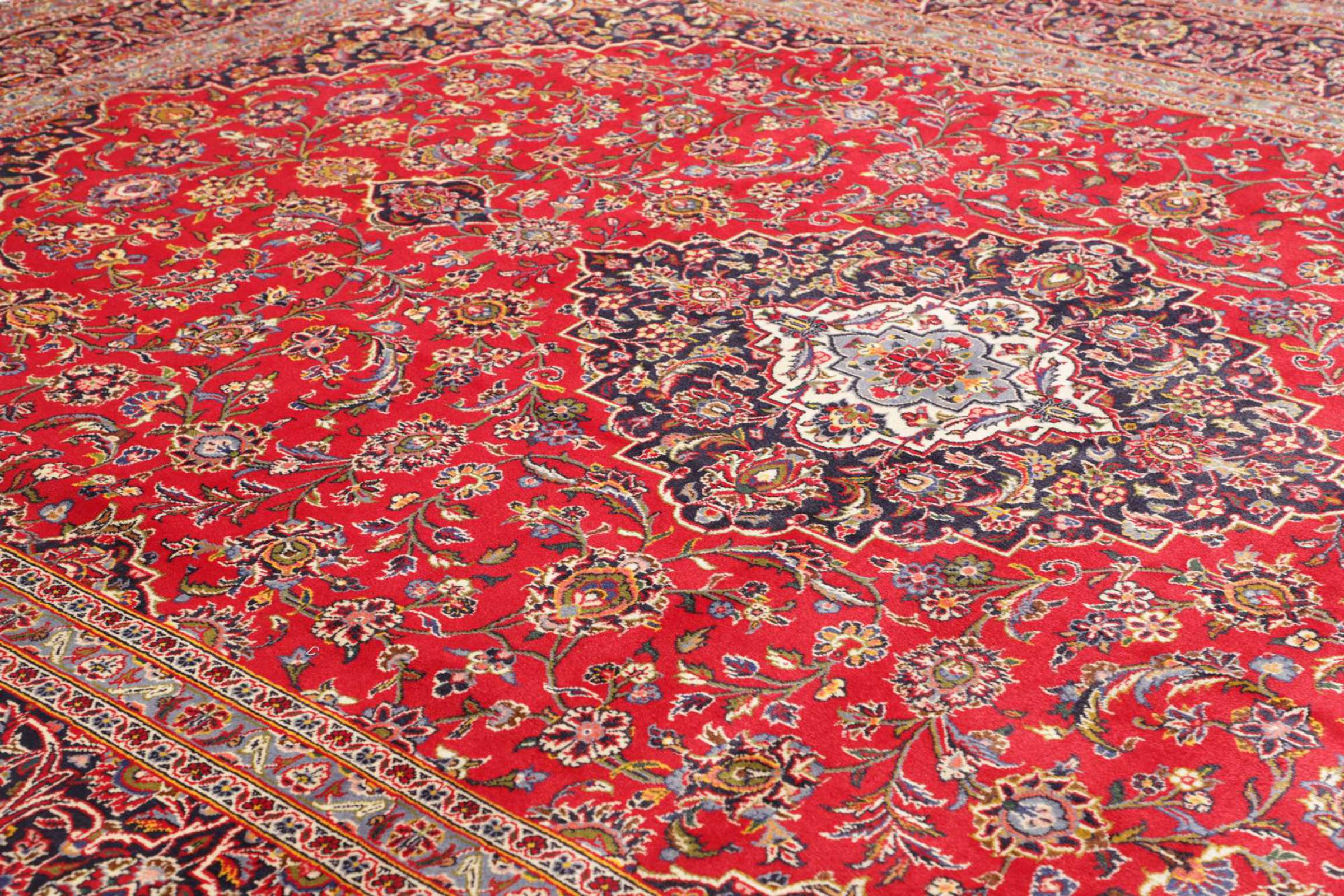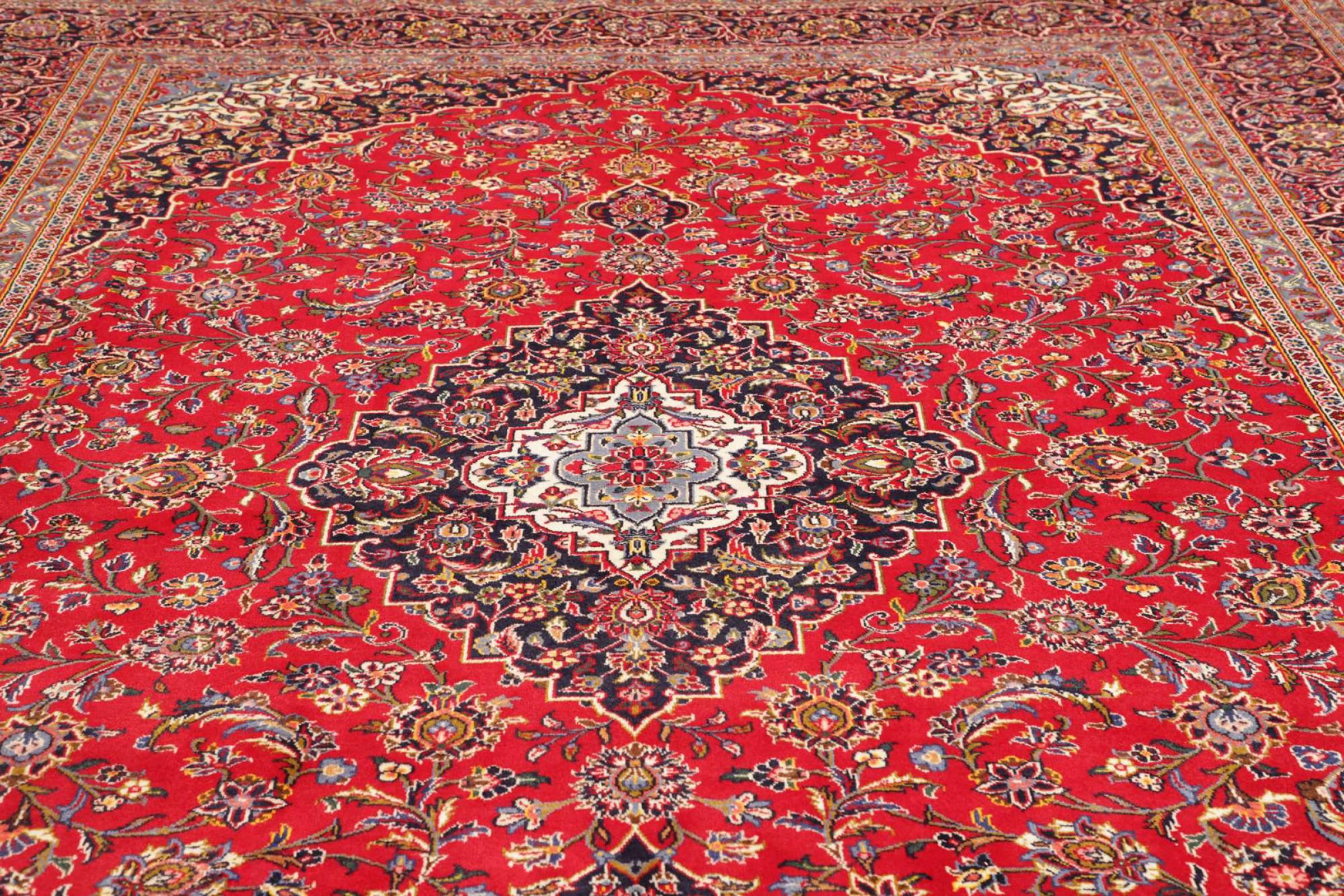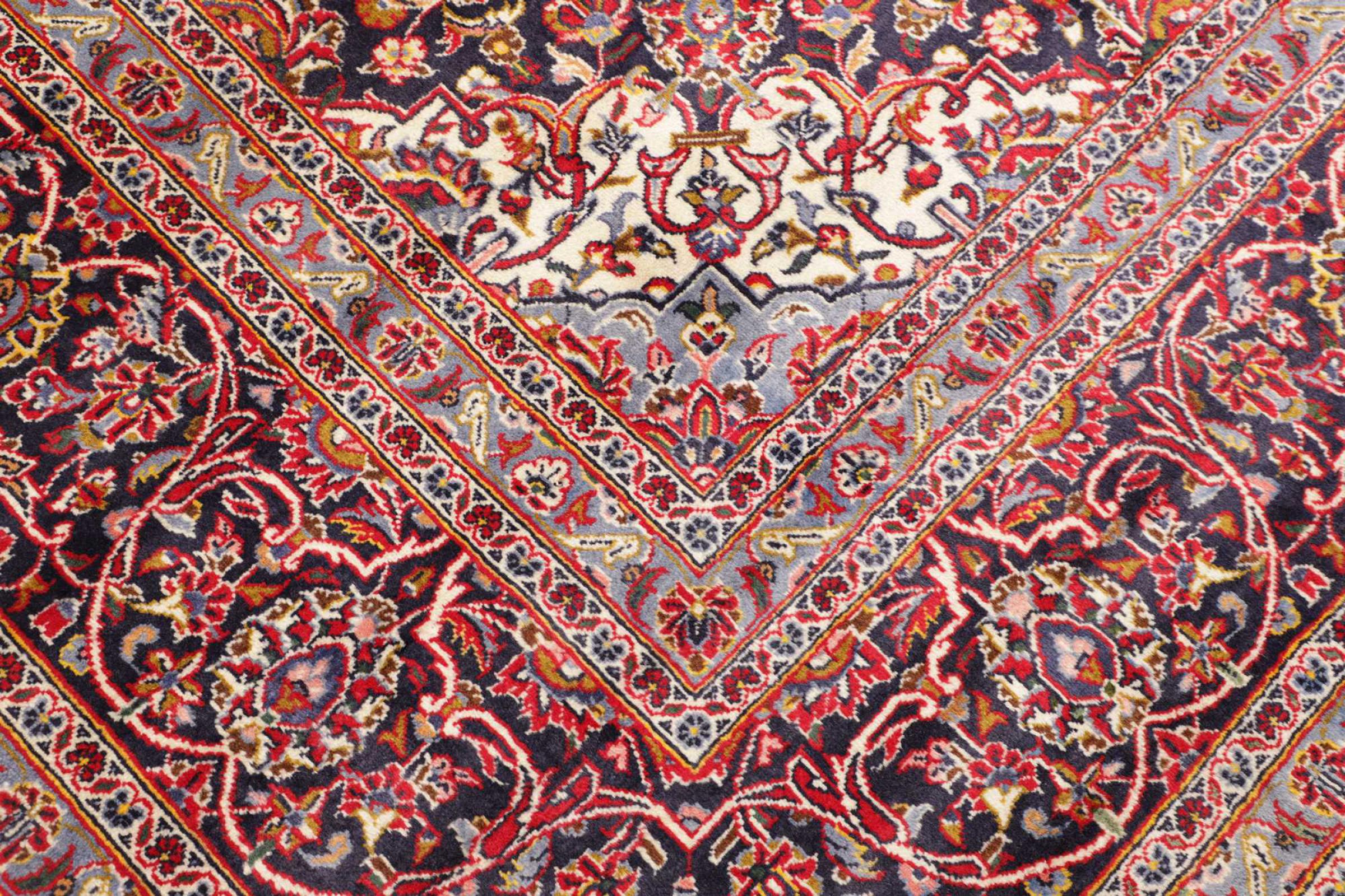 This rug originates from Keshan also called Kashan in Persia. It counts to the most popular Persian rugs. This Keshan comes in a typical design for its type. It has been crafted by hand from fine sheep wool and natural dyes. The ornaments embody a centuries old design pattern, which is still highly popular today.