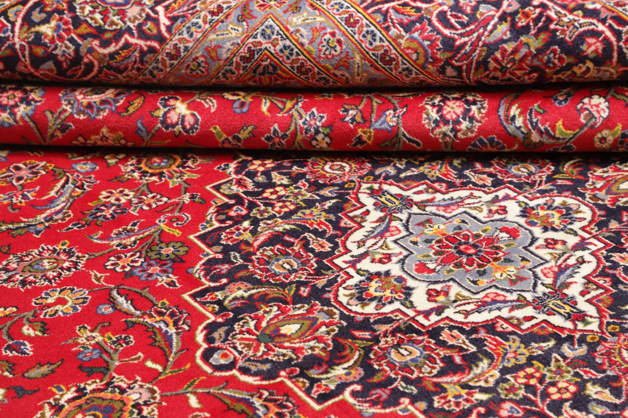 Hand-knotted rugs from the city of Kashan (Keshan) are among the most popular worldwide. These Persian carpets not only have a famous design, but their quality is indisputably one of the best. In the Persian Empire, the city was considered one of the most important trading centers along the famous Silk Road. Kashan rugs usually have a central medallion, floral ornaments and a red background. They are made of high quality sheep wool and natural dyes.