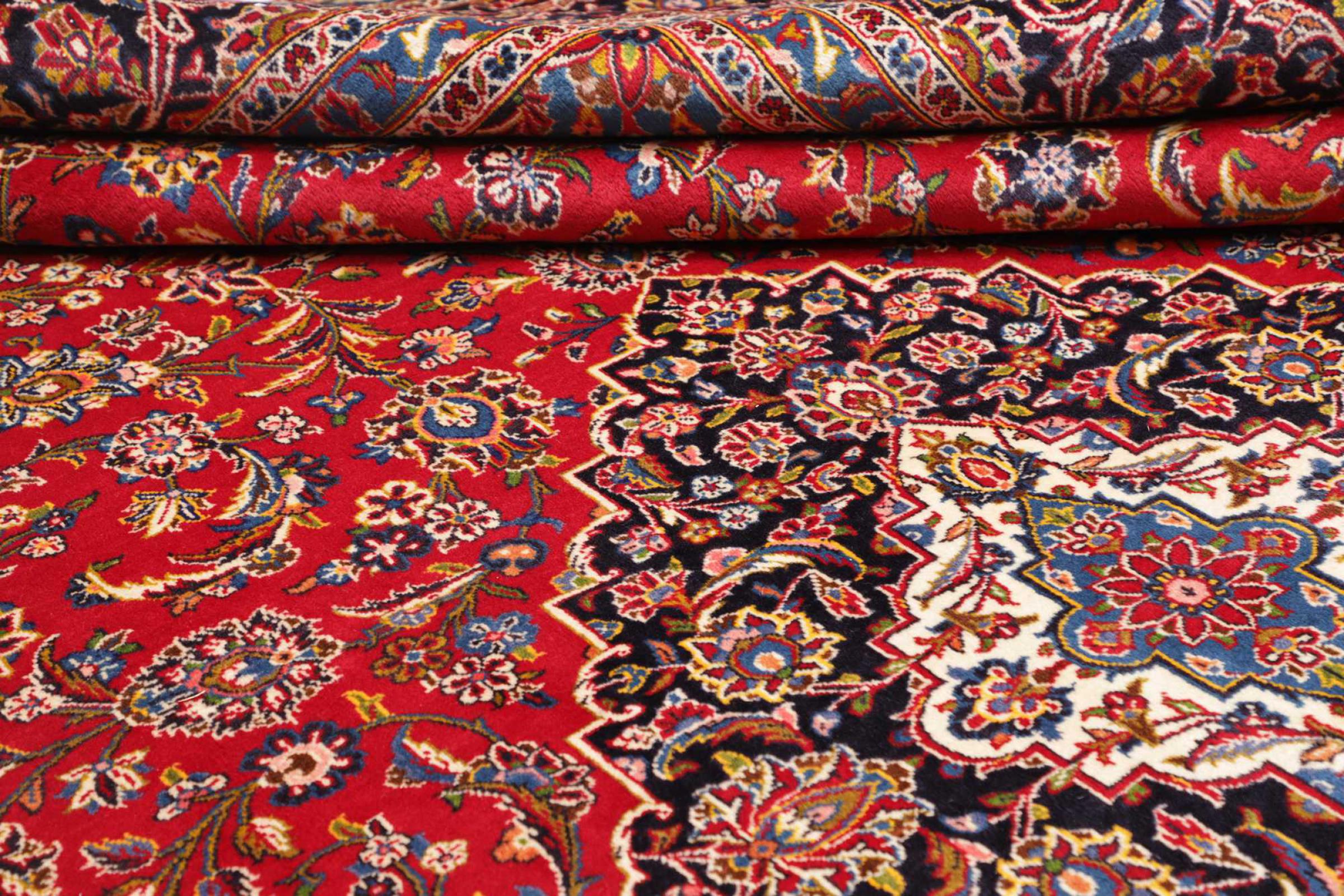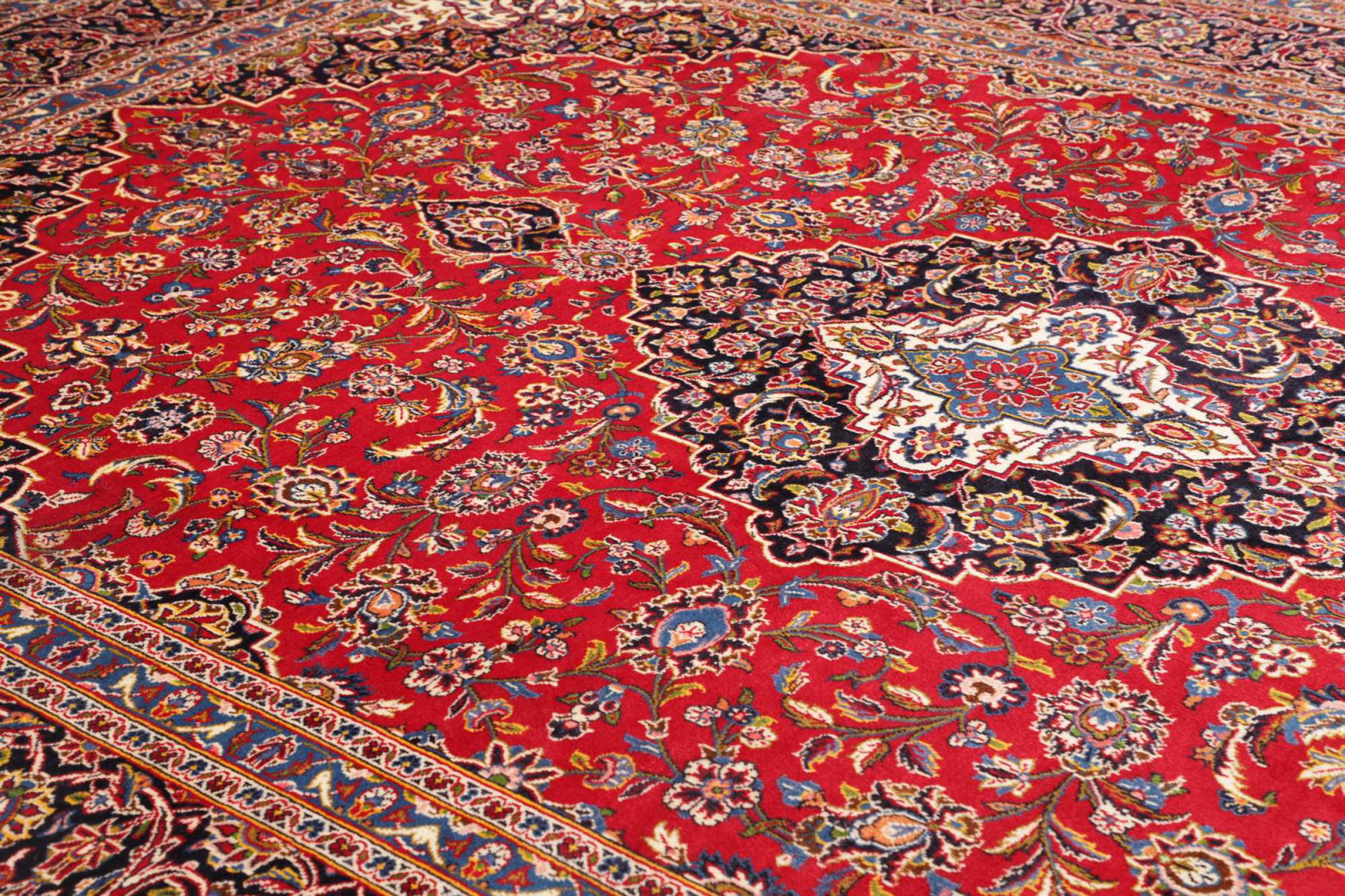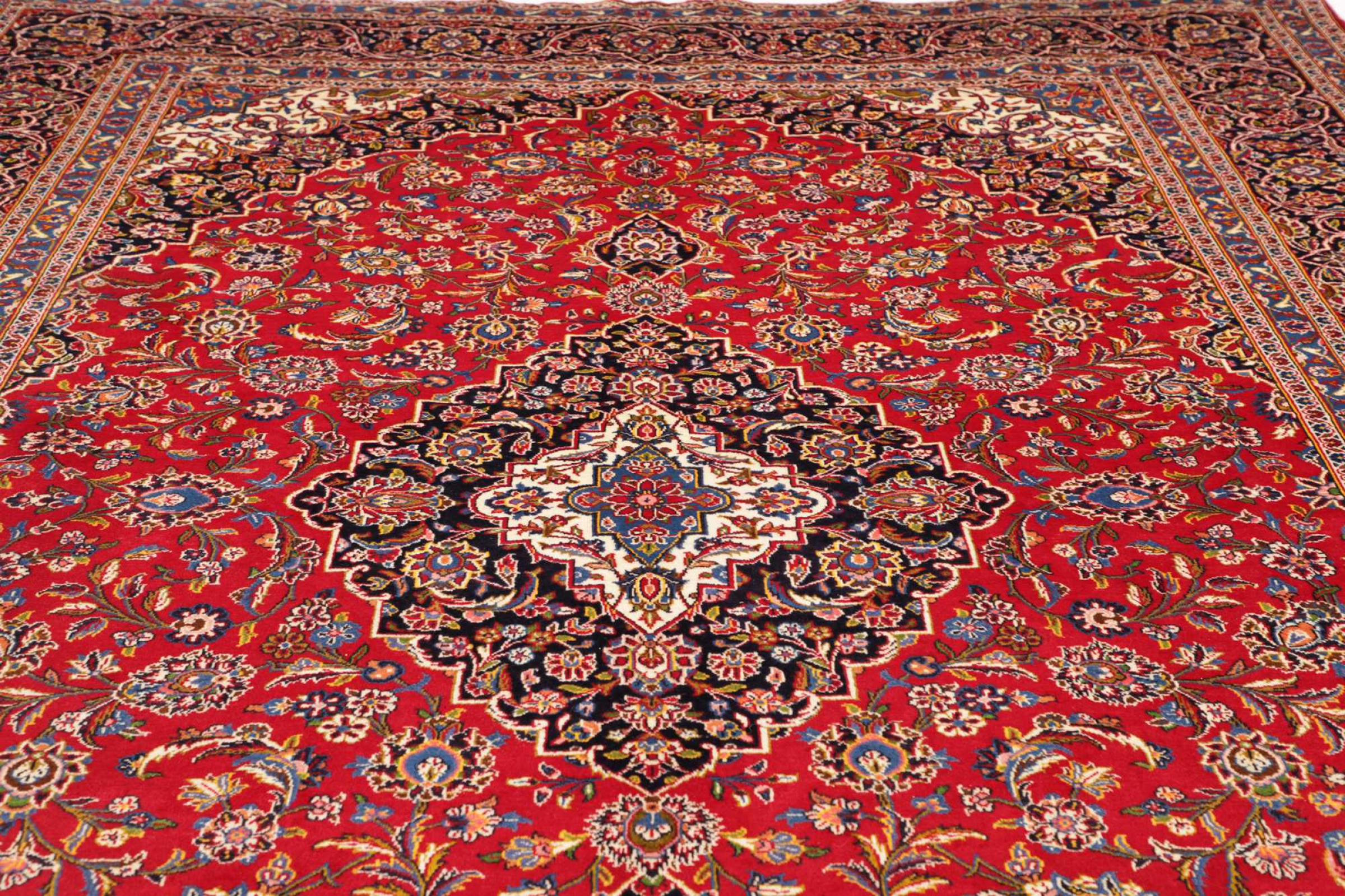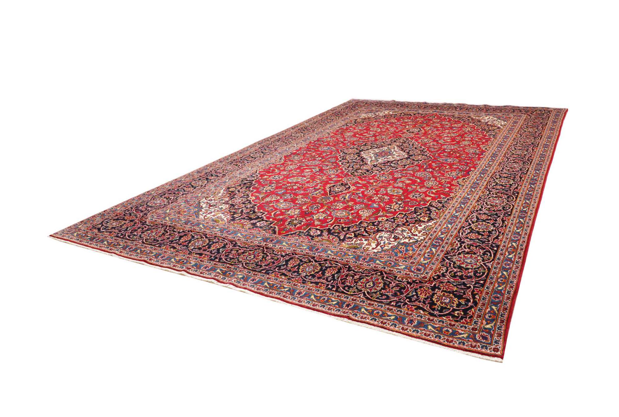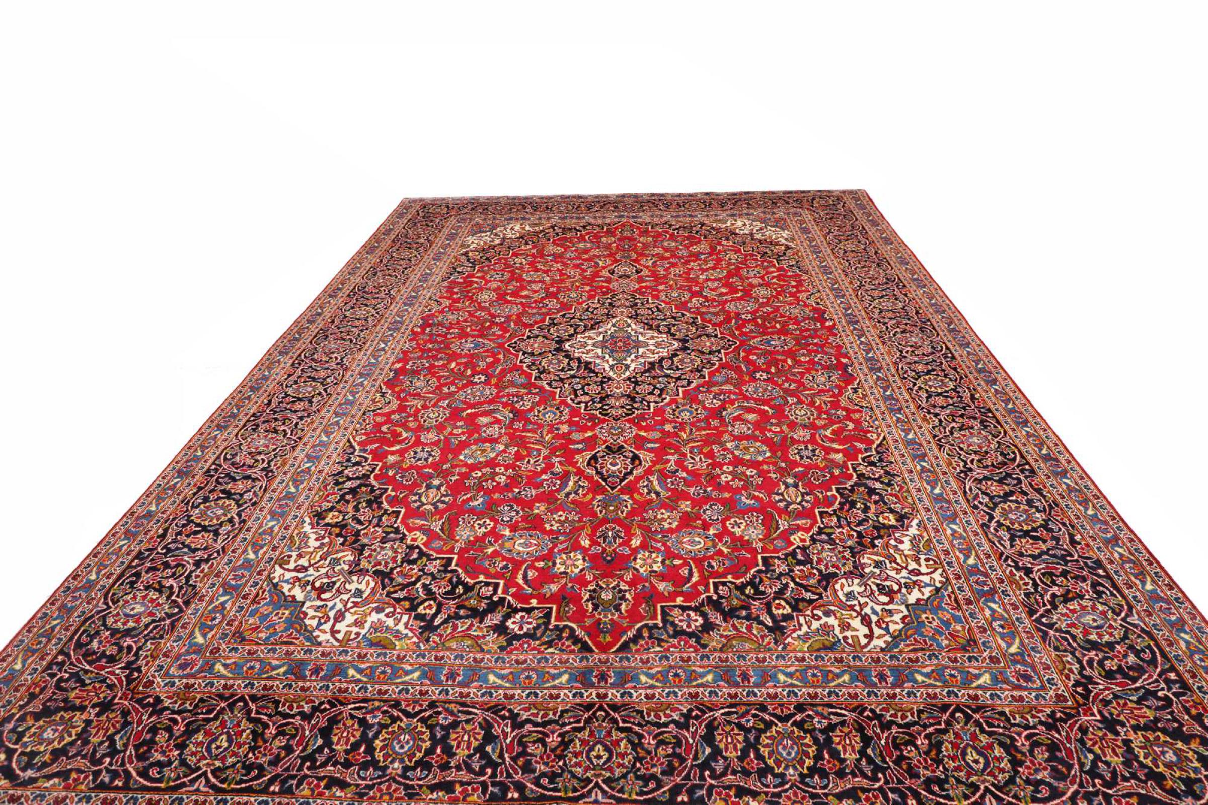 Hand-knotted rugs from the city of Kashan (Keshan) are among the most popular worldwide. These Persian carpets not only have a famous design, but their quality is indisputably one of the best. In the Persian Empire, the city was considered one of the most important trading centers along the famous Silk Road. Kashan rugs usually have a central medallion, floral ornaments and a red background. They are made of high quality sheep wool and natural dyes.