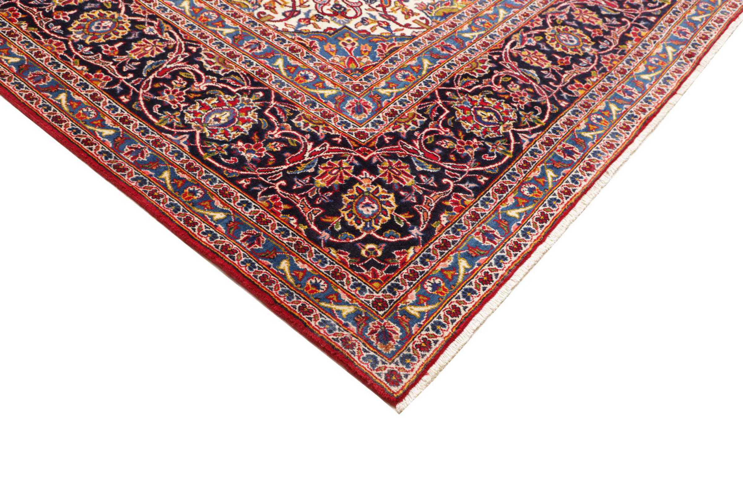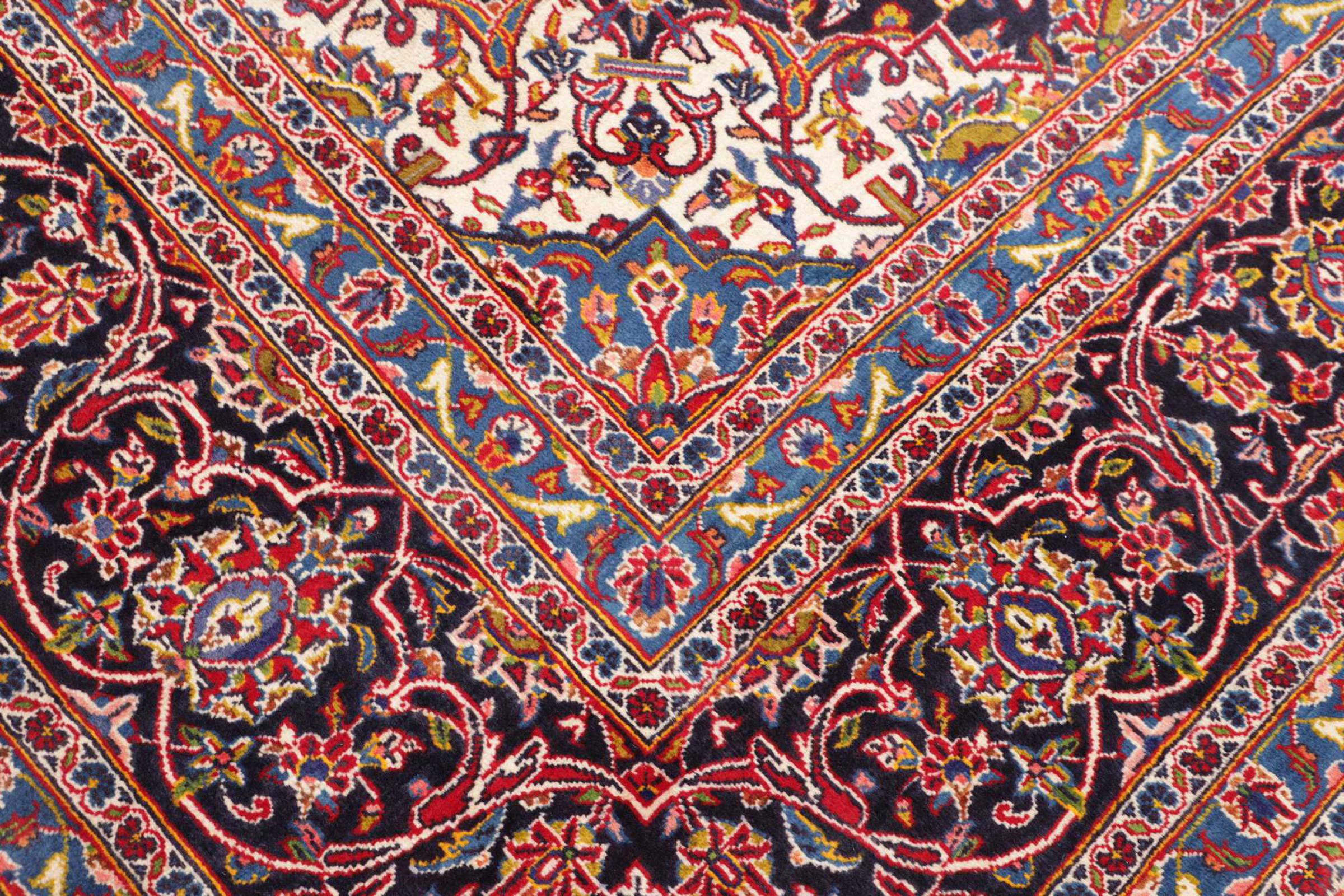 This rug originates from Keshan also called Kashan in Persia. It counts to the most popular Persian rugs. This Keshan comes in a typical design for its type. It has been crafted by hand from fine sheep wool and natural dyes. The ornaments embody a centuries old design pattern, which is still highly popular today.