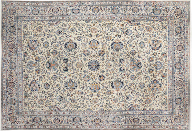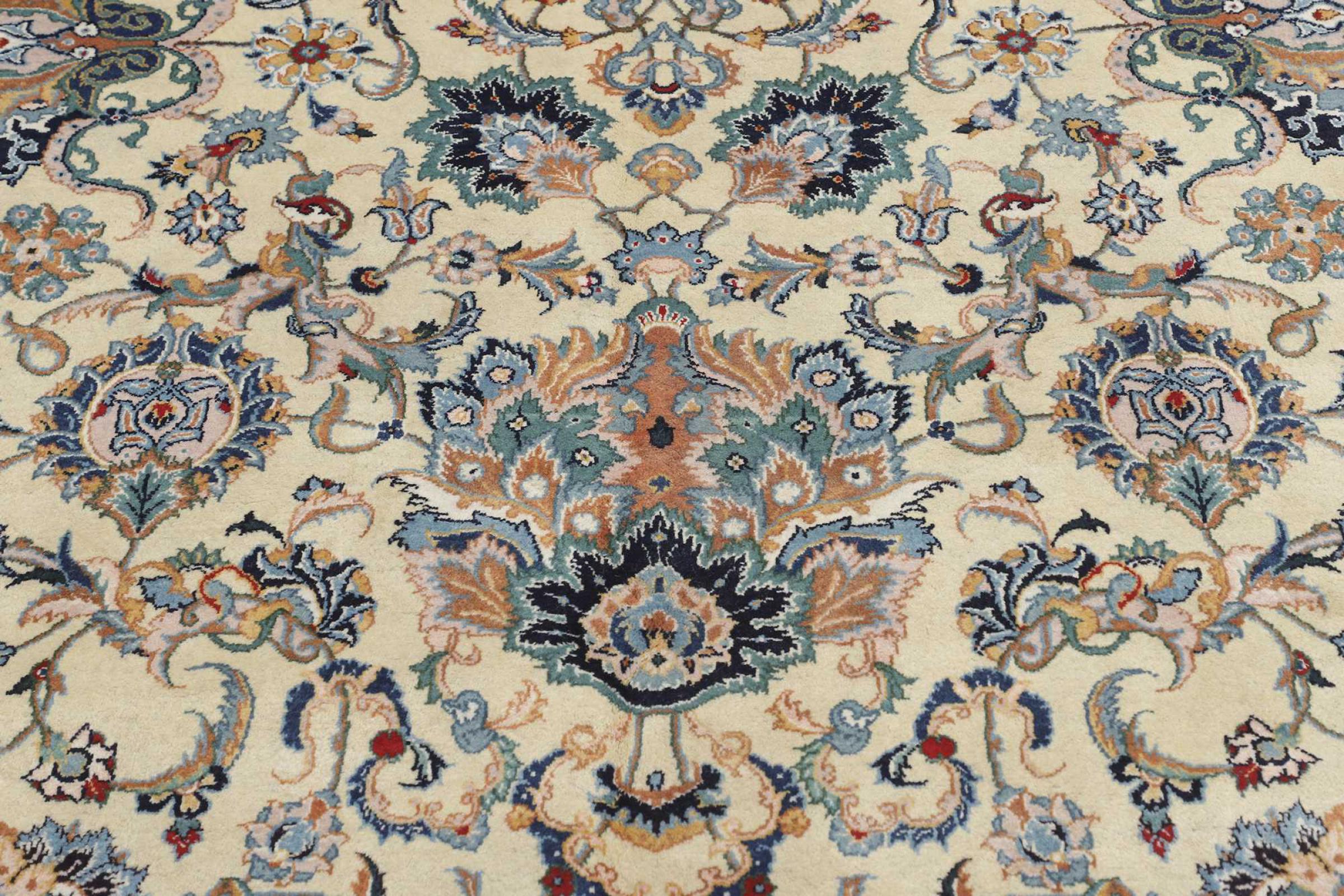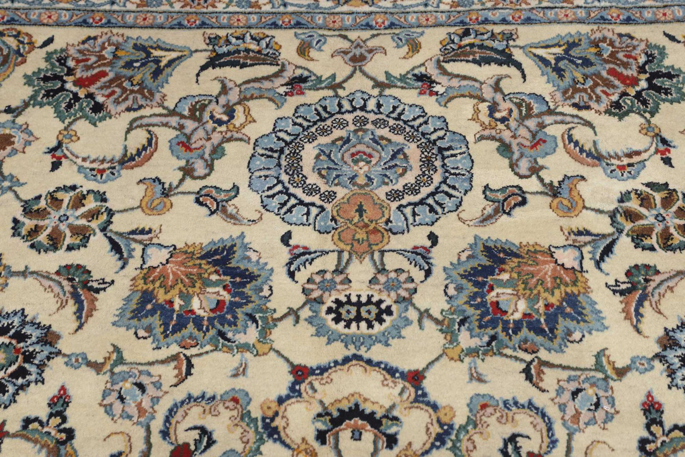 This rug originates from Keshan also called Kashan in Persia. It counts to the most popular Persian rugs. This Keshan comes in a typical design for its type. It has been crafted by hand from fine sheep wool and natural dyes. The ornaments embody a centuries old design pattern, which is still highly popular today.