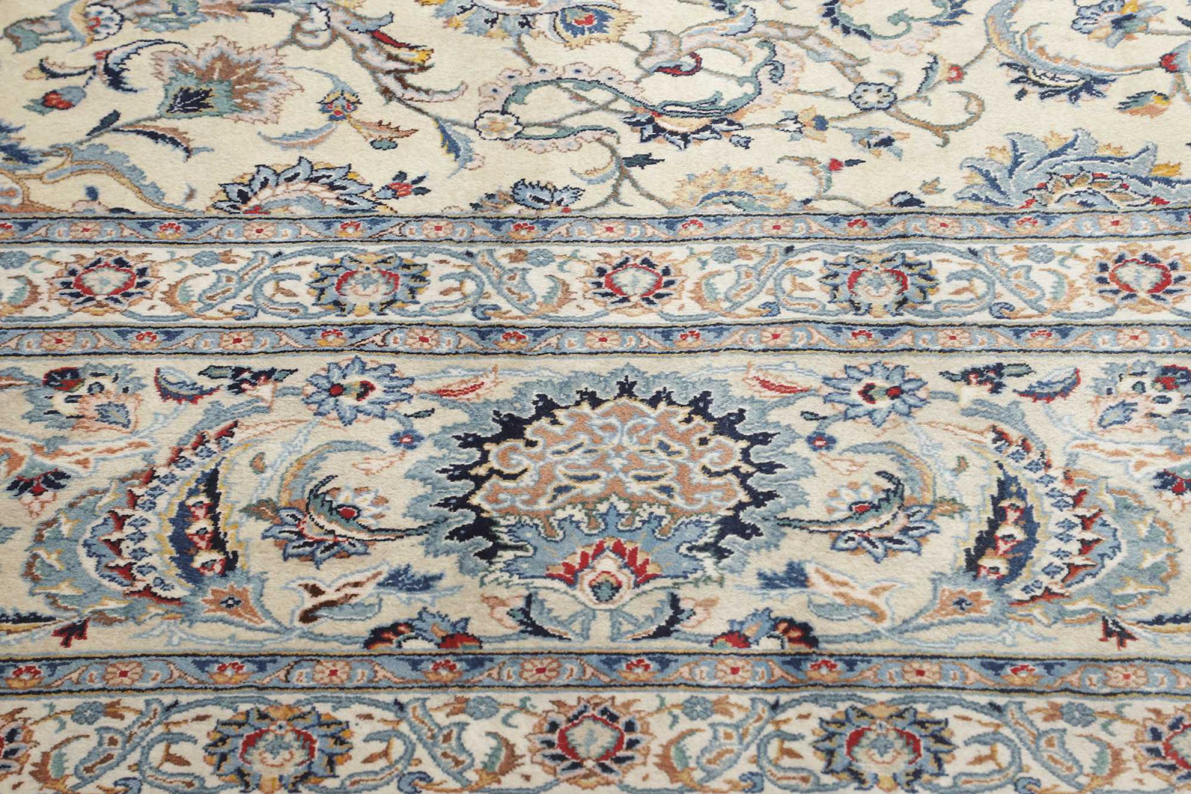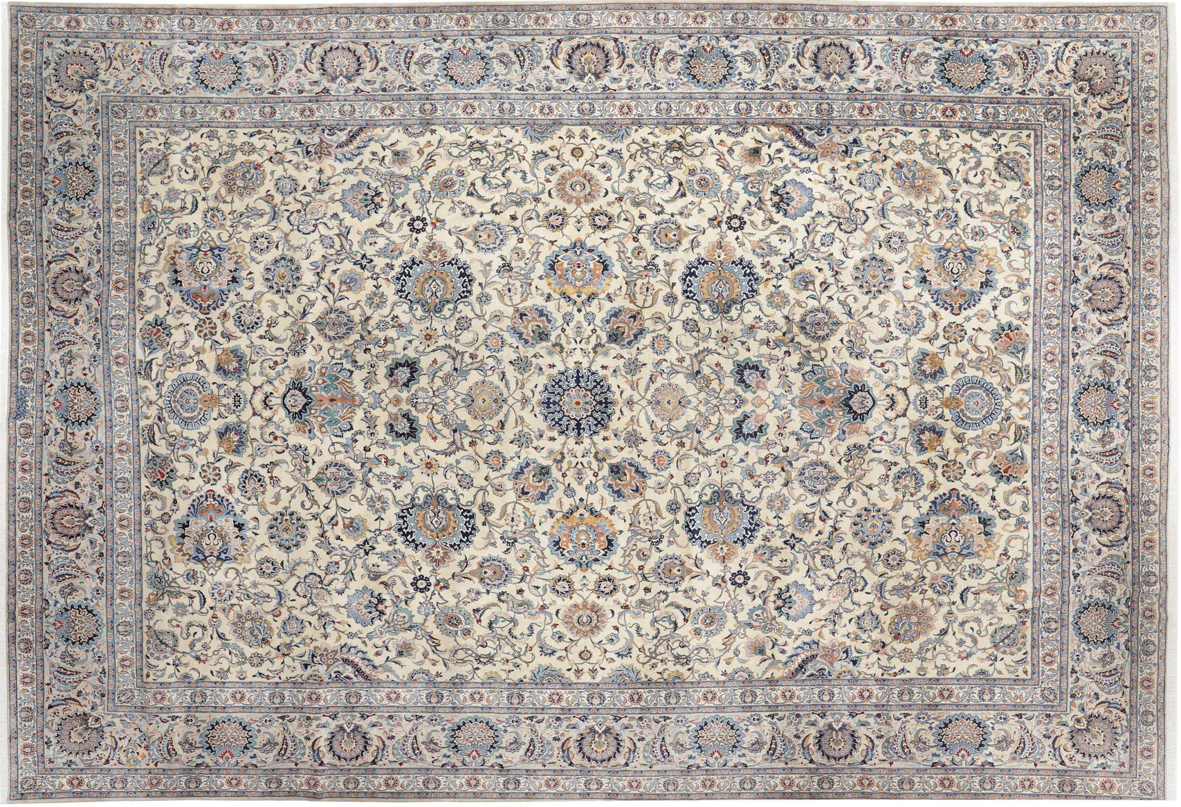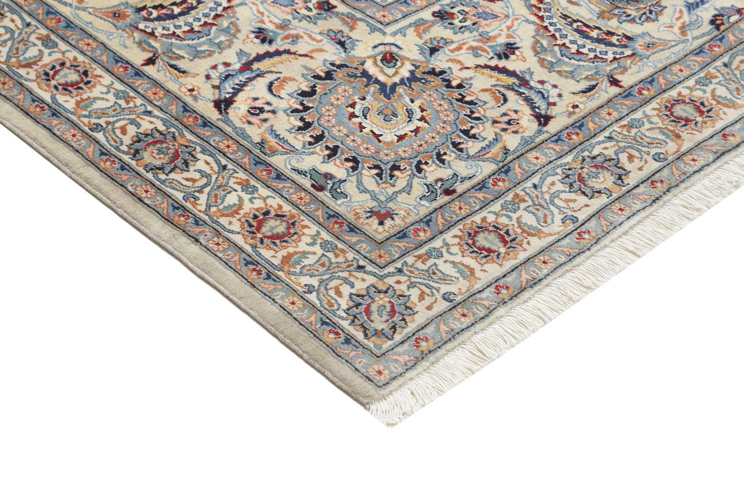 This rug originates from Keshan also called Kashan in Persia. It counts to the most popular Persian rugs. This Keshan comes in a typical design for its type. It has been crafted by hand from fine sheep wool and natural dyes. The ornaments embody a centuries old design pattern, which is still highly popular today.