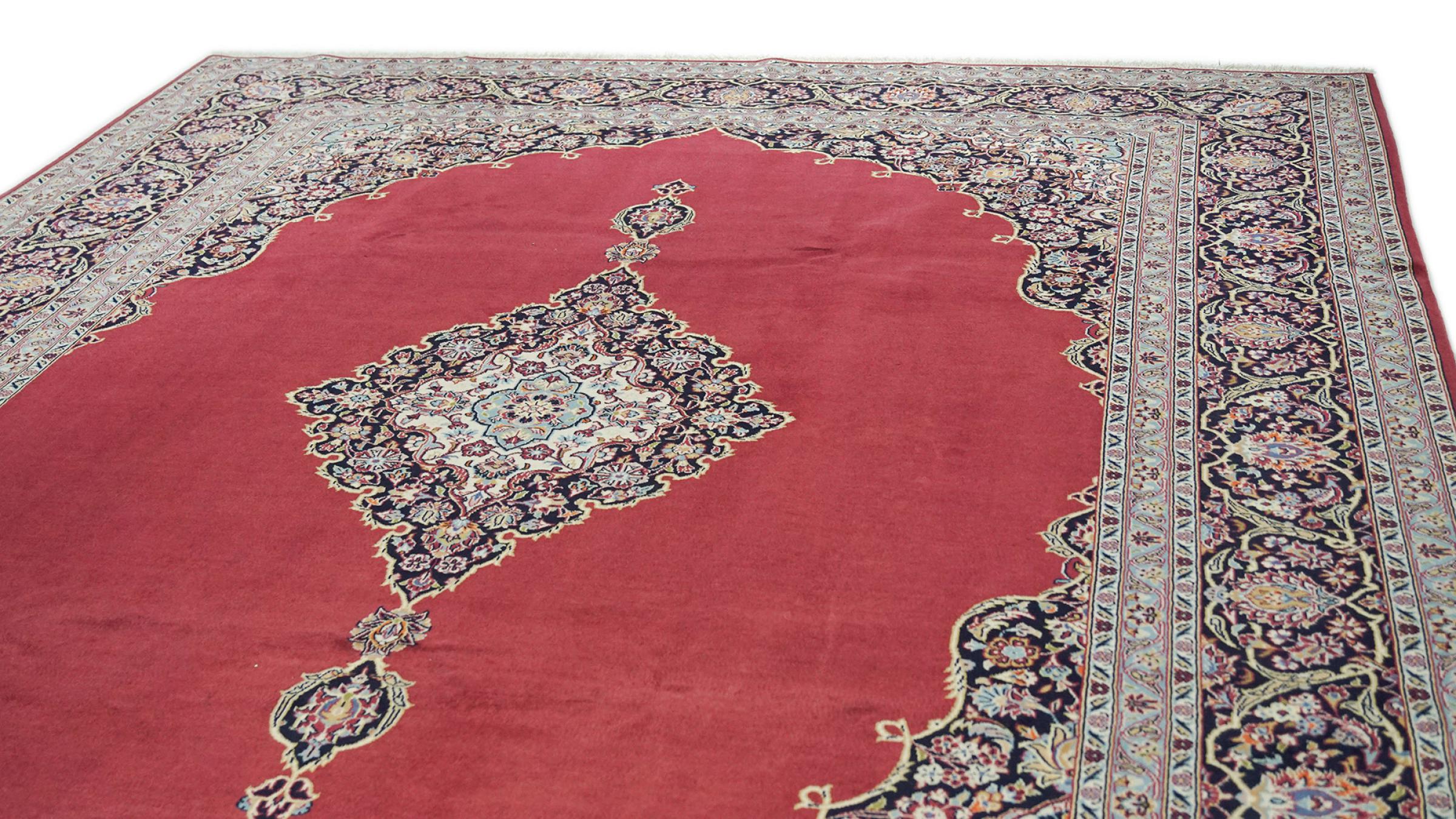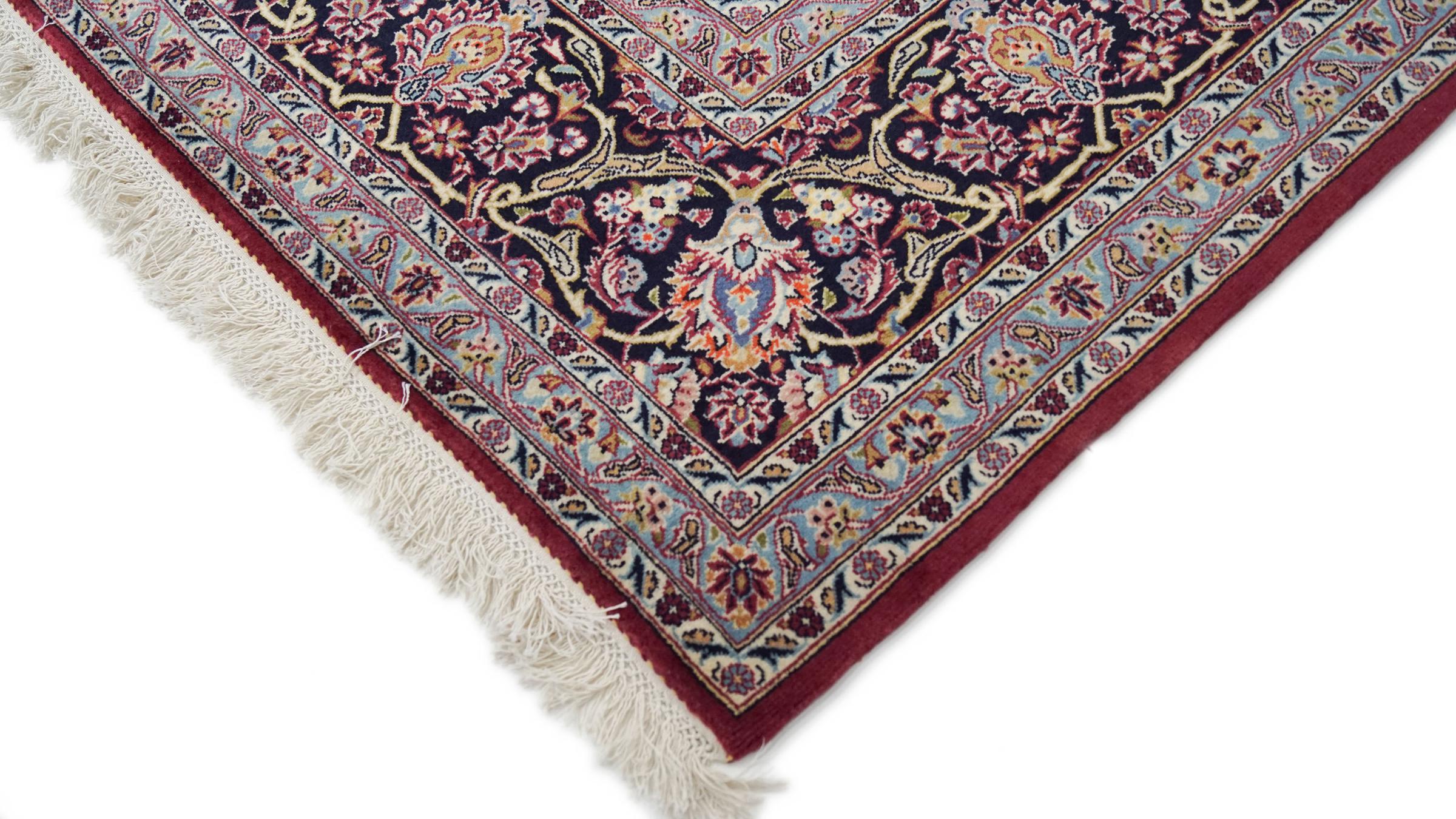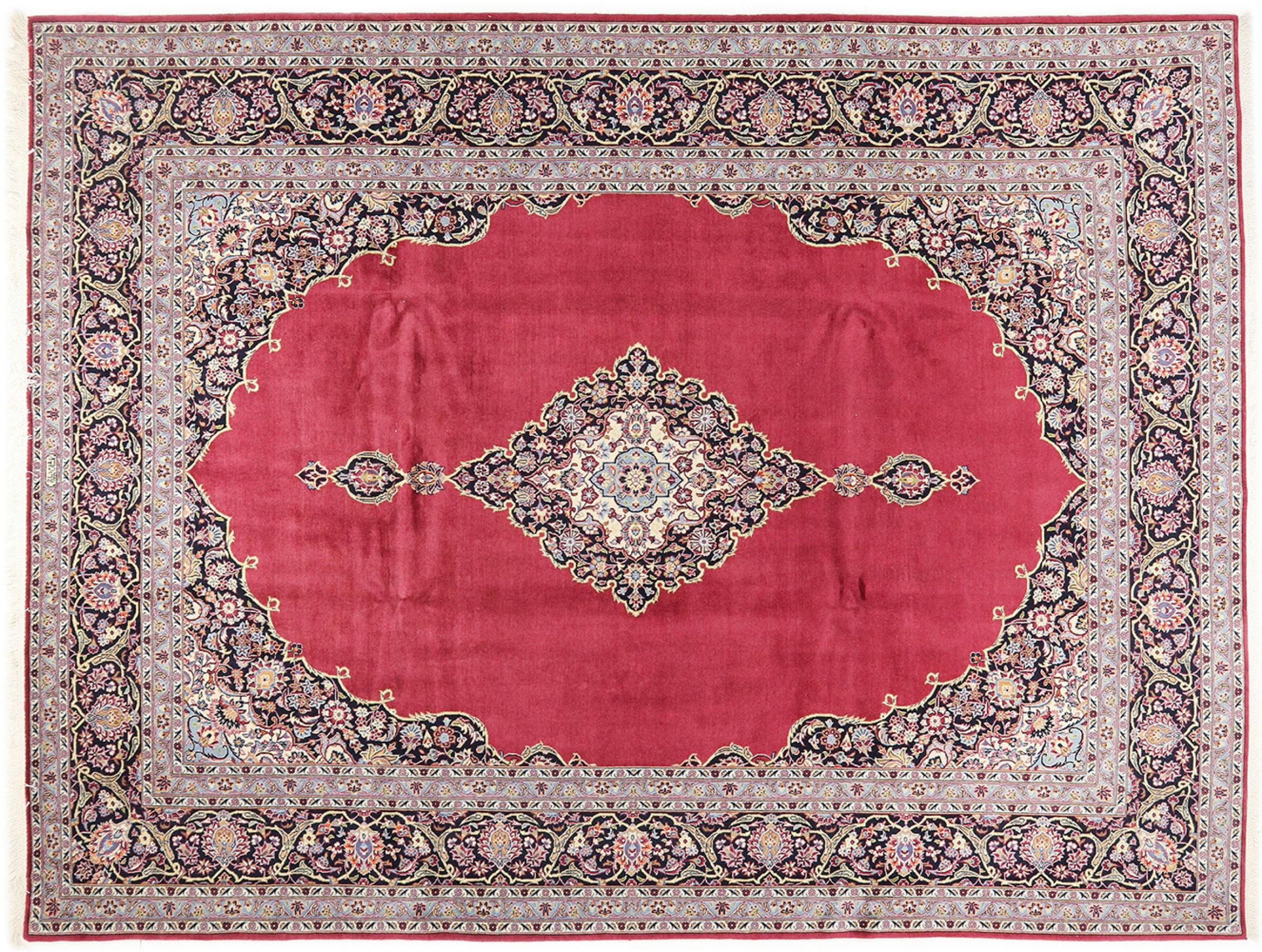 This rug originates from Keshan also called Kashan in Persia. It counts to the most popular Persian rugs. This Keshan comes in a typical design for its type. It has been crafted by hand from fine sheep wool and natural dyes. The ornaments embody a centuries old design pattern, which is still highly popular today.
