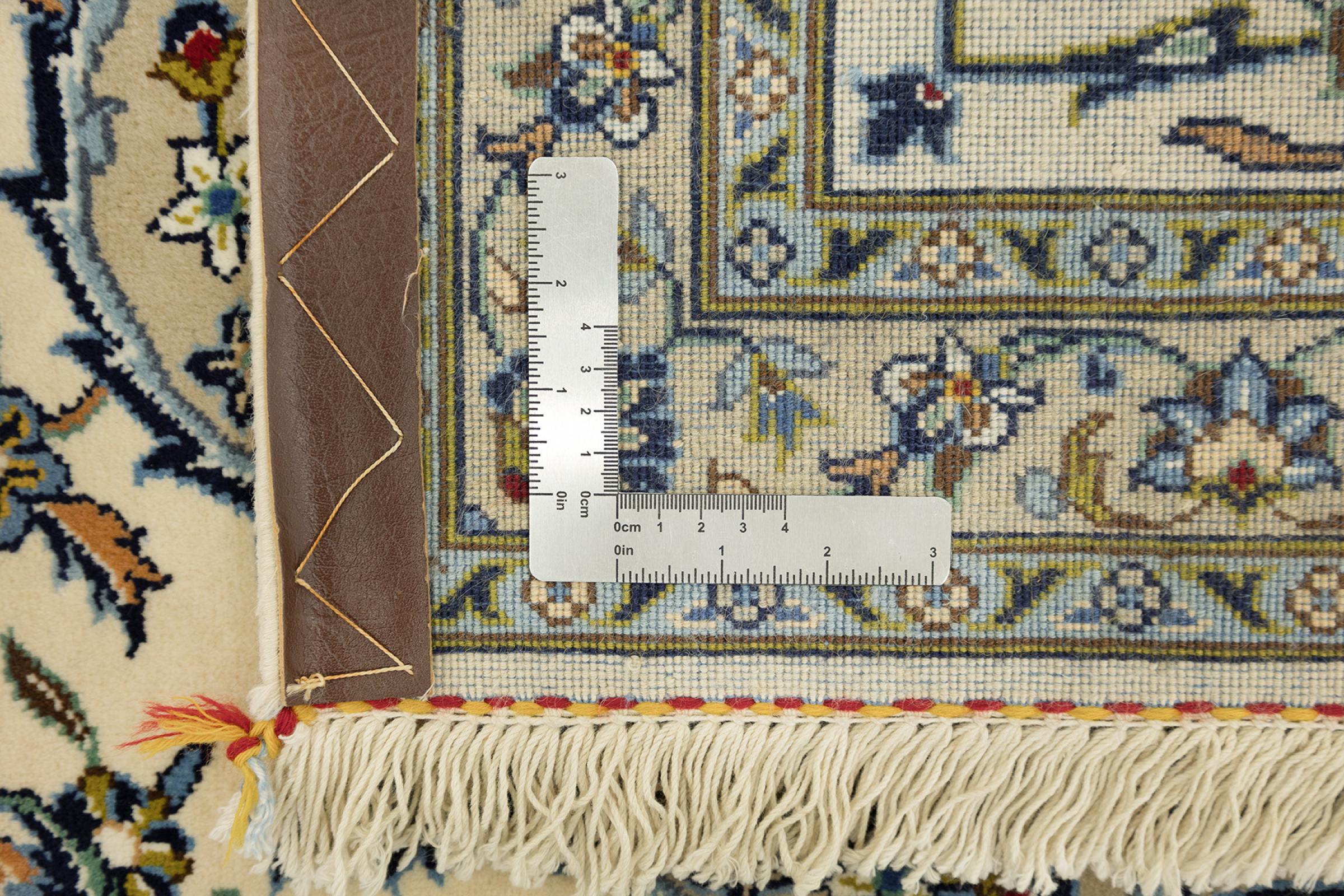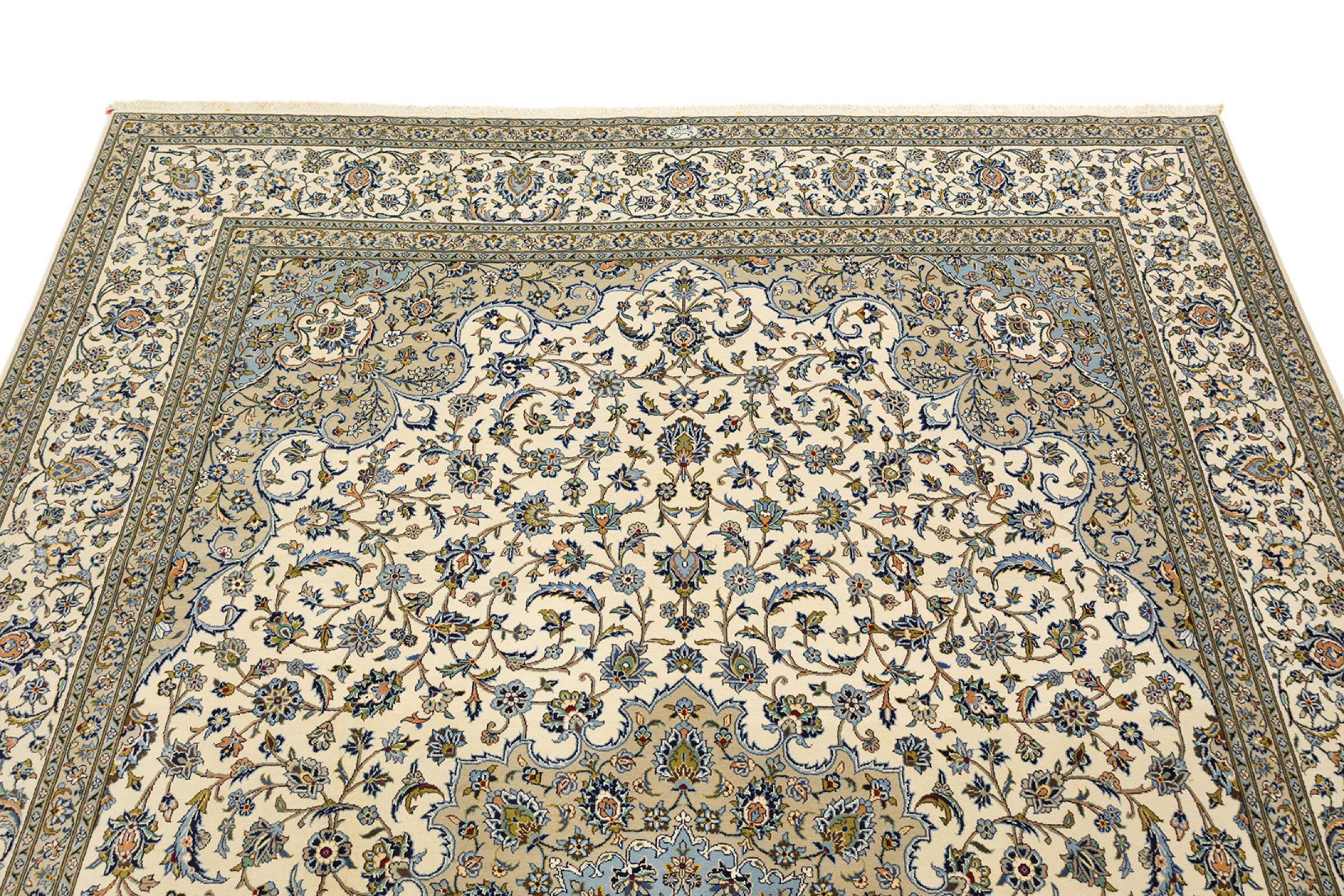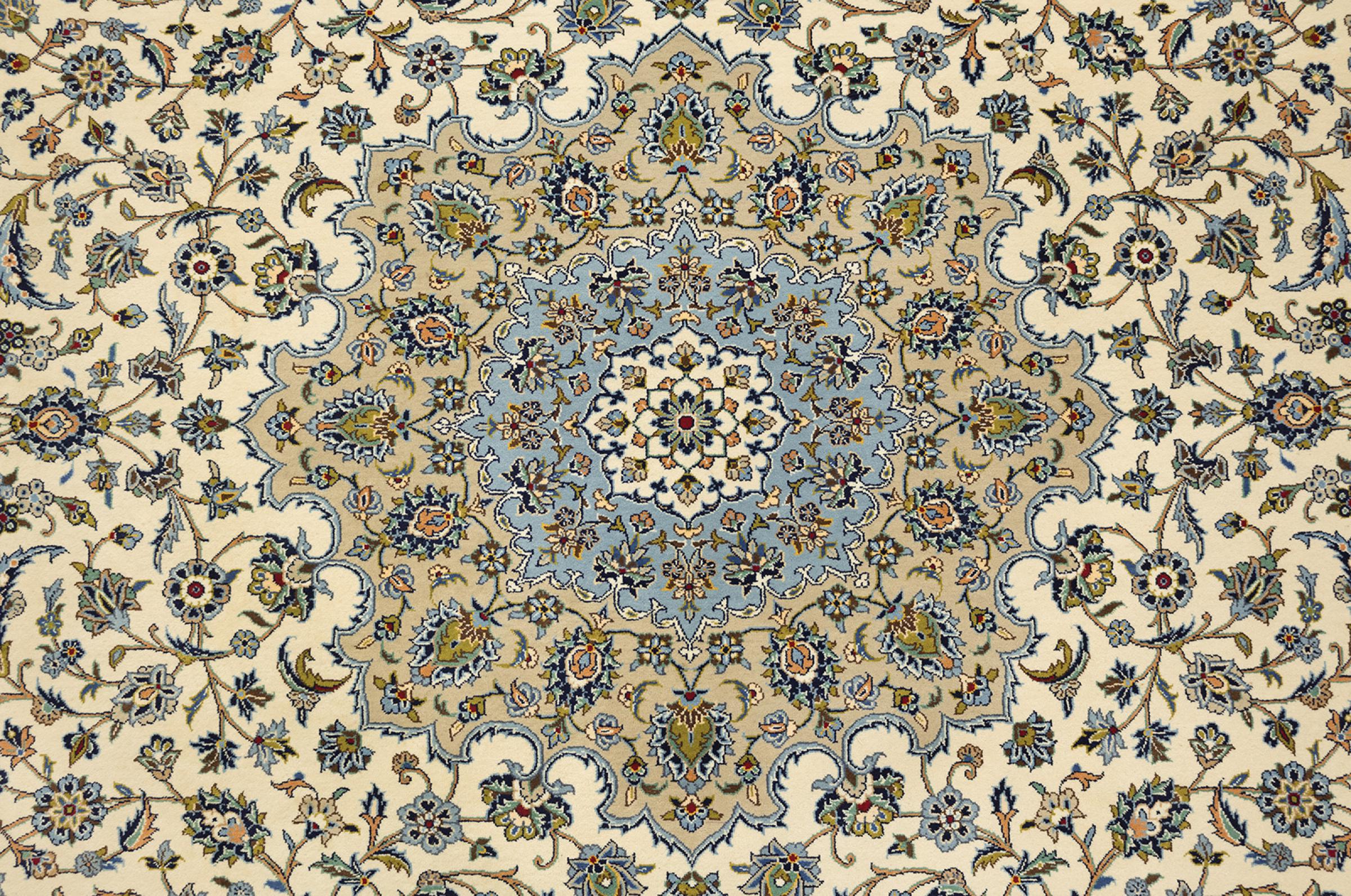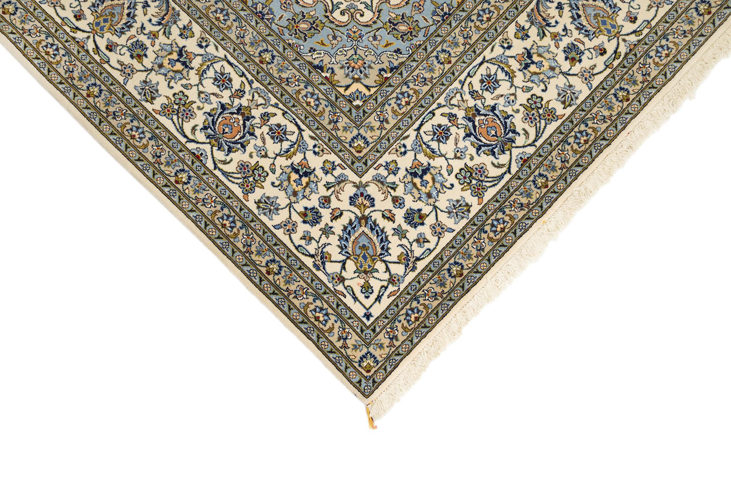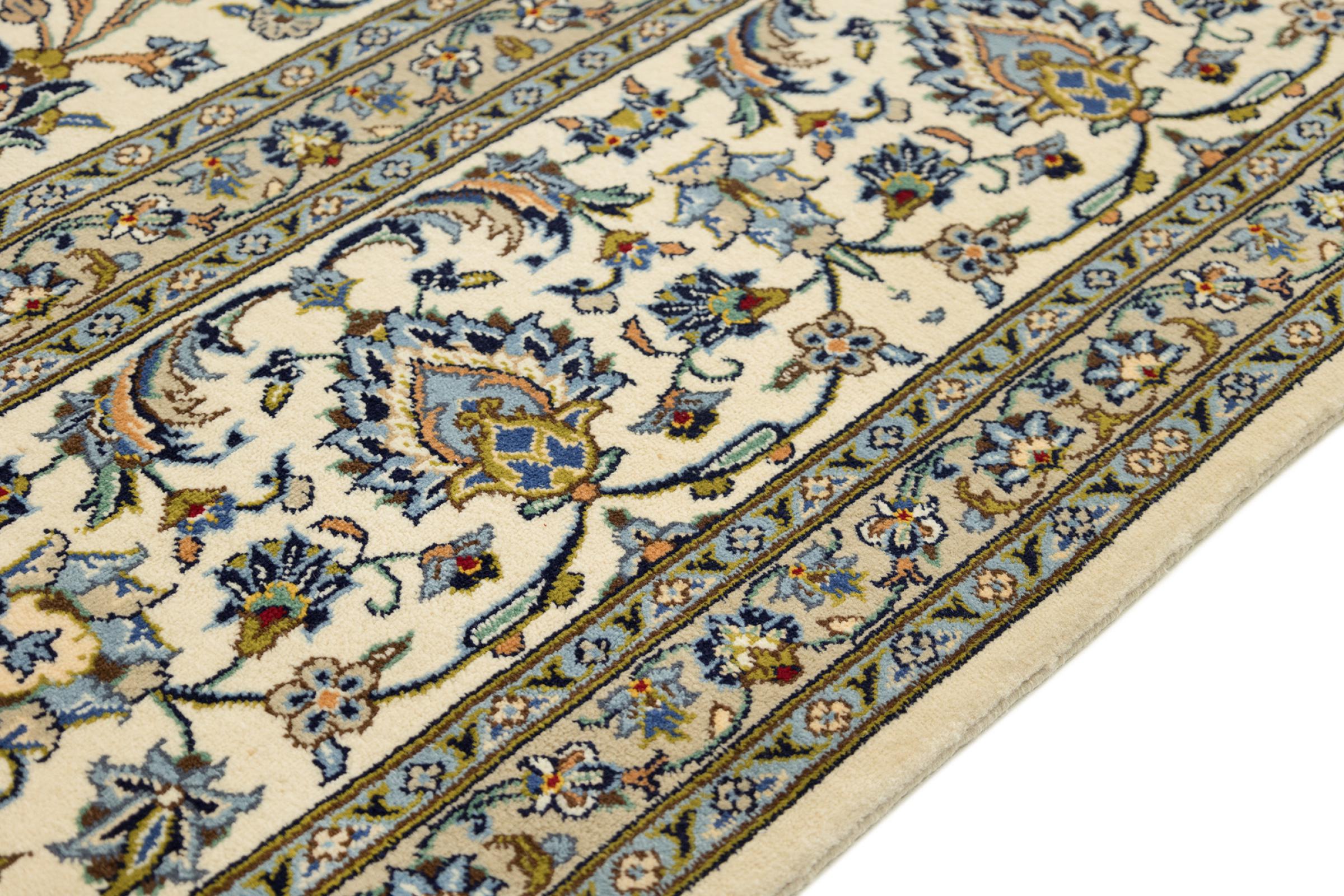 This rug originates from Keshan also called Kashan in Persia. It counts to the most popular Persian rugs. This Keshan comes in a typical design for its type. It has been crafted by hand from fine sheep wool and natural dyes. The ornaments embody a centuries old design pattern, which is still highly popular today.