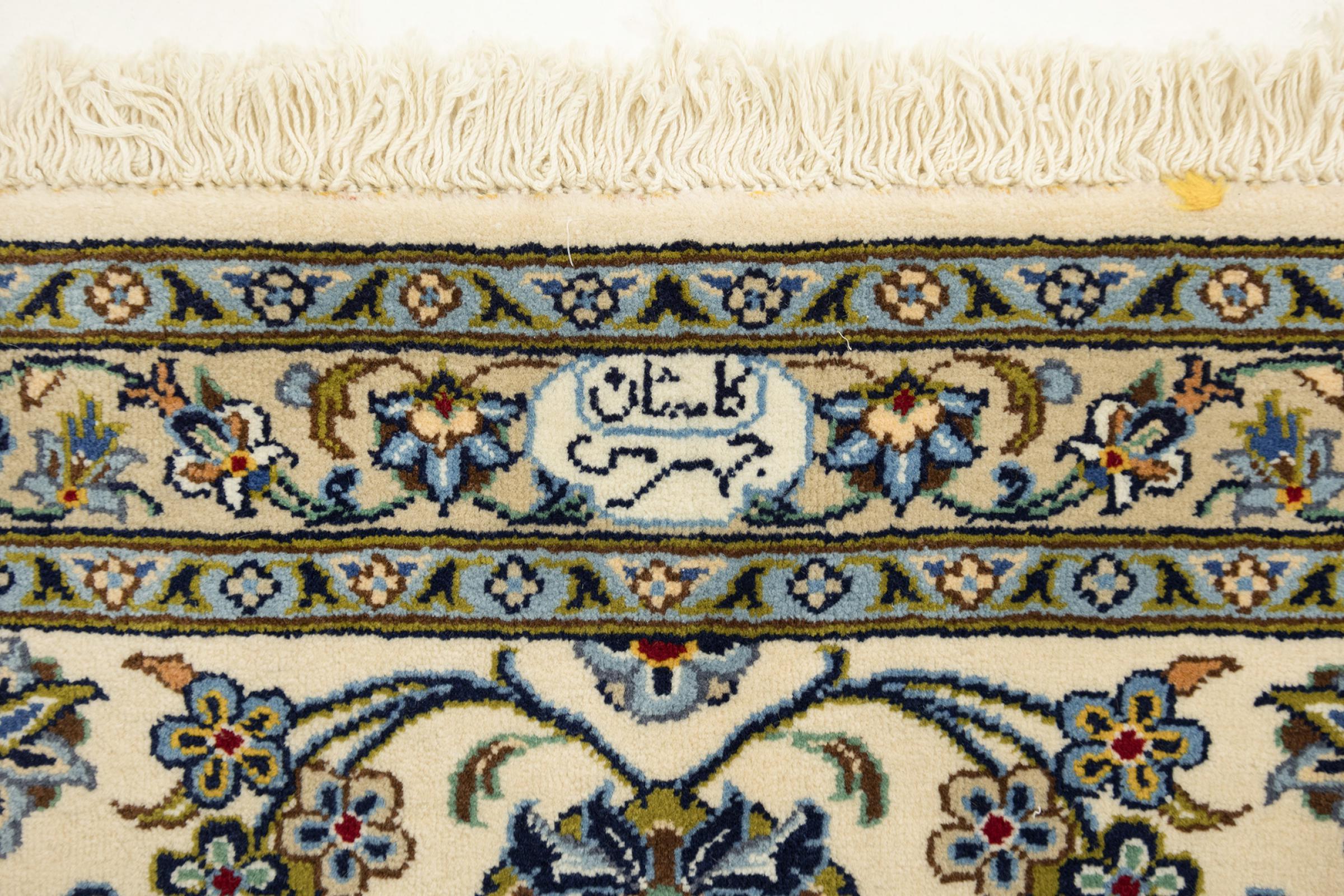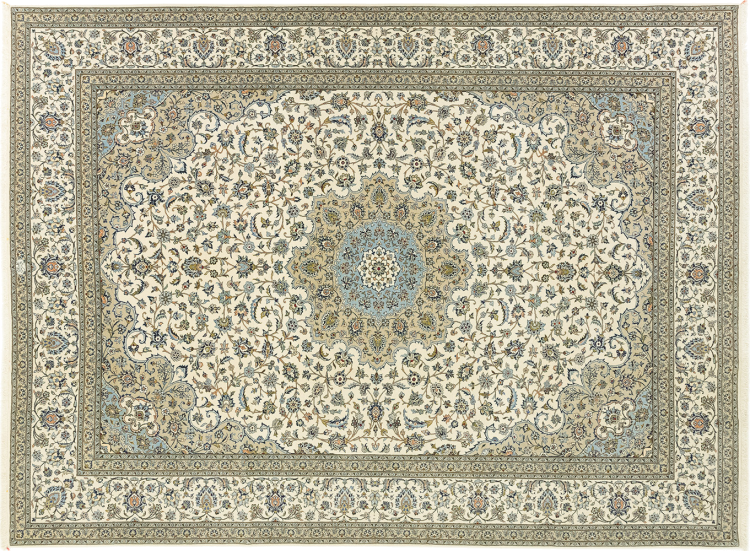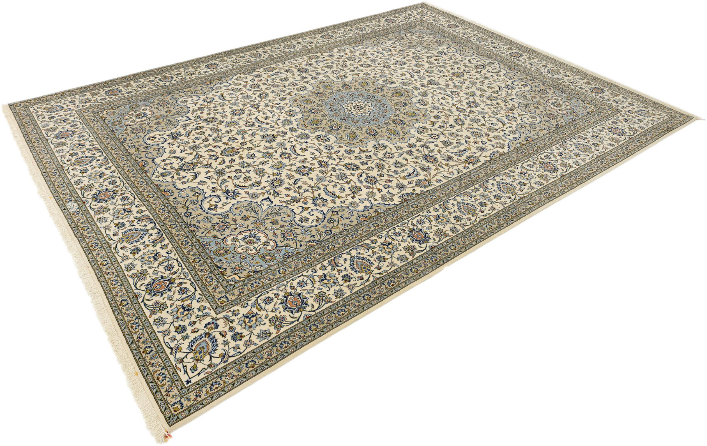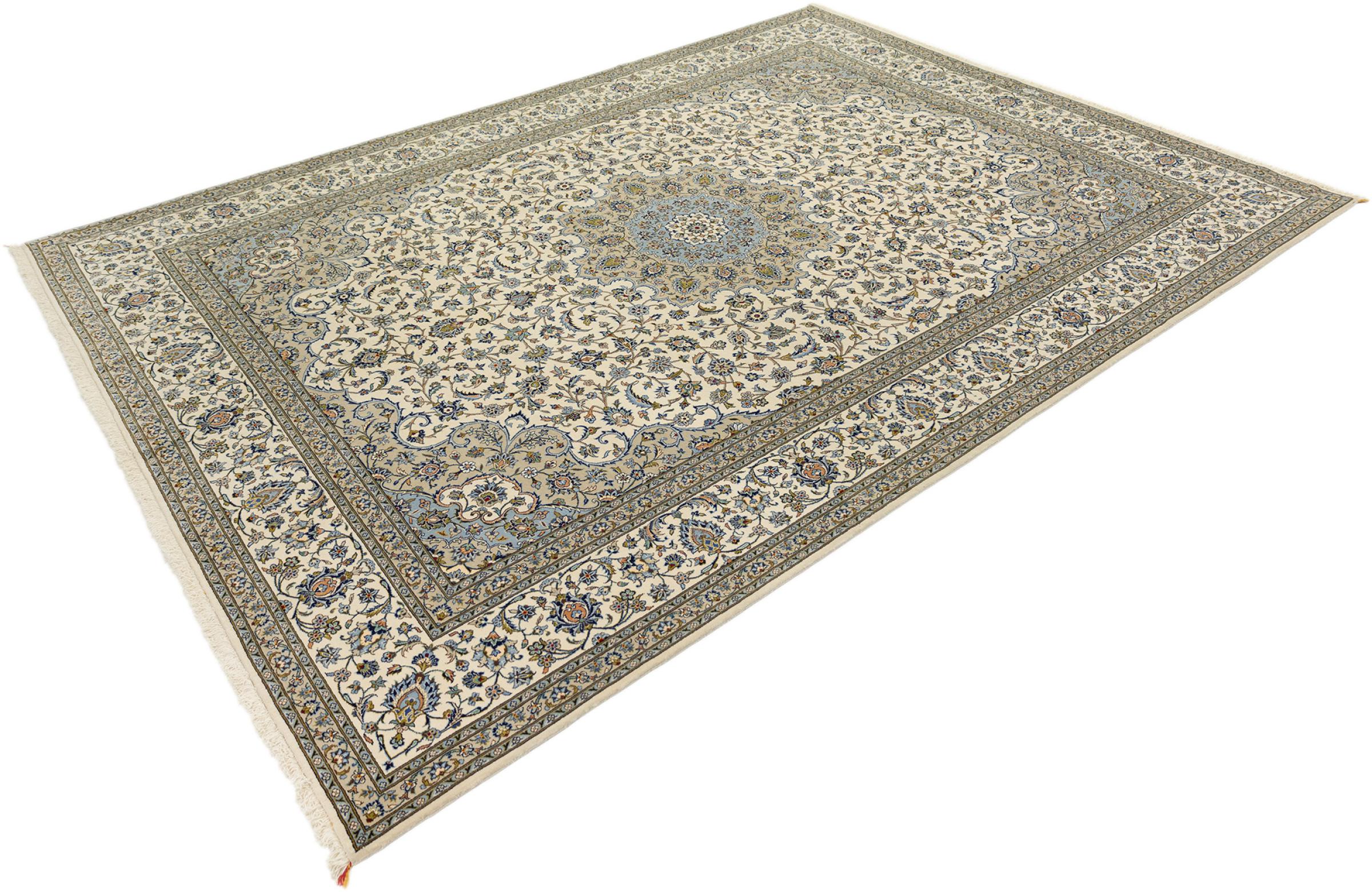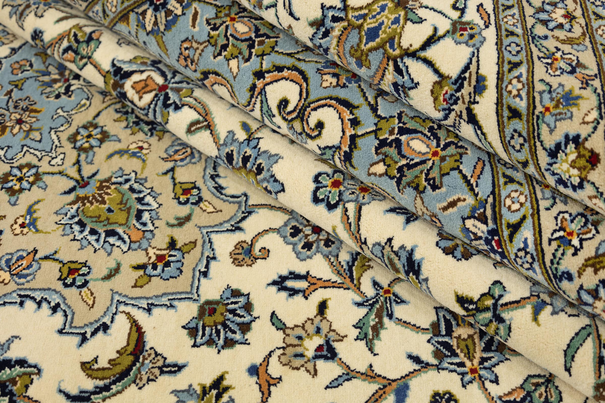 This rug originates from Keshan also called Kashan in Persia. It counts to the most popular Persian rugs. This Keshan comes in a typical design for its type. It has been crafted by hand from fine sheep wool and natural dyes. The ornaments embody a centuries old design pattern, which is still highly popular today.