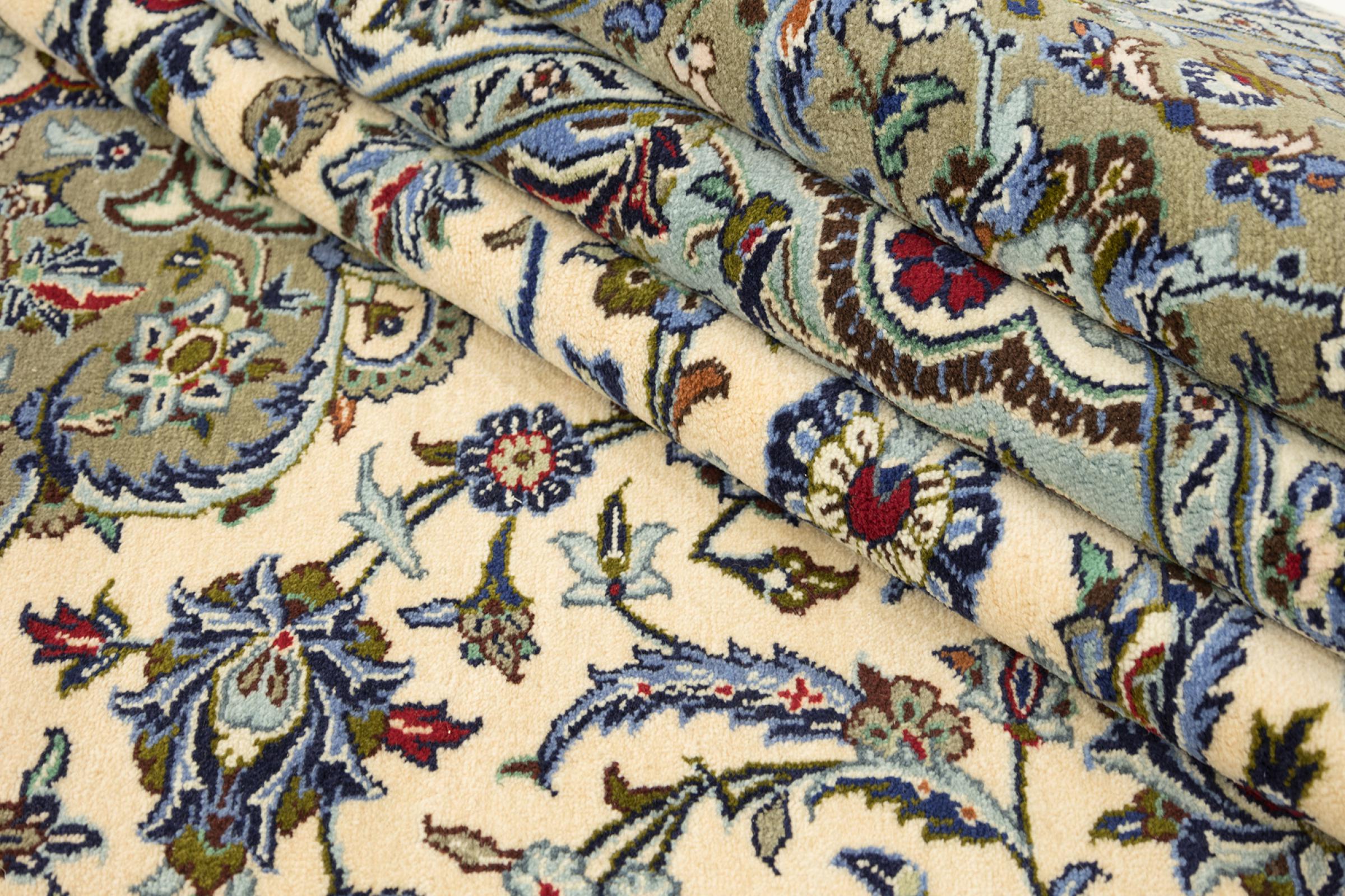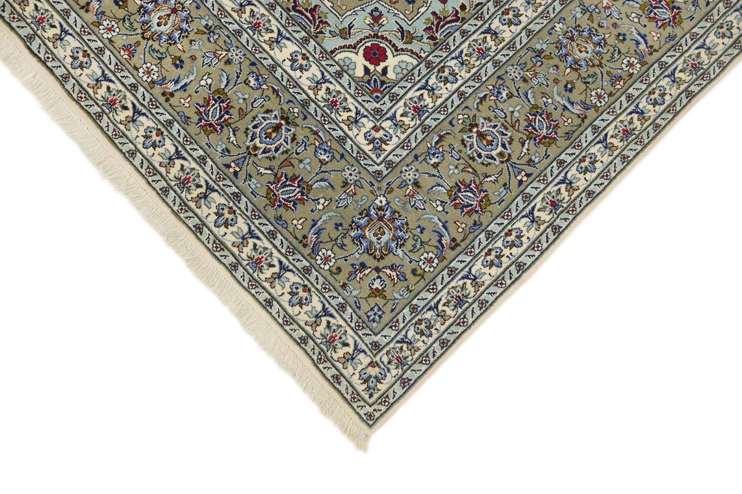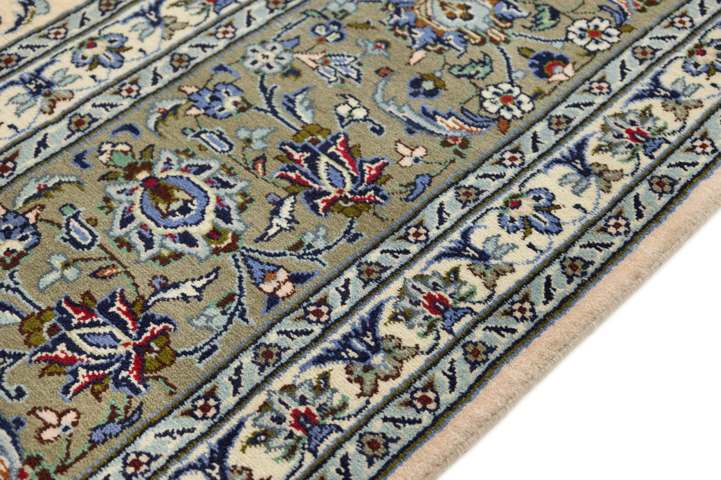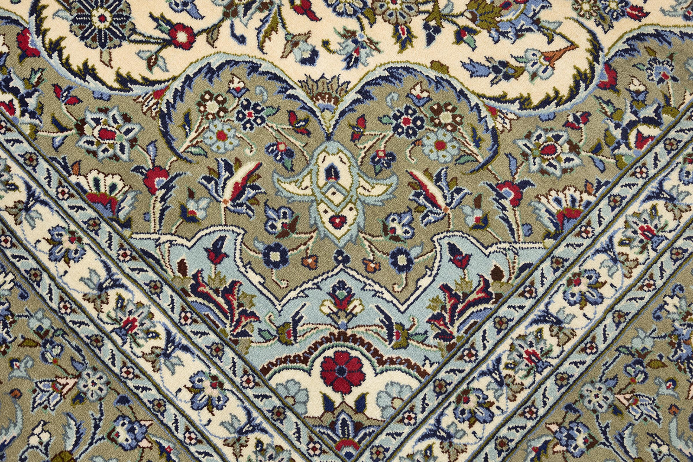 This rug originates from Keshan also called Kashan in Persia. It counts to the most popular Persian rugs. This Keshan comes in a typical design for its type. It has been crafted by hand from fine sheep wool and natural dyes. The ornaments embody a centuries old design pattern, which is still highly popular today.