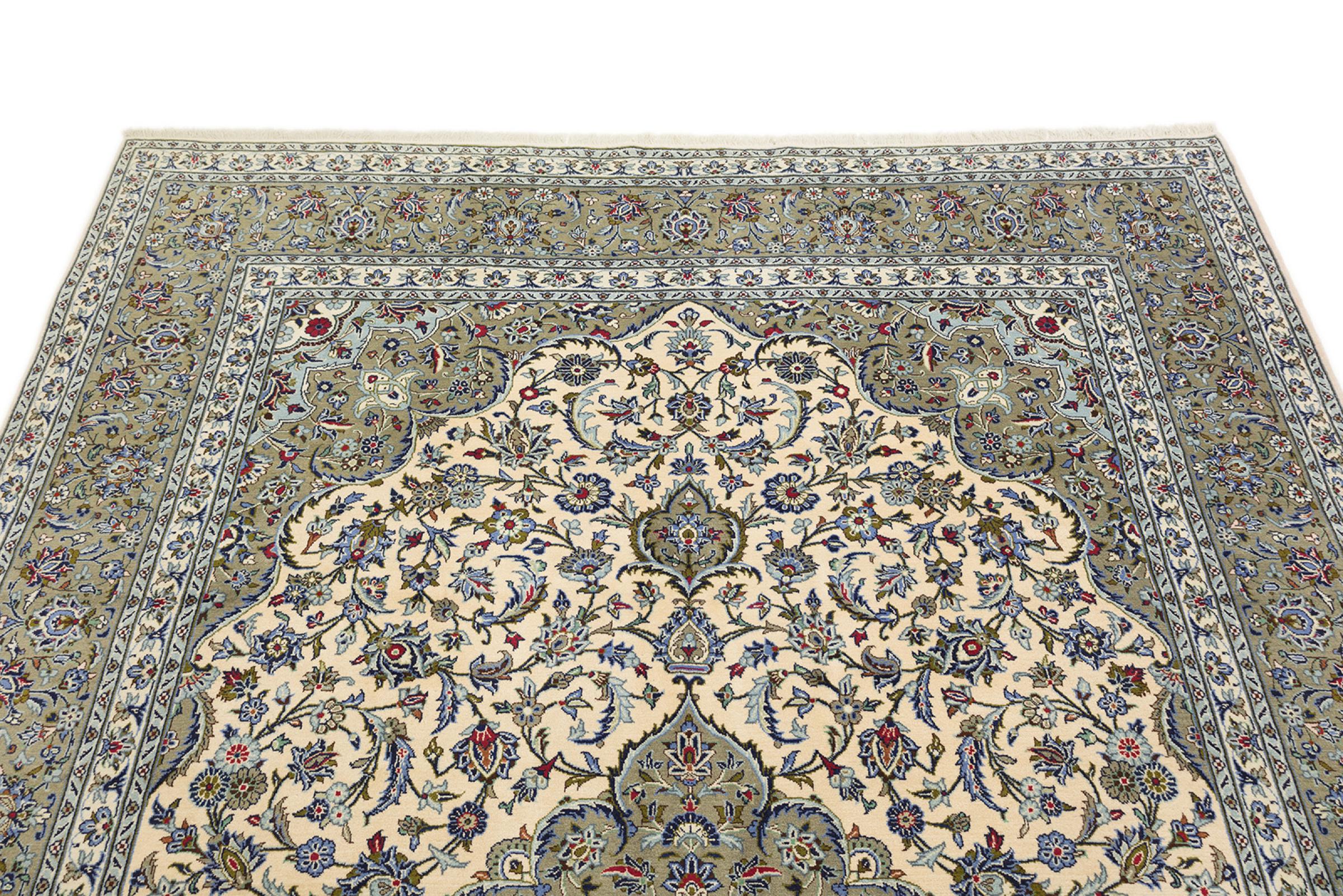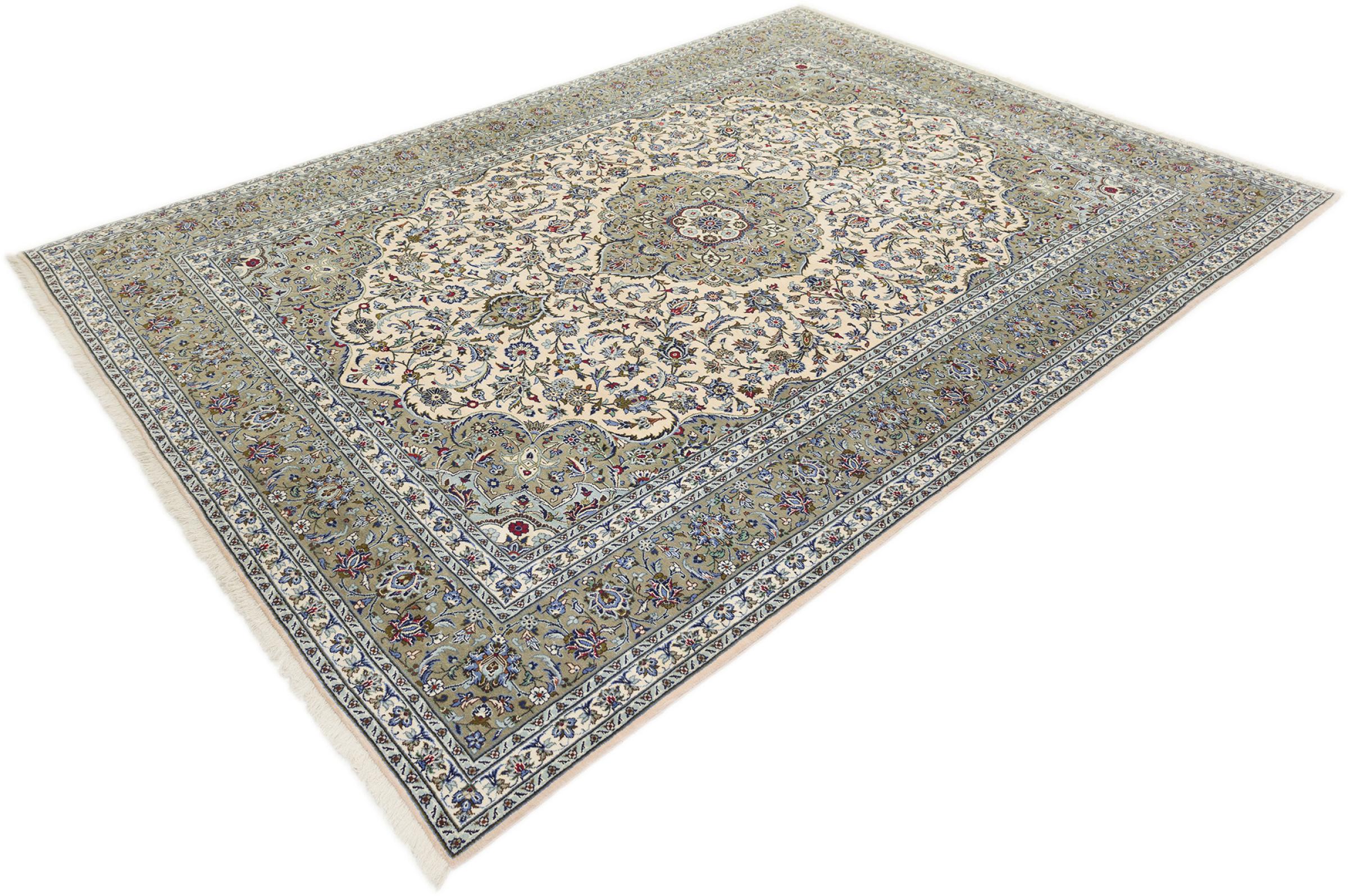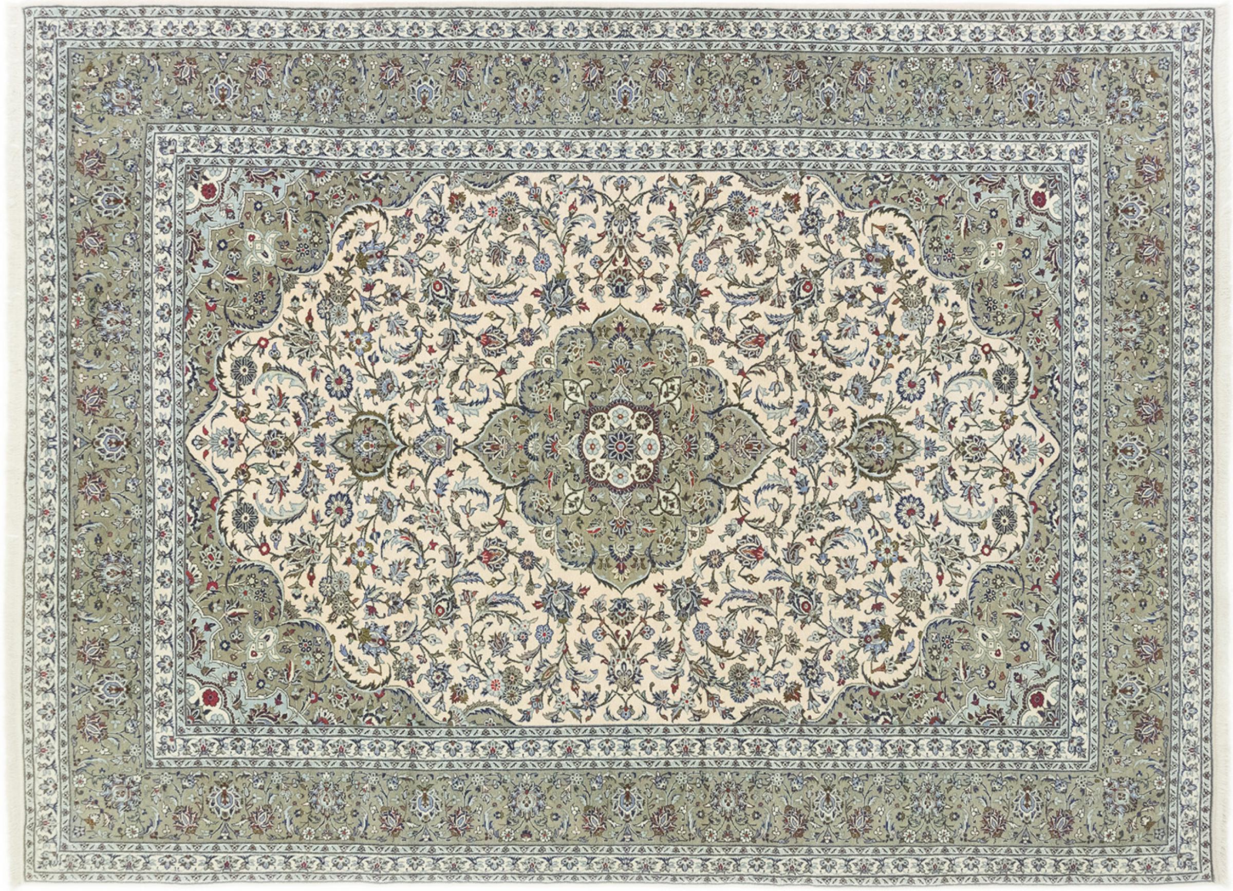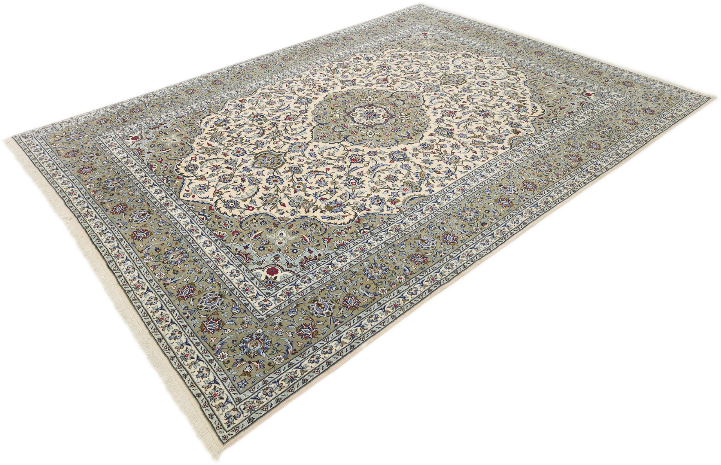 This rug originates from Keshan also called Kashan in Persia. It counts to the most popular Persian rugs. This Keshan comes in a typical design for its type. It has been crafted by hand from fine sheep wool and natural dyes. The ornaments embody a centuries old design pattern, which is still highly popular today.