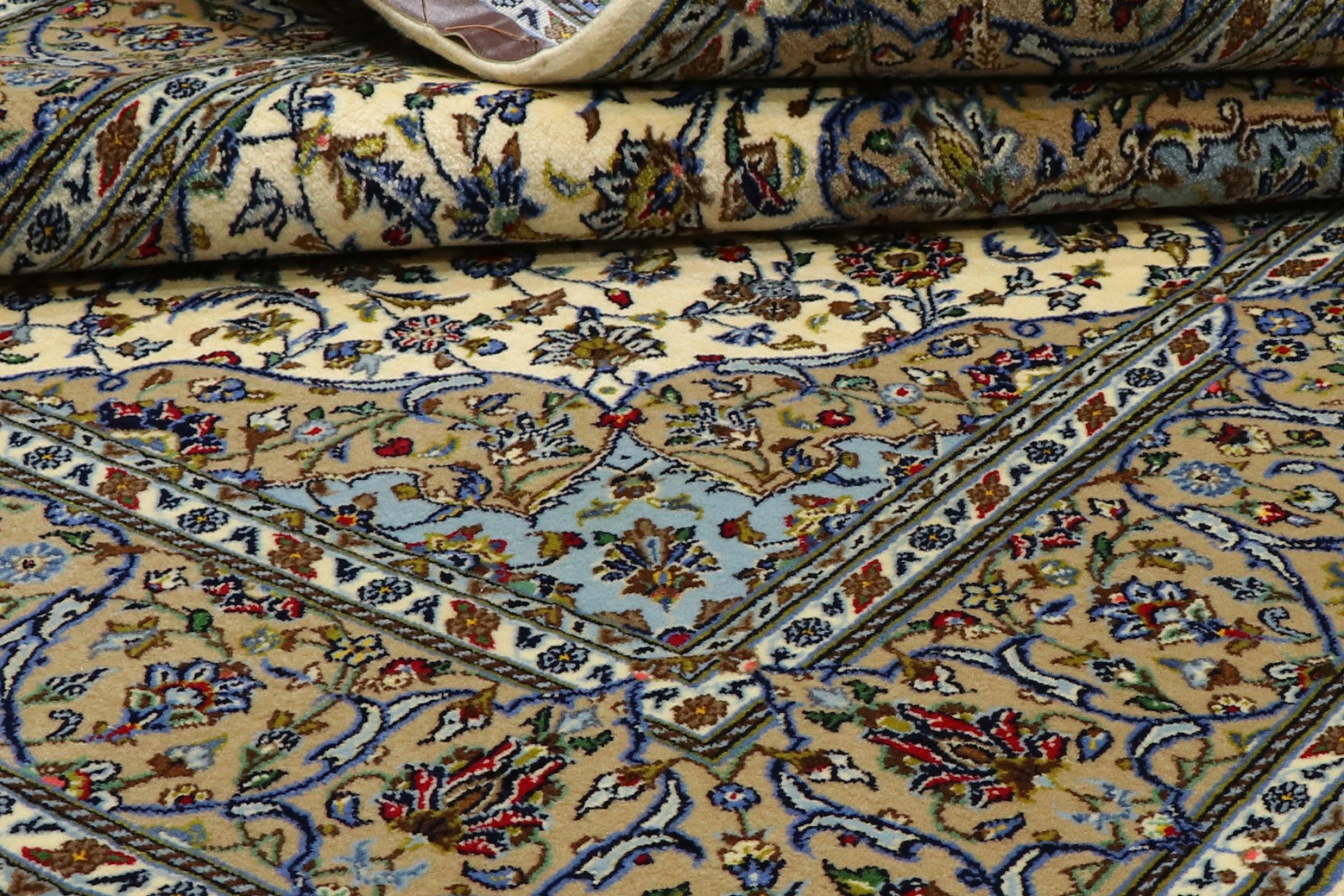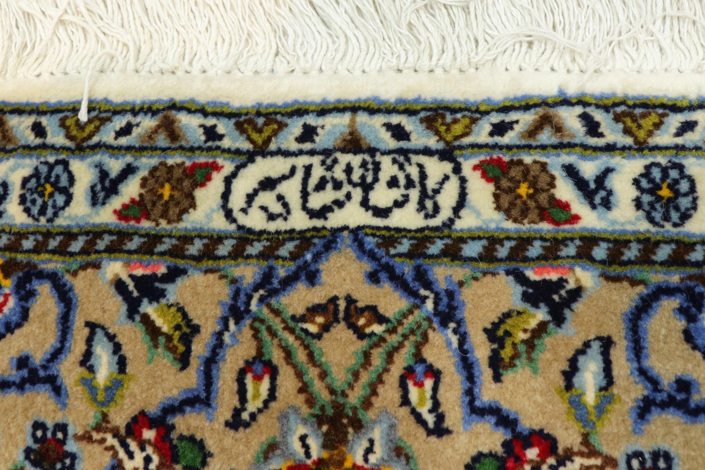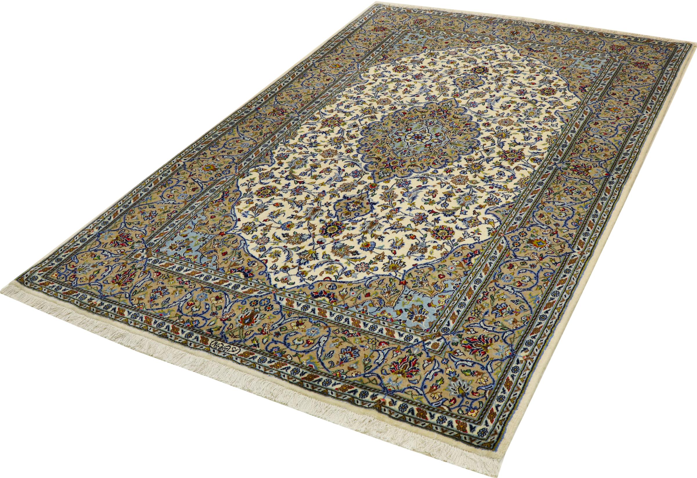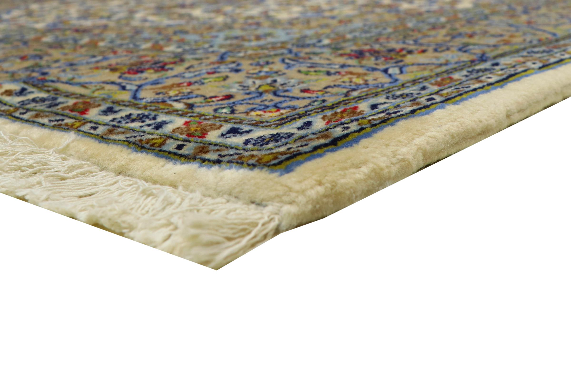 This rug originates from Keshan also called Kashan in Persia. It counts to the most popular Persian rugs. This Keshan comes in a typical design for its type. It has been crafted by hand from fine sheep wool and natural dyes. The ornaments embody a centuries old design pattern, which is still highly popular today.