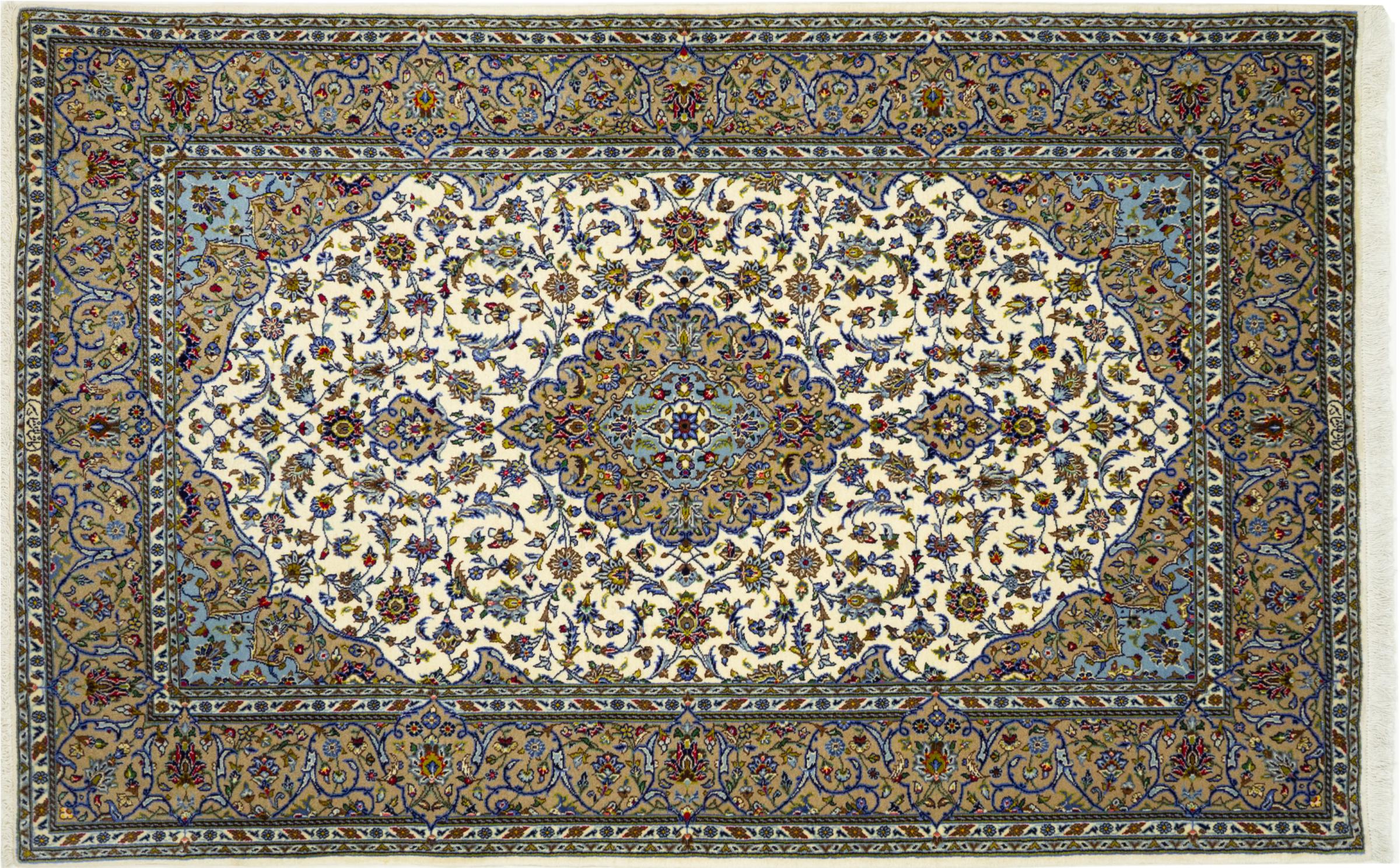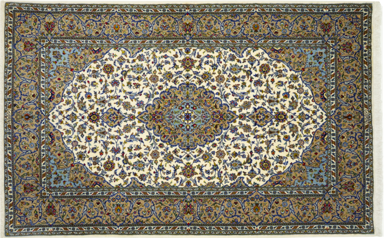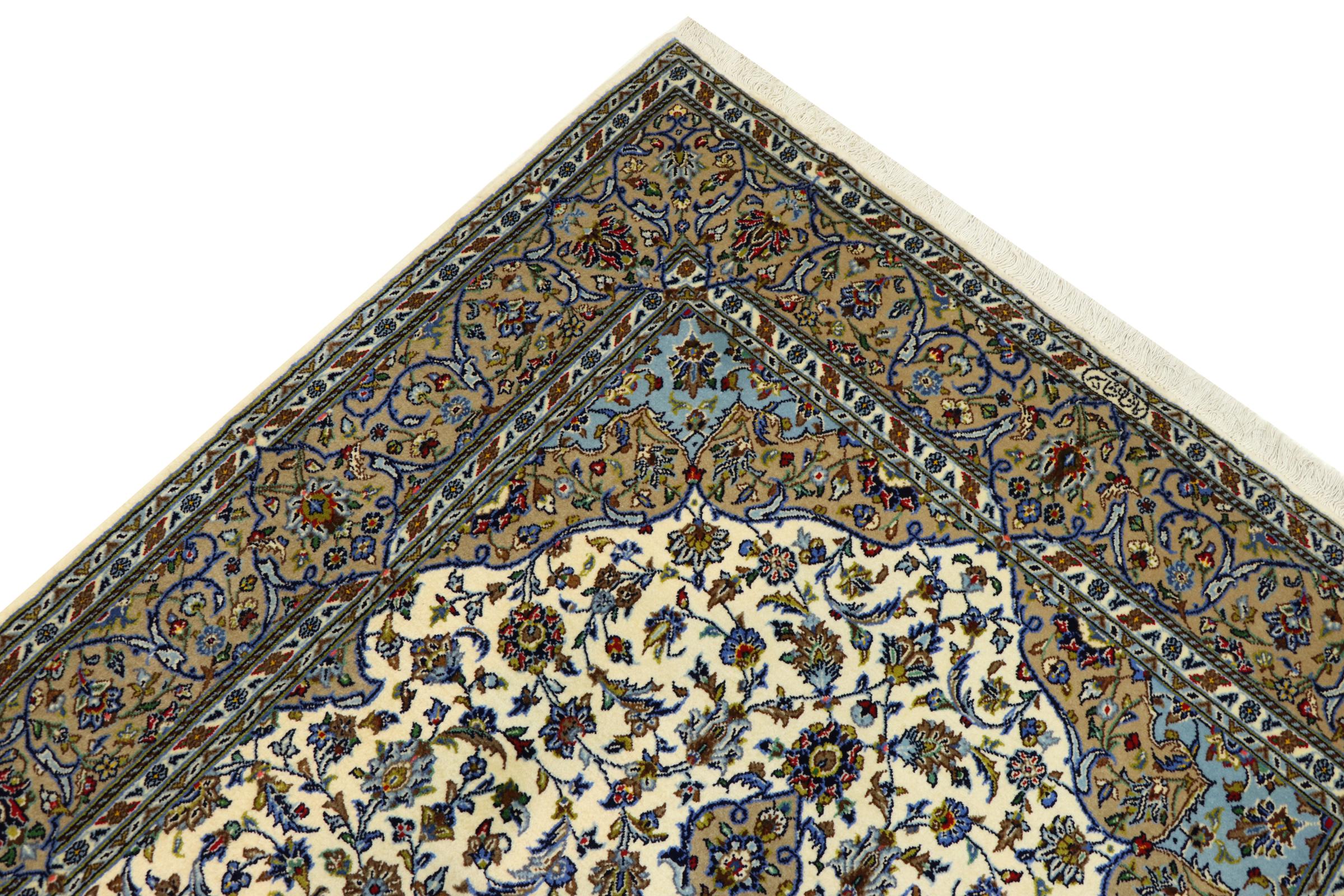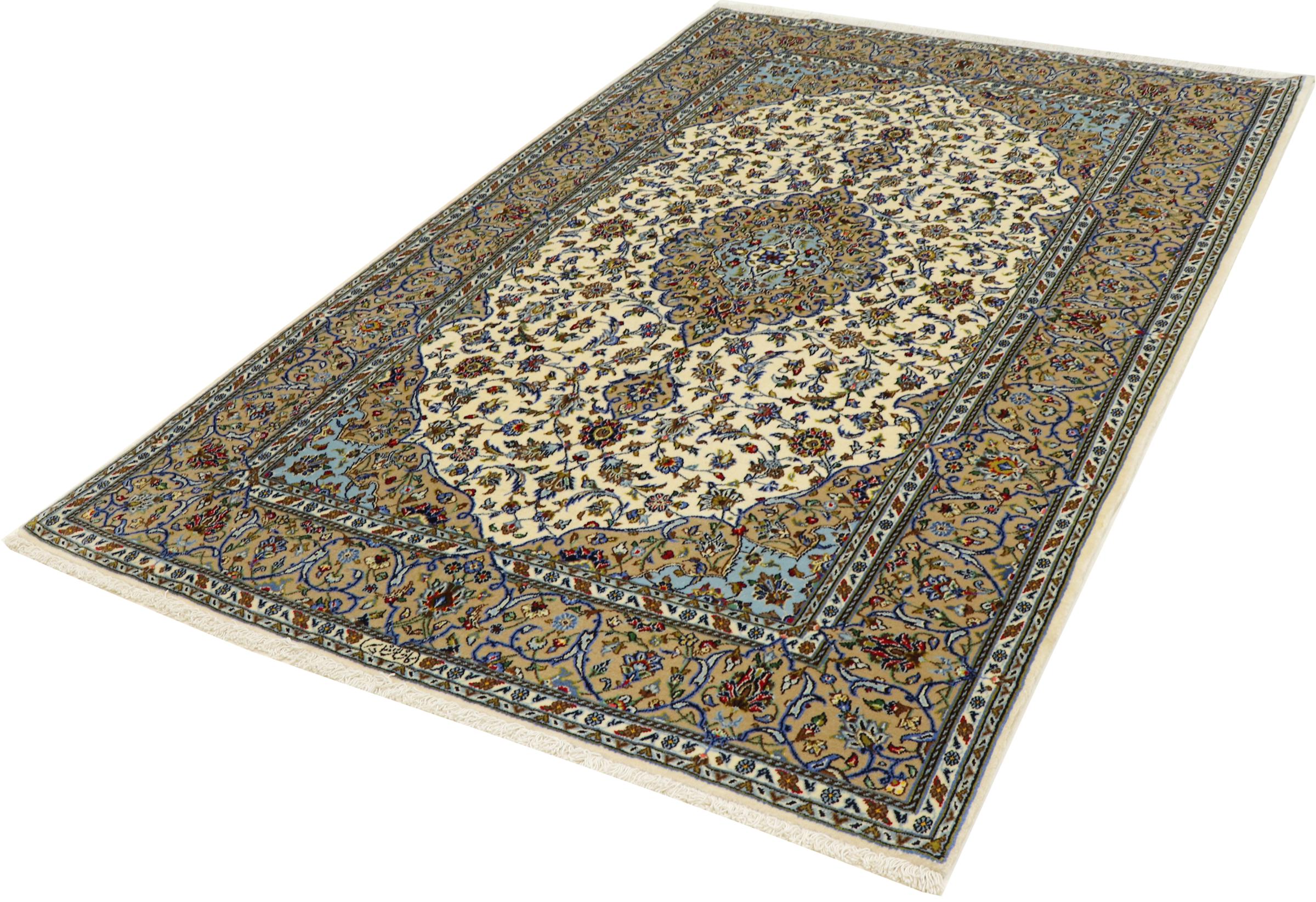 This rug originates from Keshan also called Kashan in Persia. It counts to the most popular Persian rugs. This Keshan comes in a typical design for its type. It has been crafted by hand from fine sheep wool and natural dyes. The ornaments embody a centuries old design pattern, which is still highly popular today.